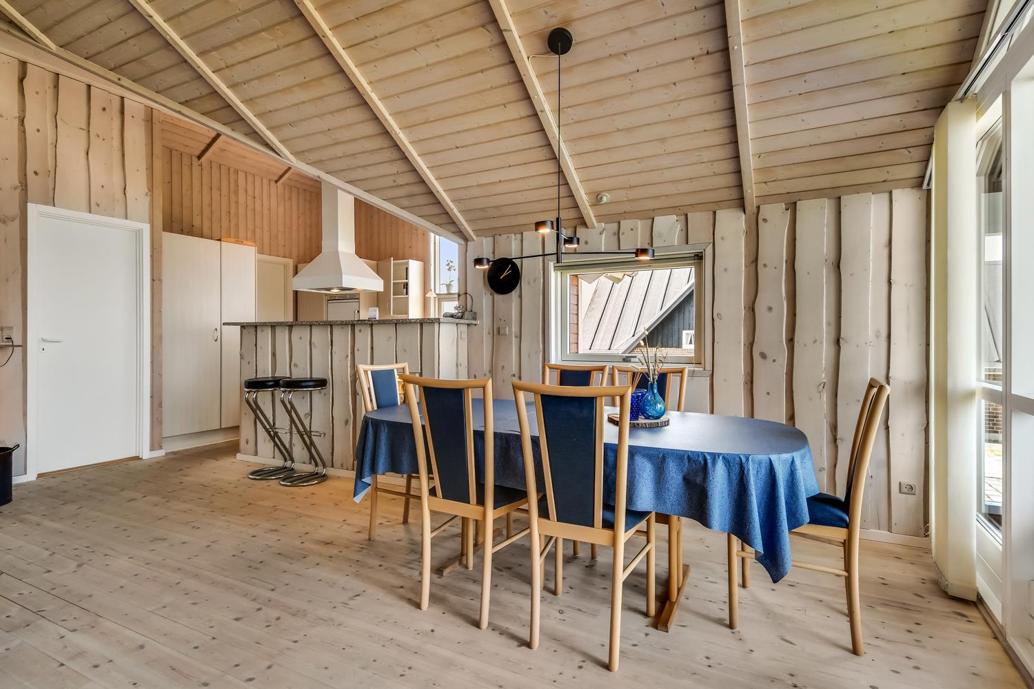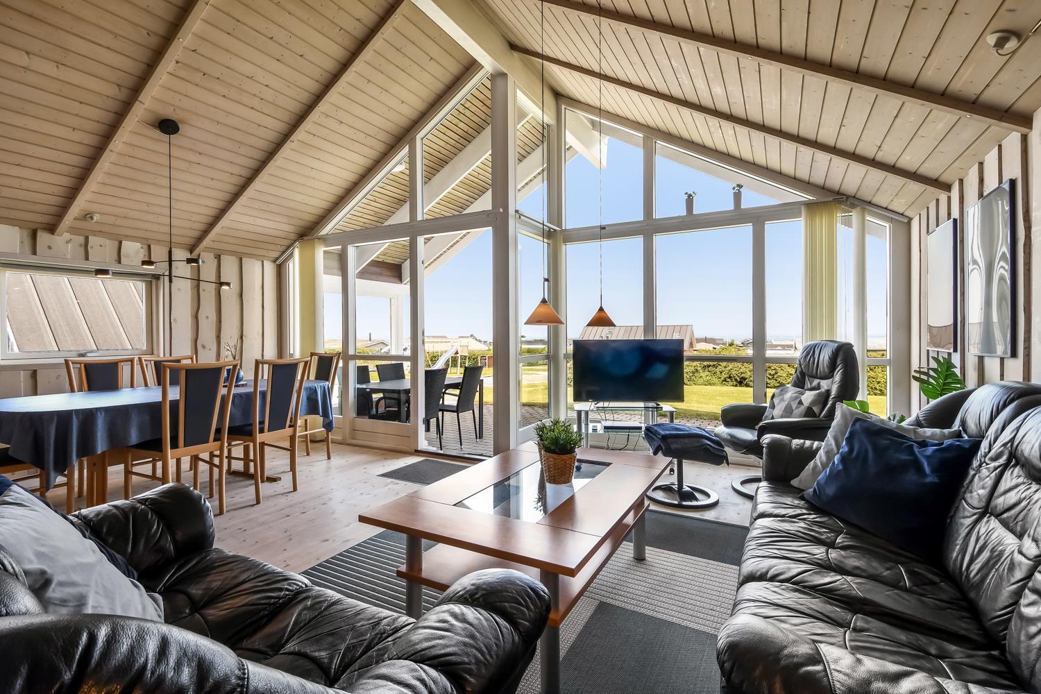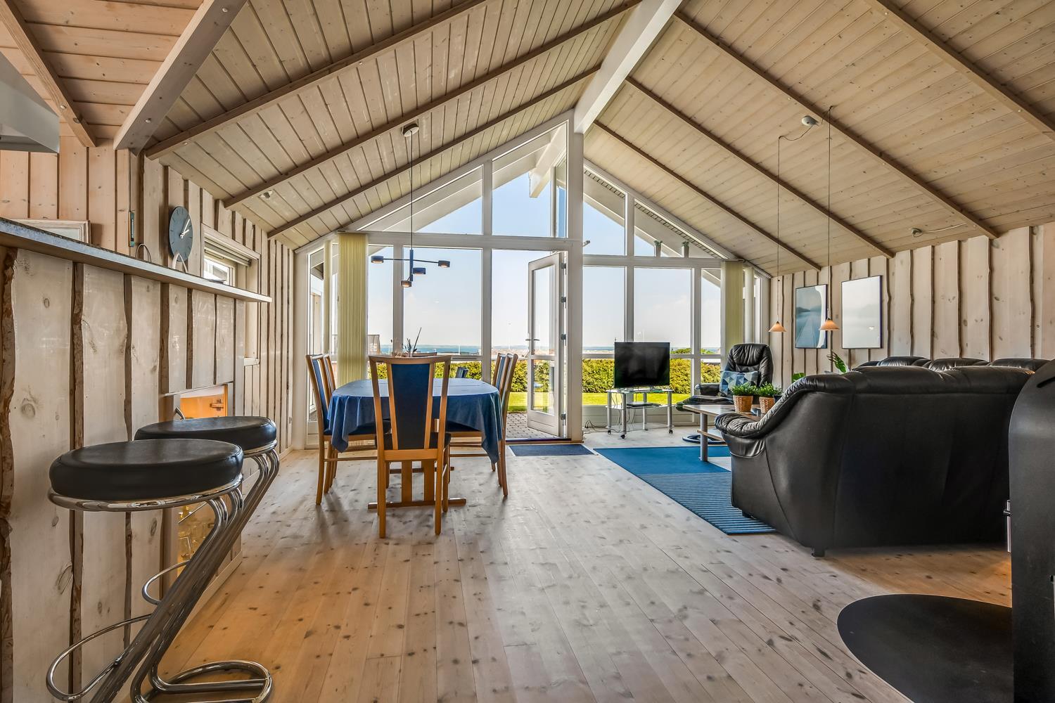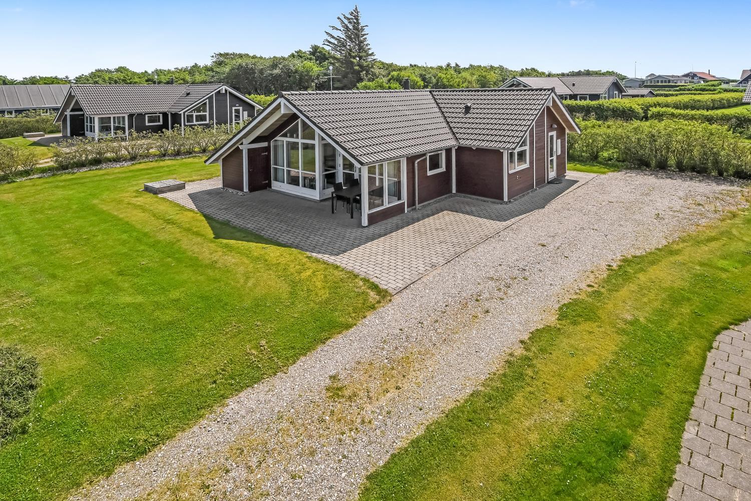 Beliggende på en ca. 955 m2 stor, velholdt grund kun 300 fra Limfjorden. Stort, delvist overdækket terrasseanlæg med havemøbler, solsenge og grill. Terrassen går hele vejen rundt om huset, så der er altid mulighed for en plads i solen. Et lækkert feriehus på alle årstider. Fra huset findes der er dejligt stisystem som fører direkte ned til vandet på få minutter. Ca. 400 m fra huset ligger den nye flotte naturlegeplads i træ med fodboldbane og rutsjebane. Der er kun fire km til Lemvig, som er en livlig handelsby med mange butikker, fiskerestaurant, museum m.m. Tager man bilen er en tur til Thyborøn en oplevelse i sig selv og klares på 20 min. Her er der flere forskellige aktiviteter som fiskeriauktion, Sea War Museum eller besøg det spændende Jyllandsakvarie, hvor børnene kan se og røre ved fisk og krabber, eller besøg det helt unikke Sneglehus. Dagen sluttes af med is i hånden, mens at I går tur langs havnekajen og ser på alle fiskekutterne.