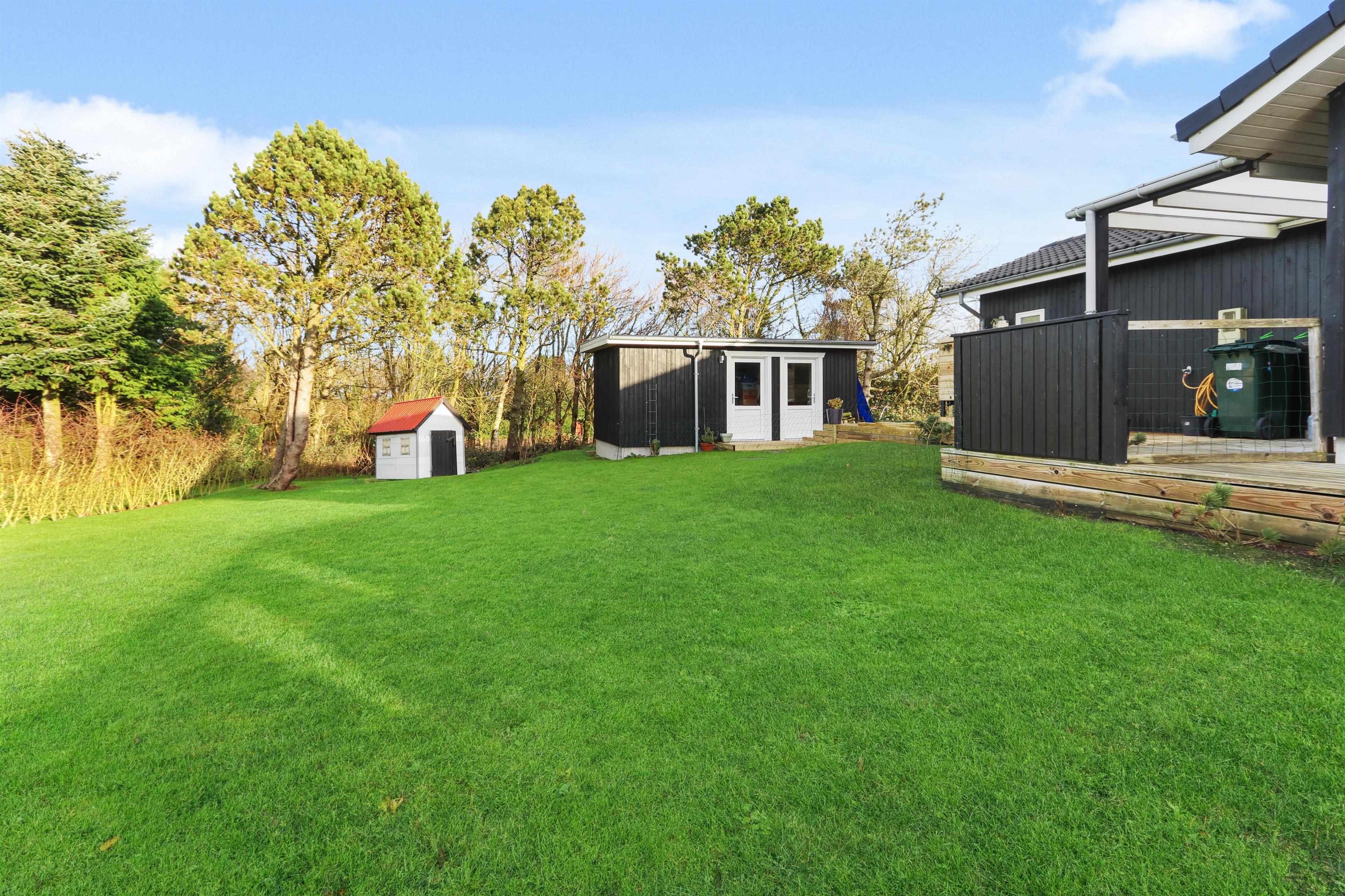 Huset har en fantastisk beliggenhed på en 855 m2 stor naturgrund med utrolig god udsigt over Limfjorden. En stor terrasse strækker sig om huset og er udstyret med havemøbler, 2 solvogne og grill, som kan flyttes på efter behov. Terrassen er indhegnet, så man kan lukke hunden ud, uden man skal være bange for at den kan løbe væk. Limfjorden kan nås på få minutter på gåben via små stier og er ideel til at bade, da stranden er børnevenlig. På stranden er der også en badebro. Få hundrede meter fra huset ligger Gjellerodde naturlegeplads i træ med fodboldbane og rutsjebaner. Huset ligger kun 4 km fra Lemvig, hvor man kan handle i de lokale butikker, gå en tur langs havnen og kigge på lystfiskerbådene, spise på de lokale cafeer og restauranter og meget mere. Husets beliggenhed giver mange muligheder for en uforglemmelig ferie for hele familien eller par.