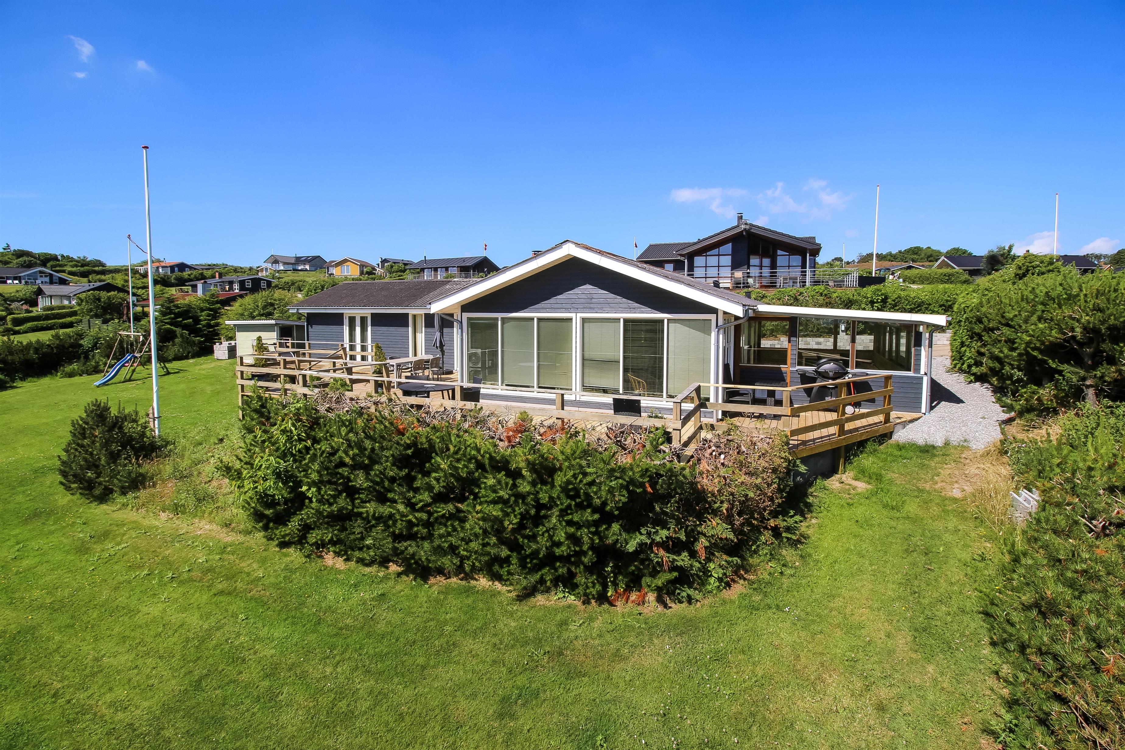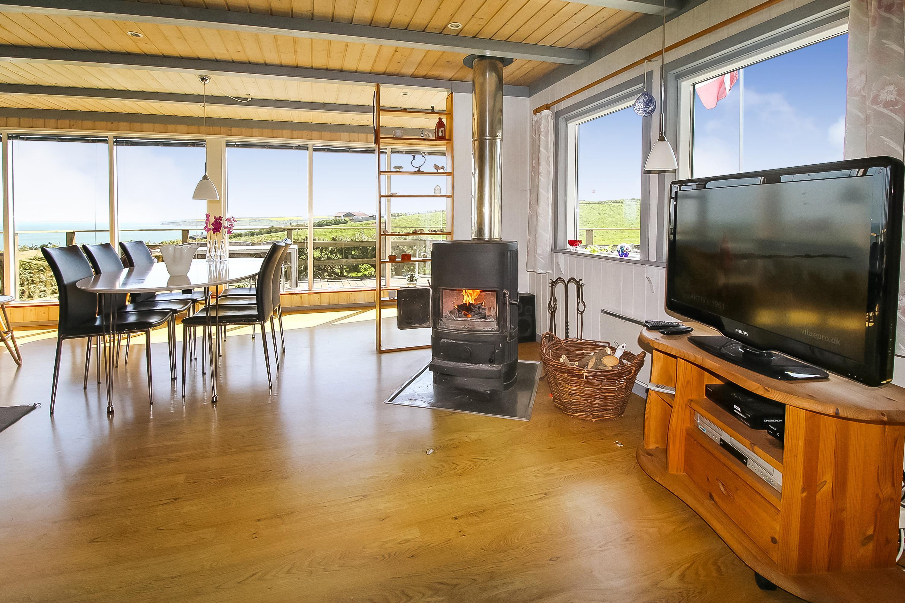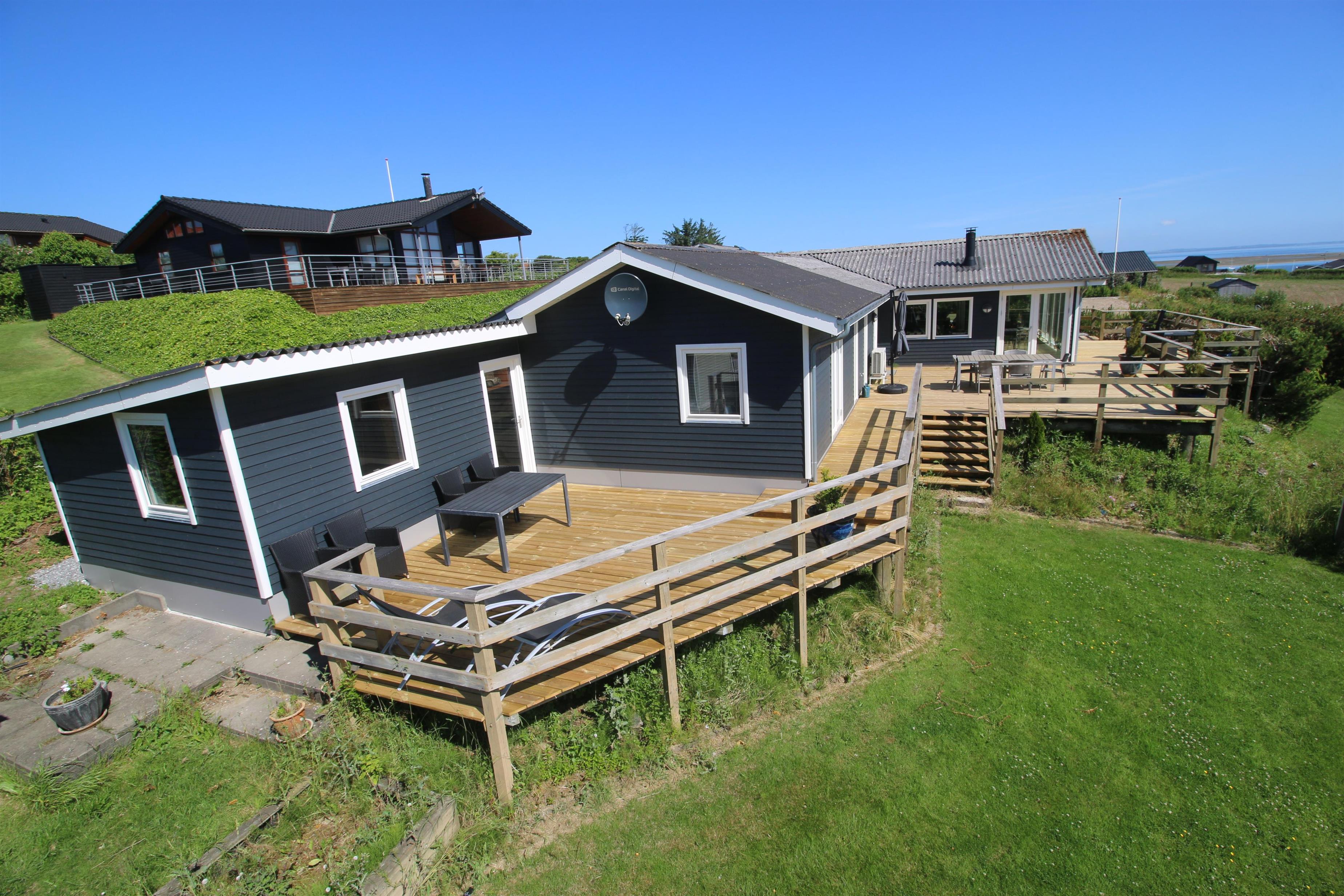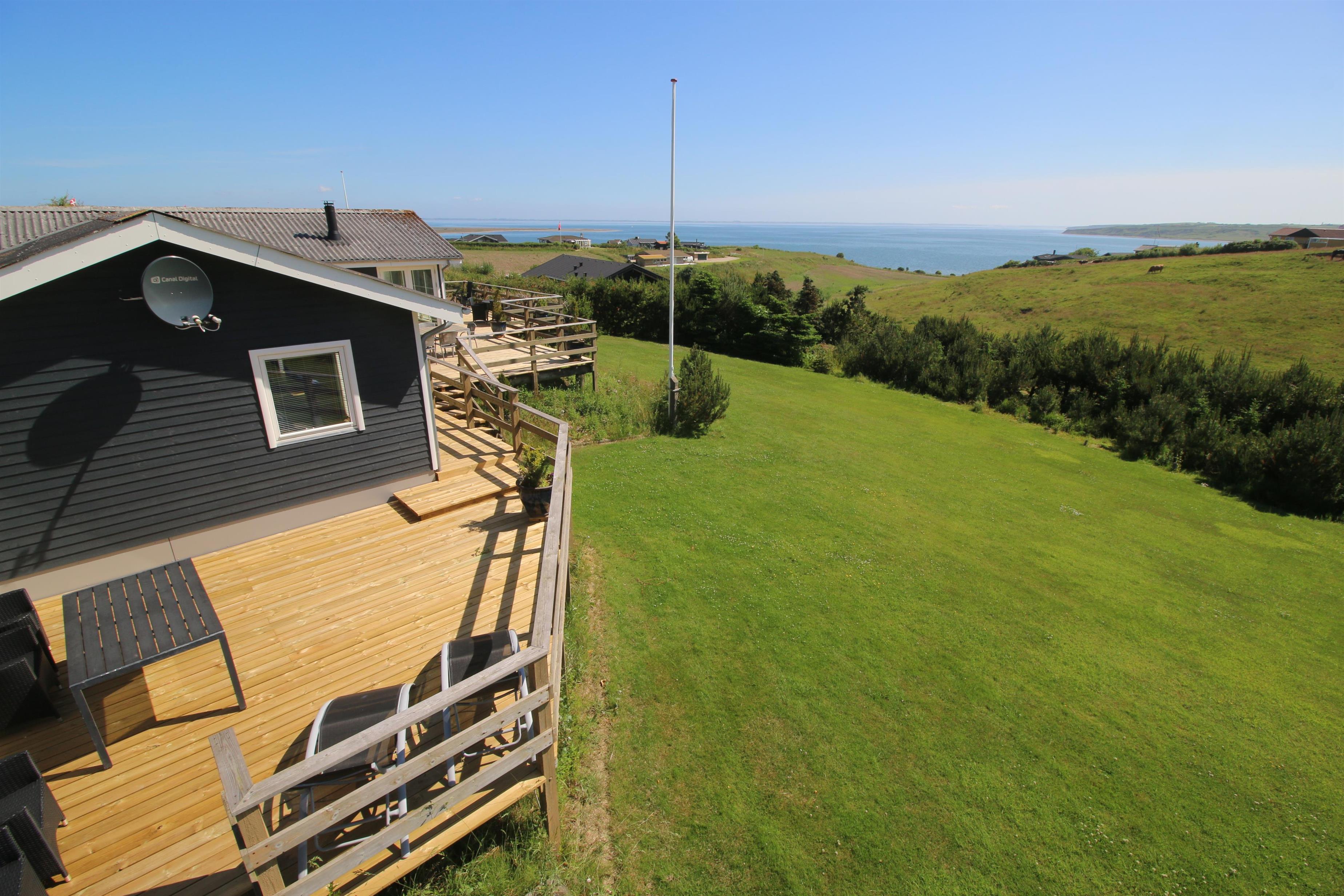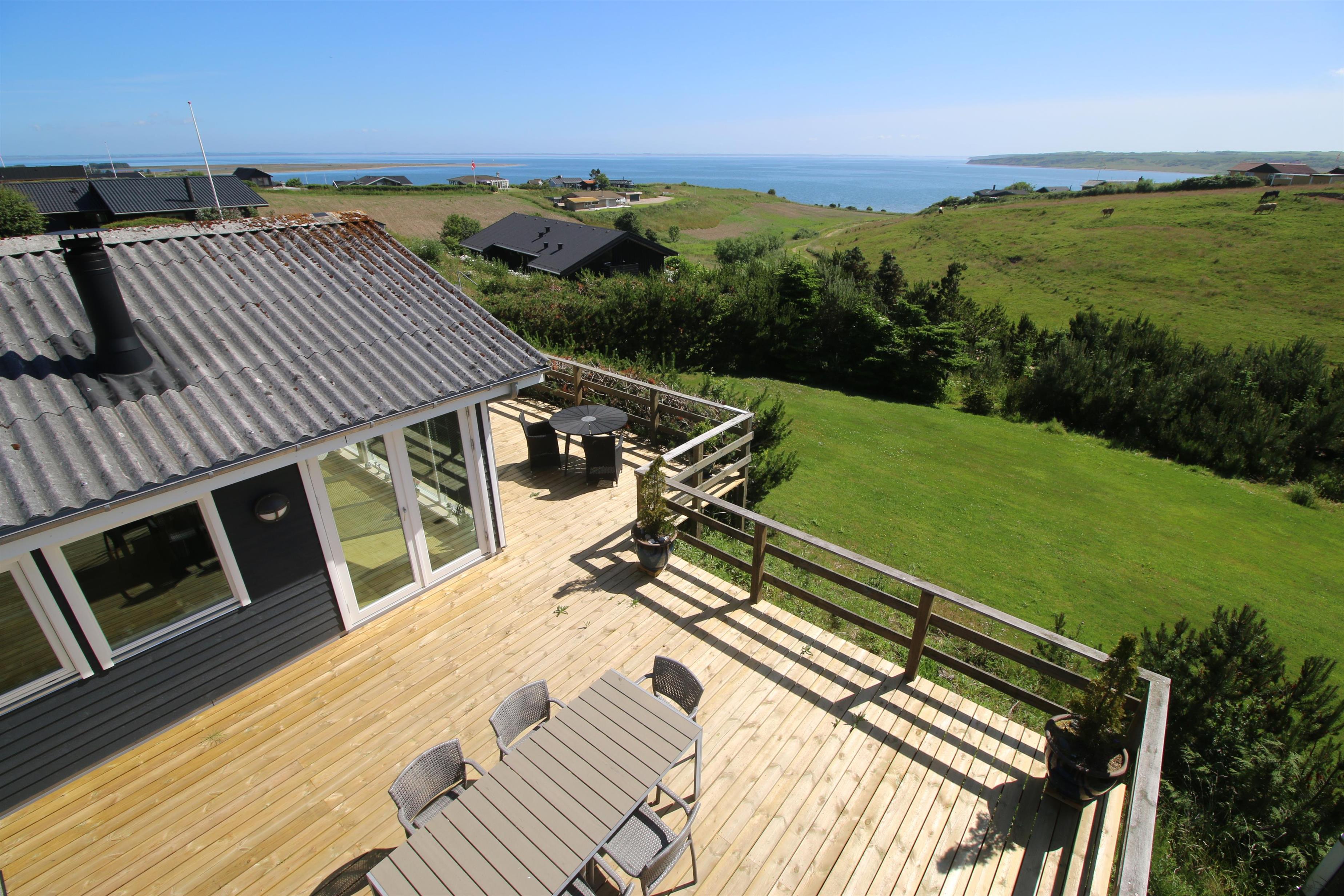 Stort, godt udnyttet træferiehus med Internet, infarød sauna og fantastisk, panorama udsigt over Limfjorden. Huset er ideelt både til 2 personer og til flere familier som ønsker noget ganske særligt. Der er hygge og atmosfære. Et hus som skal opleves og med en udsigt som er helt UNIK.