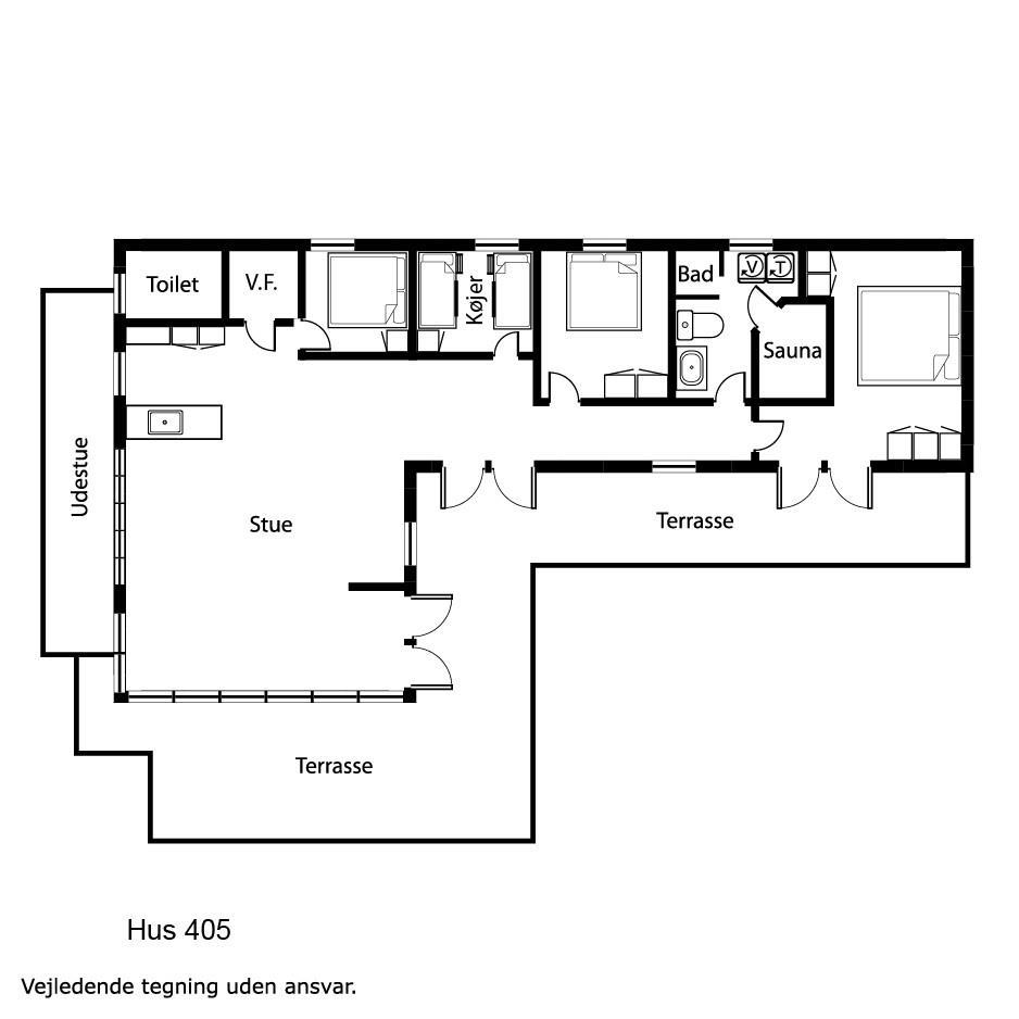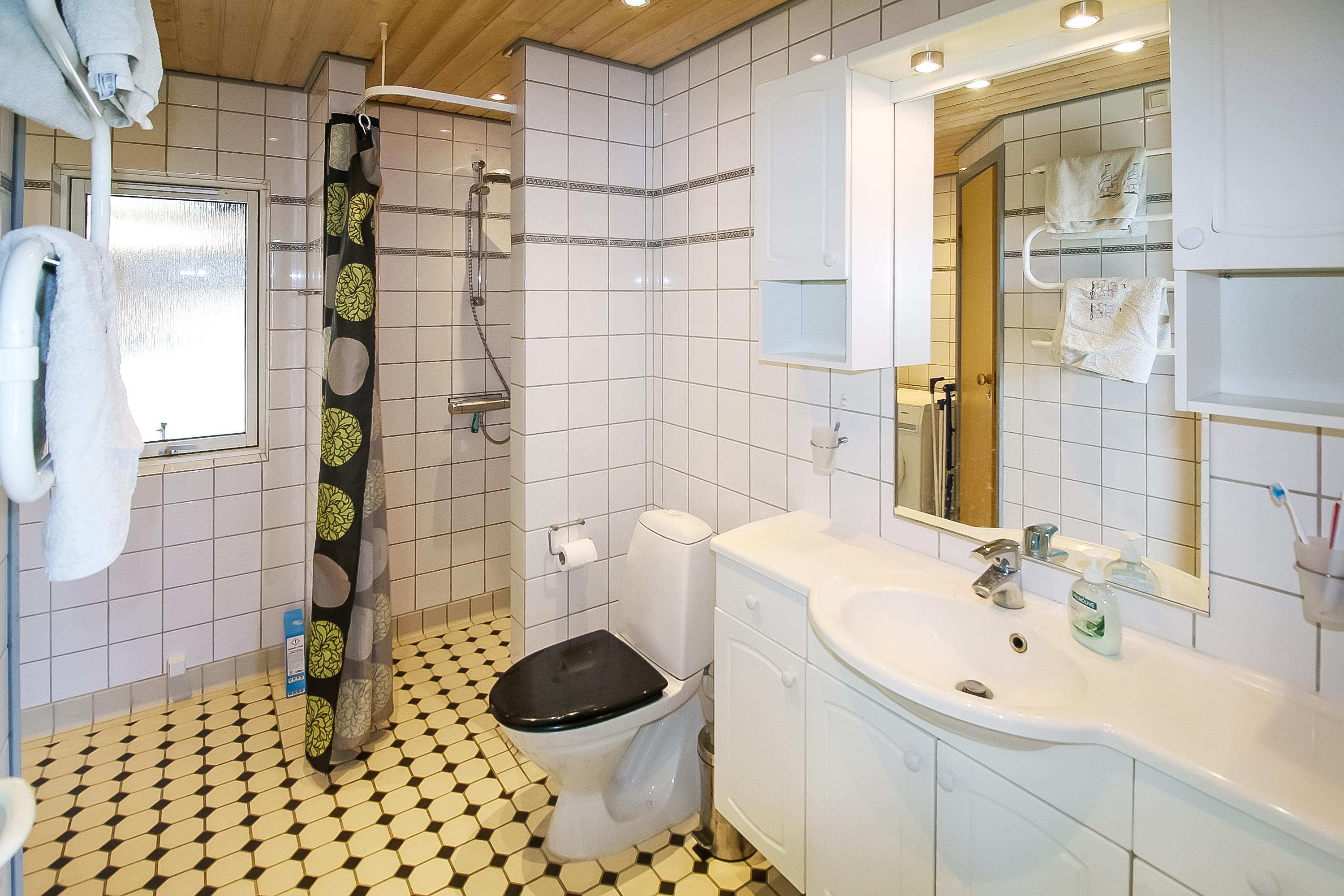 4 soverum (1DS, 1DS, 1DS, 4k). Opholdsstue med spiseplads, TV med DK og D kanaler og lædermøbler. Køkken med opvaskemaskine og mikroovn. Stort badeværelse med toilet, håndvask, bruseniche, gulvvarme og infarød Sauna. Ekstra toilet med toilet, håndvask, bruseniche og gulvvarme. Vaskemaskine og varmepumpe. I udhuset er der ekstra frysekapacitet.
