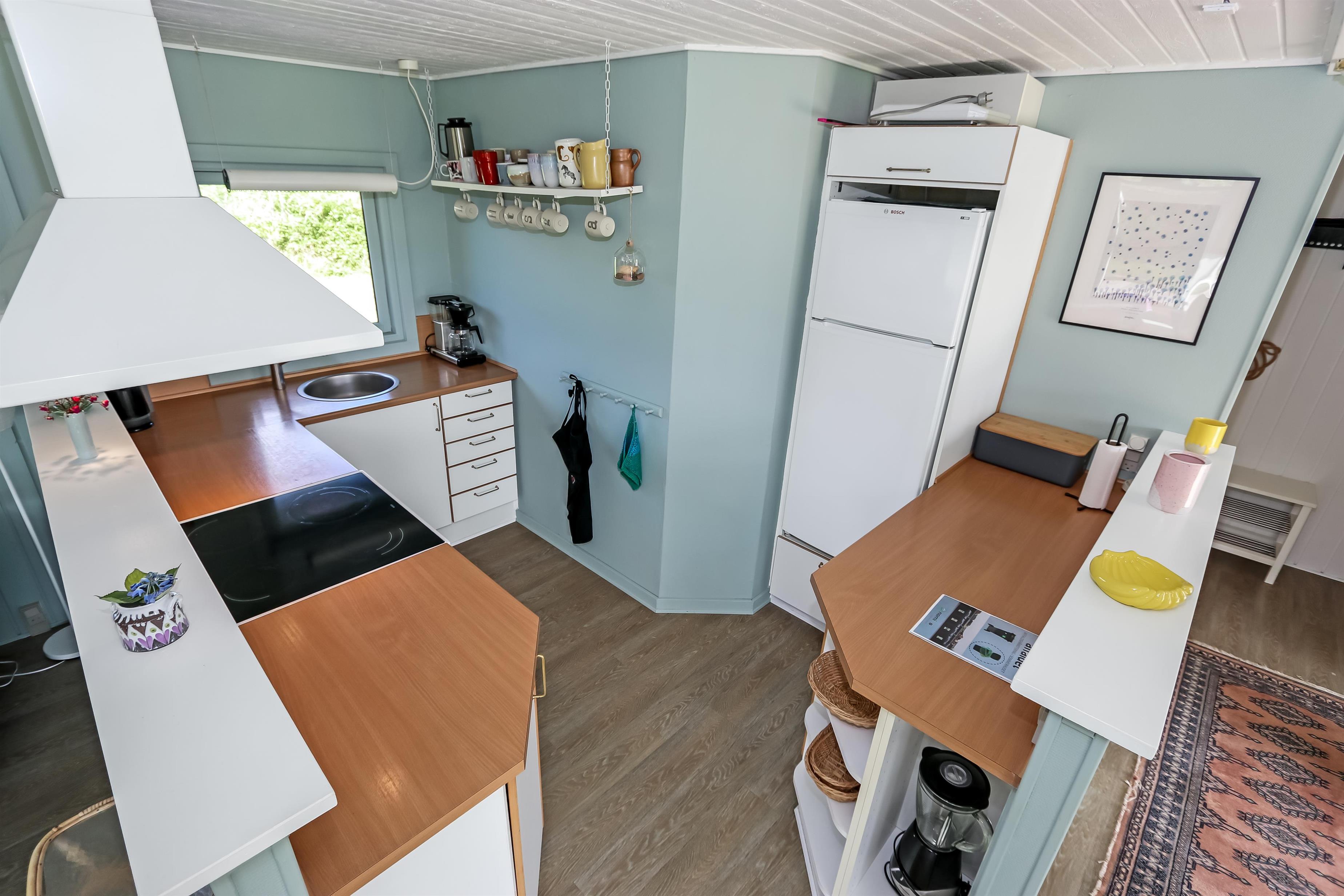 Samtalekøkkenet rummer komfur med keramiske kogeplader, emhætte, opvaskemaskine og køleskab med fryseboks. Badeværelse med bruser, toilet, håndvask og klinkegulv. Der findes to soverum i huset (1DS, 1KS) samt et anneks med et ekstra soverum (1DS). Huset har praktiske trægulve i alle opholdsrum. Rygning er ikke tilladt i huset. Max 1. husdyr tilladt.