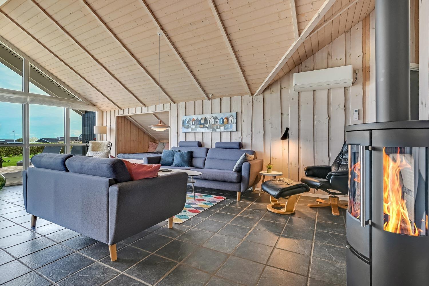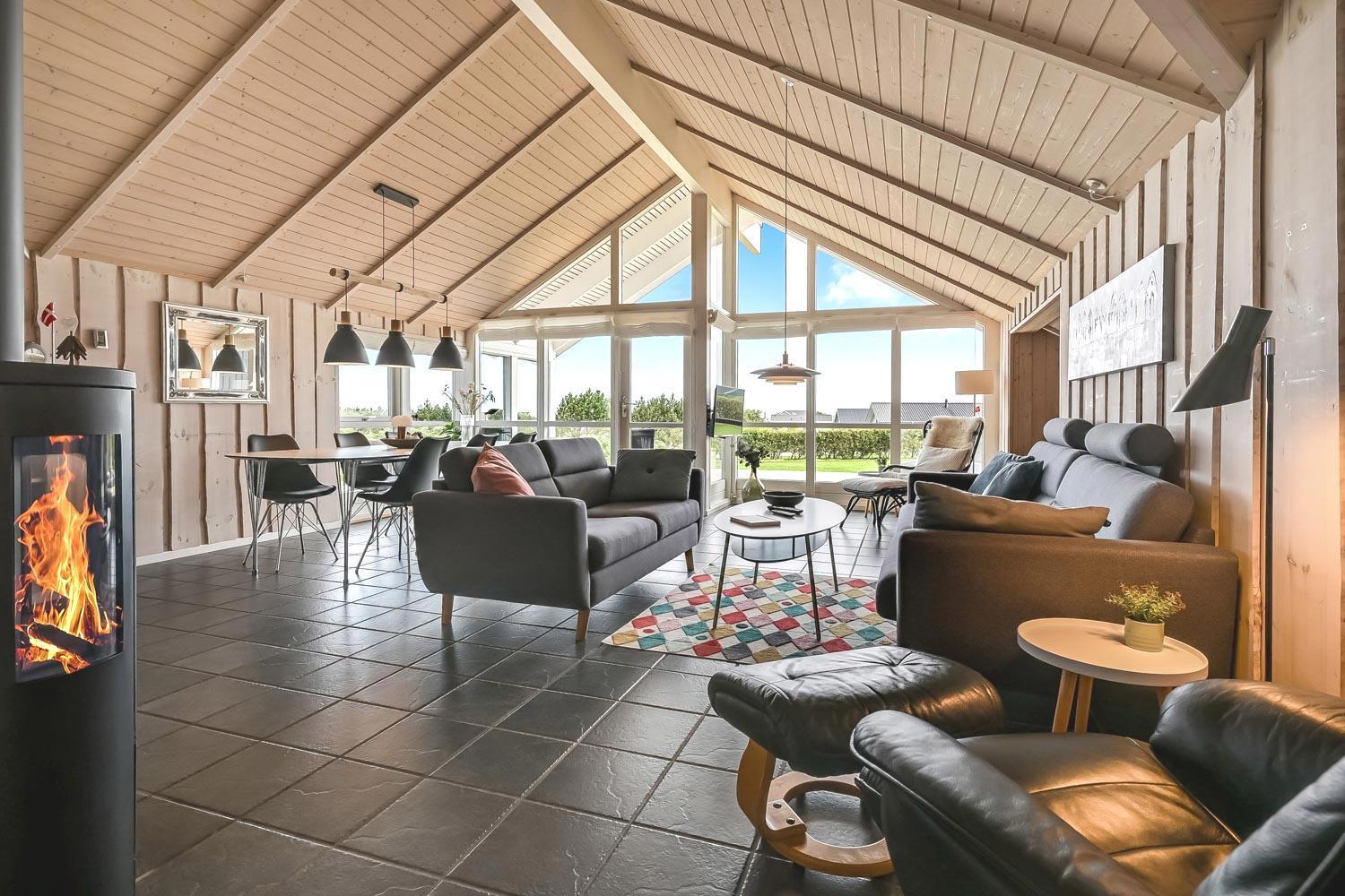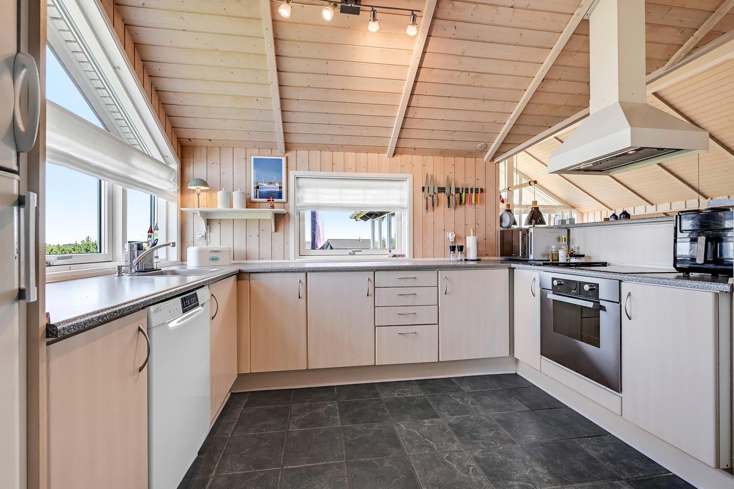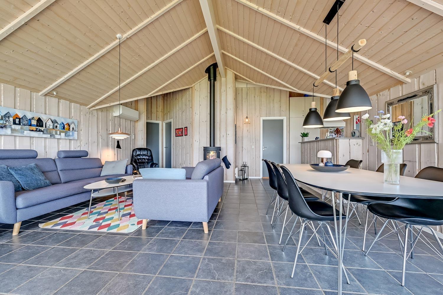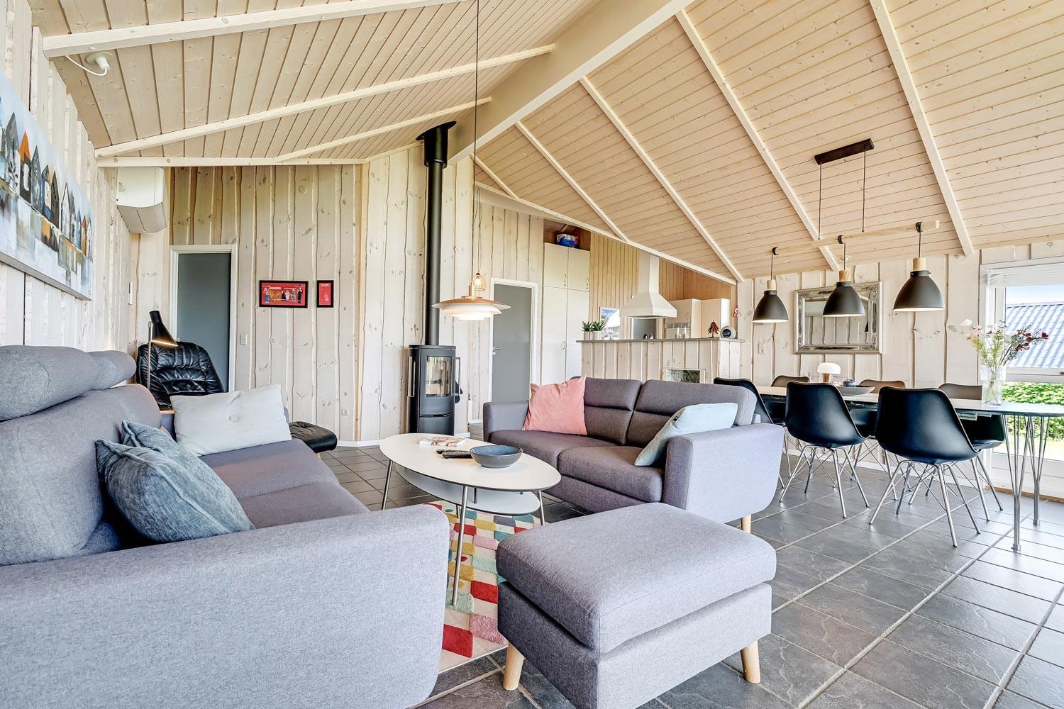 Særdeles flot, hyggeligt og velholdt feriehus på 103 m2 fra 2005. En dejlig entré med afliggeplads, vaskemaskine og tørretumbler byder velkommen. Kombineret opholdsstue og køkkenhjørne, som i 2024 er blevet optimeret af husets nye ejere og gjort endnu mere hyggelig. Opholdsstuen med gode møbler, spisebord, Smart-TV med danske og tyske programmer via fiber samt en Chromecast med mulighed for streaming af TV / radio / Apps. Der er også en DAB Radio. Slap af foran den knitrende brændeovn der sammen med varmepumpen (A++), hjælper med at reducere udgiften til varmeregningen. Køkkenhjørnet er lyst og venligt og har alt i hårde hvidevarer og i service og køkkengrej. Komfur med glaskeramiske kogeplader, indbygningsovn, airfryer, køleskab med fryseboks, mikroovn og opvaskemaskine. Praktisk klinkegulv i opholdsstue og køkkenhjørne med gulvvarme. Stort flot badeværelse med bruser, toilet, håndvask, gulvvarme, spabad og direkte adgang til sauna. Ekstra badeværelse med toilet, håndvask og gulvvarme. 3 gode soverum (1DS, 1DS, 2ES), i alle soverum er der trægulv. I opholdsstuen er der en hyggelig alkove (1 soveplads). Utrolig velholdt feriehus til den perfekte ferieoplevelse. Der er tænkt på det meste. Ejer af huset passer og plejer huset, så det altid præsenteres fra den bedste side. Barneseng og højstol til børnene. Max. 1 husdyr tilladt. Ikke-ryger hus.
