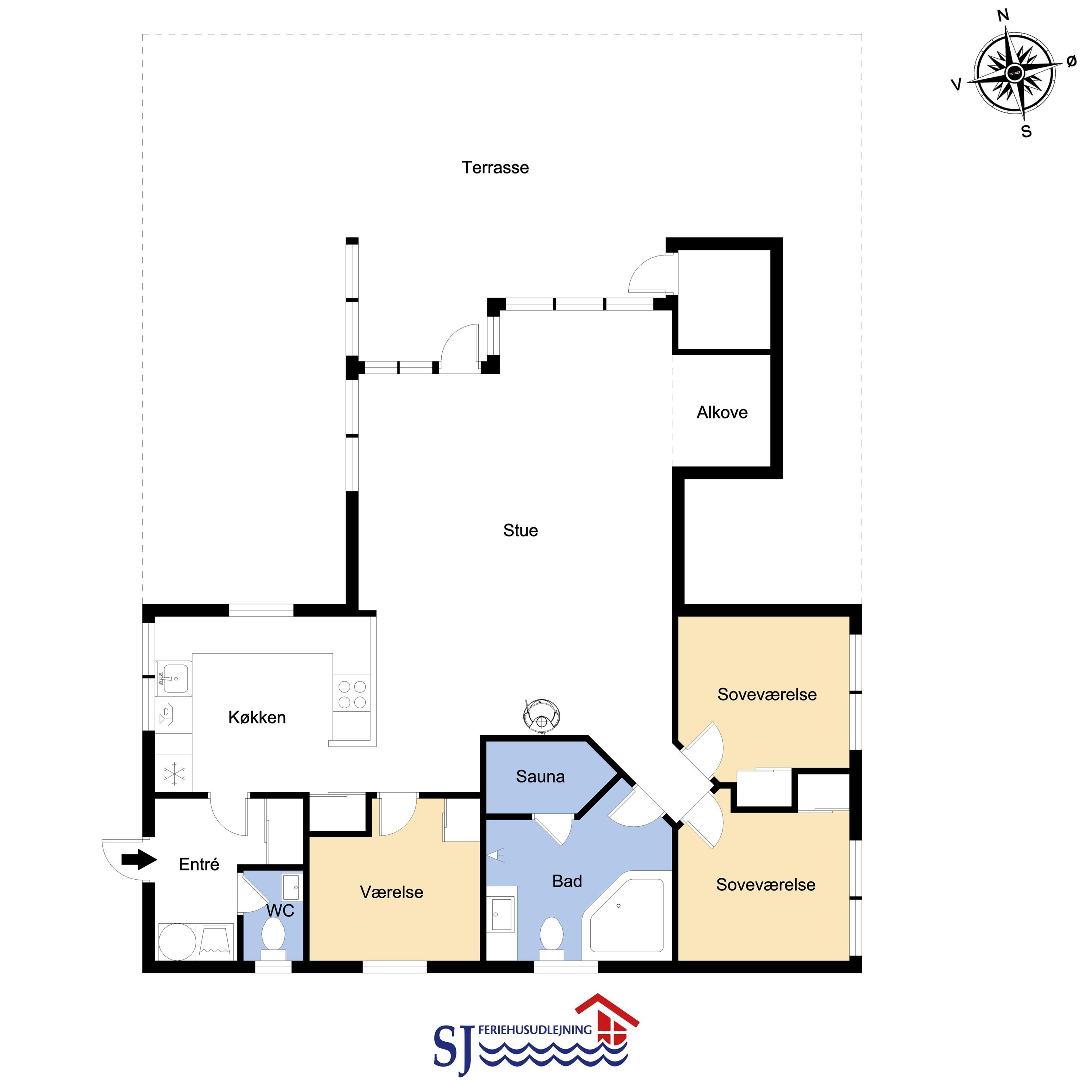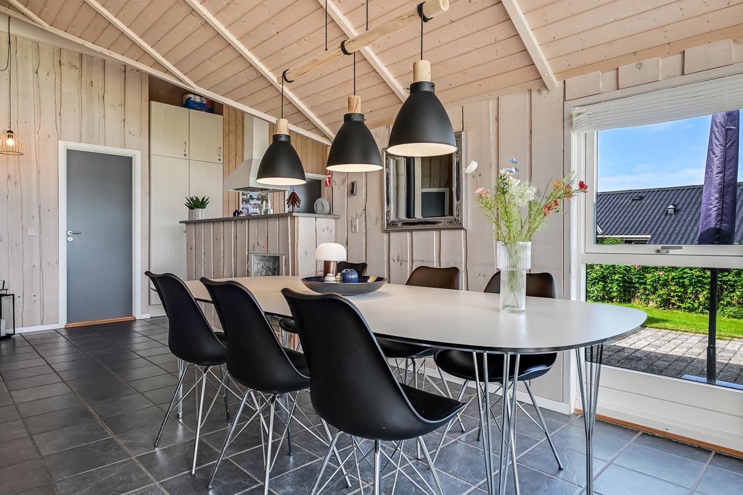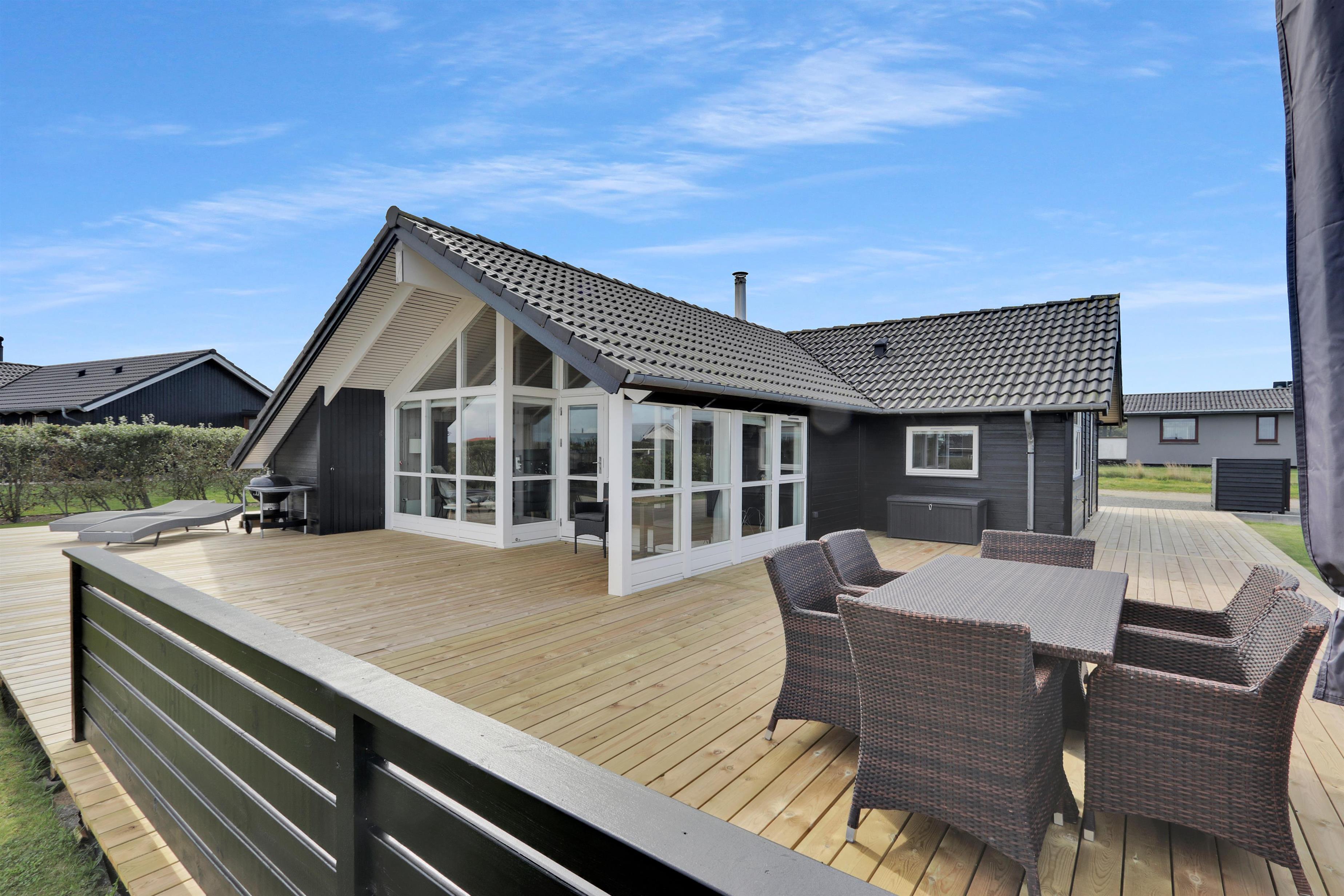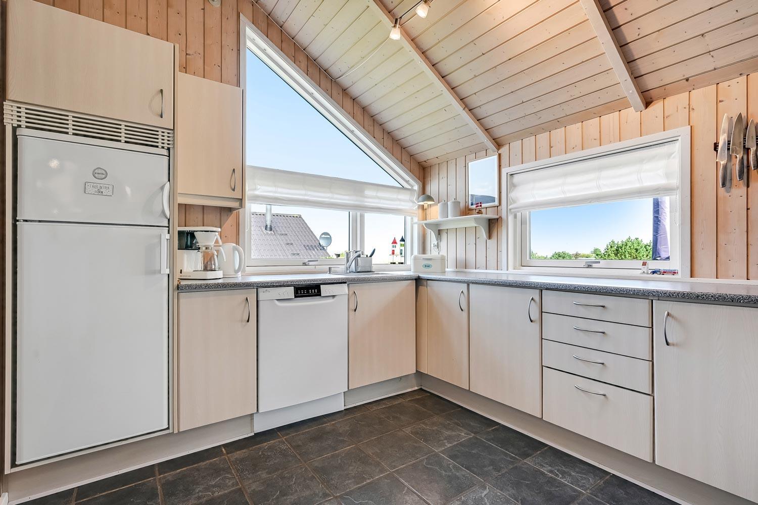 Særdeles flot, hyggeligt og velholdt feriehus på 103 m2 fra 2005. En dejlig entré med afliggeplads, vaskemaskine og tørretumbler byder velkommen. Kombineret opholdsstue og køkkenhjørne, som i 2024 er blevet optimeret af husets nye ejere og gjort endnu mere hyggelig. Opholdsstuen med gode møbler, spisebord, Smart-TV med danske og tyske programmer via fiber samt en Chromecast med mulighed for streaming af TV / radio / Apps. Der er også en DAB Radio. Slap af foran den knitrende brændeovn der sammen med varmepumpen (A++), hjælper med at reducere udgiften til varmeregningen. Køkkenhjørnet er lyst og venligt og har alt i hårde hvidevarer og i service og køkkengrej. Komfur med glaskeramiske kogeplader, indbygningsovn, airfryer, køleskab med fryseboks, mikroovn og opvaskemaskine. Praktisk klinkegulv i opholdsstue og køkkenhjørne med gulvvarme. Stort flot badeværelse med bruser, toilet, håndvask, gulvvarme, spabad og direkte adgang til sauna. Ekstra badeværelse med toilet, håndvask og gulvvarme. 3 gode soverum (1DS, 1DS, 2ES), i alle soverum er der trægulv. I opholdsstuen er der en hyggelig alkove (1 soveplads). Utrolig velholdt feriehus til den perfekte ferieoplevelse. Der er tænkt på det meste. Ejer af huset passer og plejer huset, så det altid præsenteres fra den bedste side. Barneseng og højstol til børnene. Max. 1 husdyr tilladt. Ikke-ryger hus.