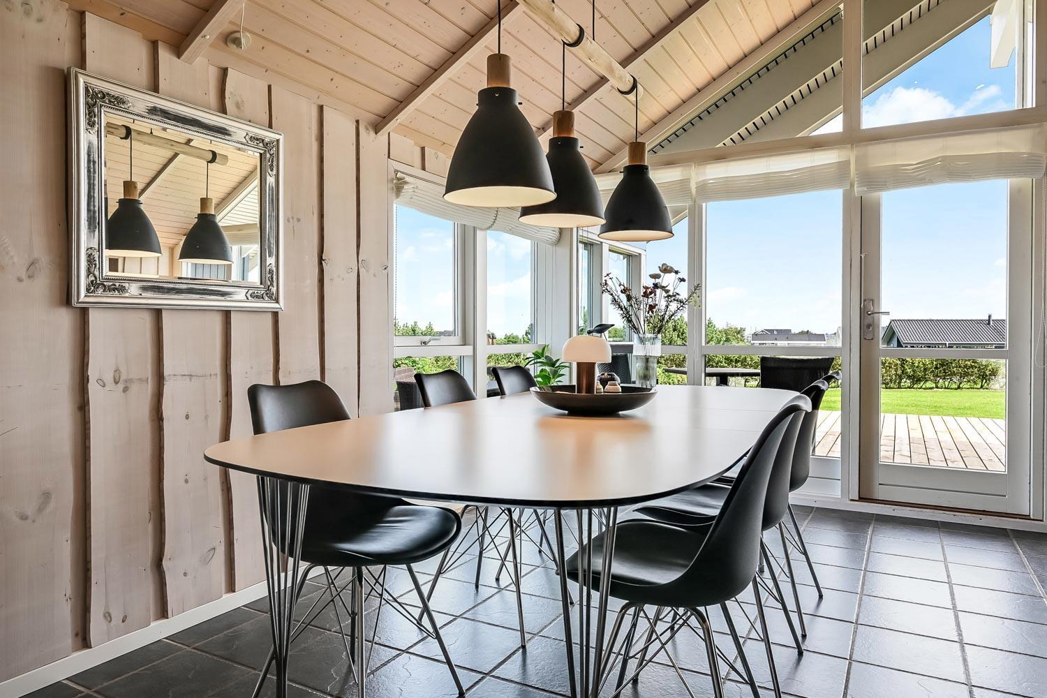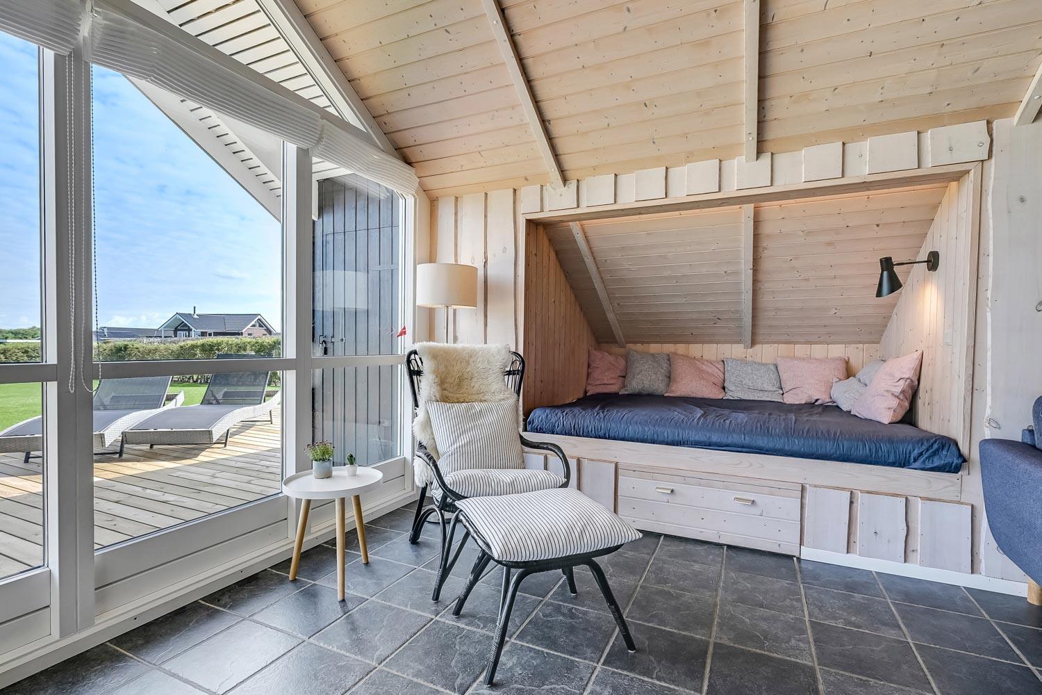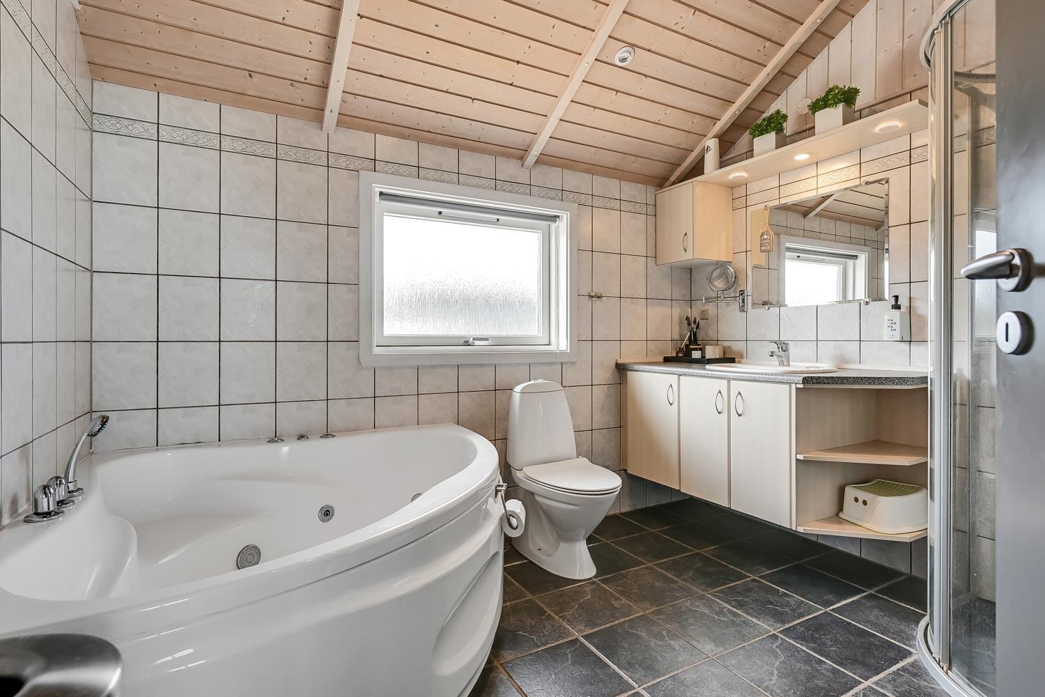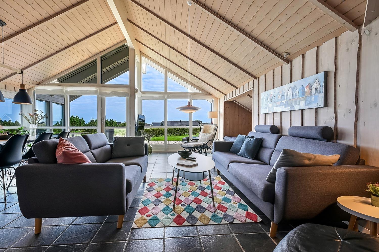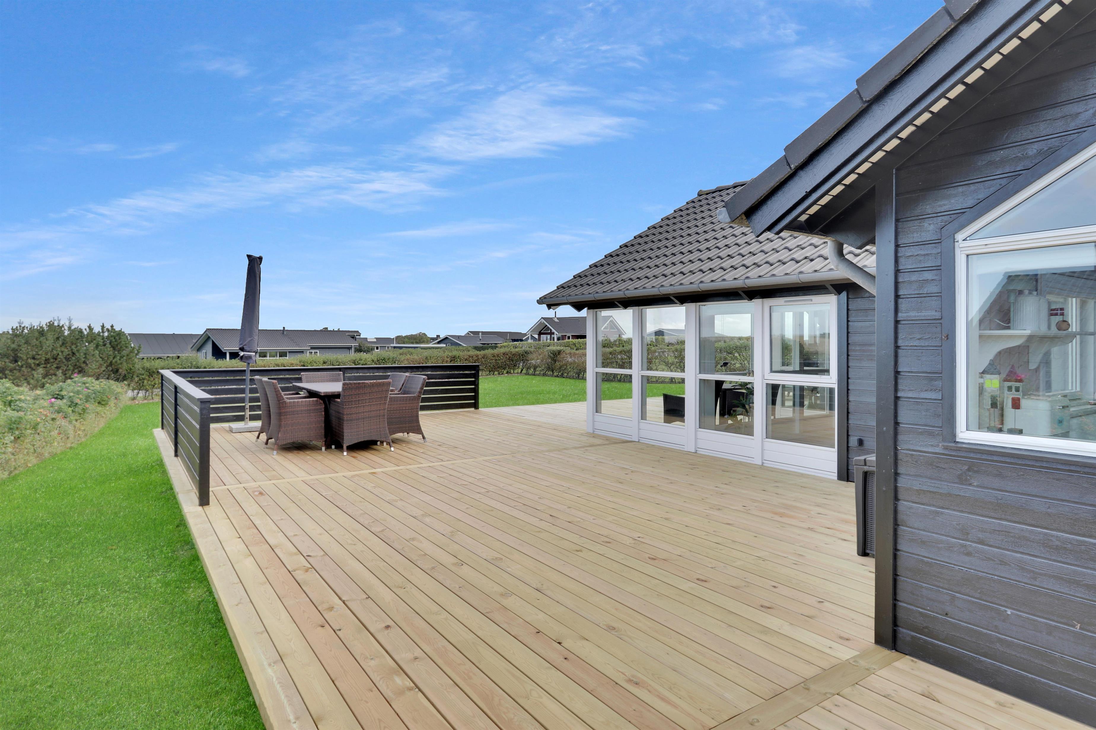Særdeles flot, hyggeligt og velholdt feriehus på 103 m2 fra 2005. En dejlig entré med afliggeplads, vaskemaskine og tørretumbler byder velkommen. Kombineret opholdsstue og køkkenhjørne, som i 2024 er blevet optimeret af husets nye ejere og gjort endnu mere hyggelig. Opholdsstuen med gode møbler, spisebord, Smart-TV med danske og tyske programmer via fiber samt en Chromecast med mulighed for streaming af TV / radio / Apps. Der er også en DAB Radio. Slap af foran den knitrende brændeovn der sammen med varmepumpen (A++), hjælper med at reducere udgiften til varmeregningen. Køkkenhjørnet er lyst og venligt og har alt i hårde hvidevarer og i service og køkkengrej. Komfur med glaskeramiske kogeplader, indbygningsovn, airfryer, køleskab med fryseboks, mikroovn og opvaskemaskine. Praktisk klinkegulv i opholdsstue og køkkenhjørne med gulvvarme. Stort flot badeværelse med bruser, toilet, håndvask, gulvvarme, spabad og direkte adgang til sauna. Ekstra badeværelse med toilet, håndvask og gulvvarme. 3 gode soverum (1DS, 1DS, 2ES), i alle soverum er der trægulv. I opholdsstuen er der en hyggelig alkove (1 soveplads). Utrolig velholdt feriehus til den perfekte ferieoplevelse. Der er tænkt på det meste. Ejer af huset passer og plejer huset, så det altid præsenteres fra den bedste side. Barneseng og højstol til børnene. Max. 1 husdyr tilladt. Ikke-ryger hus.