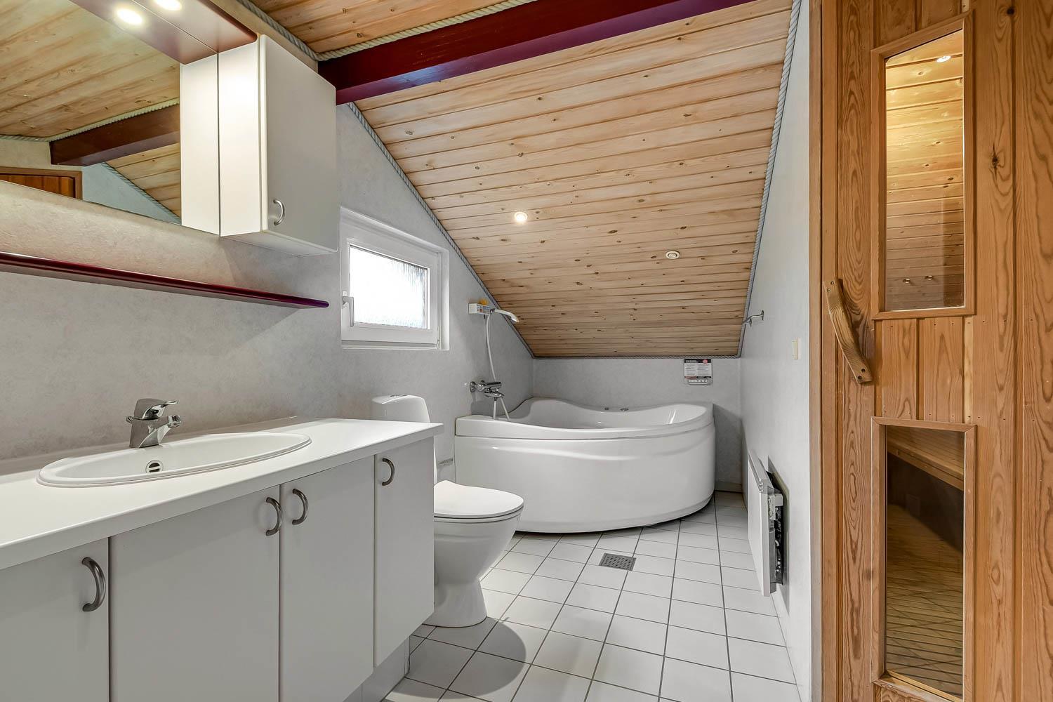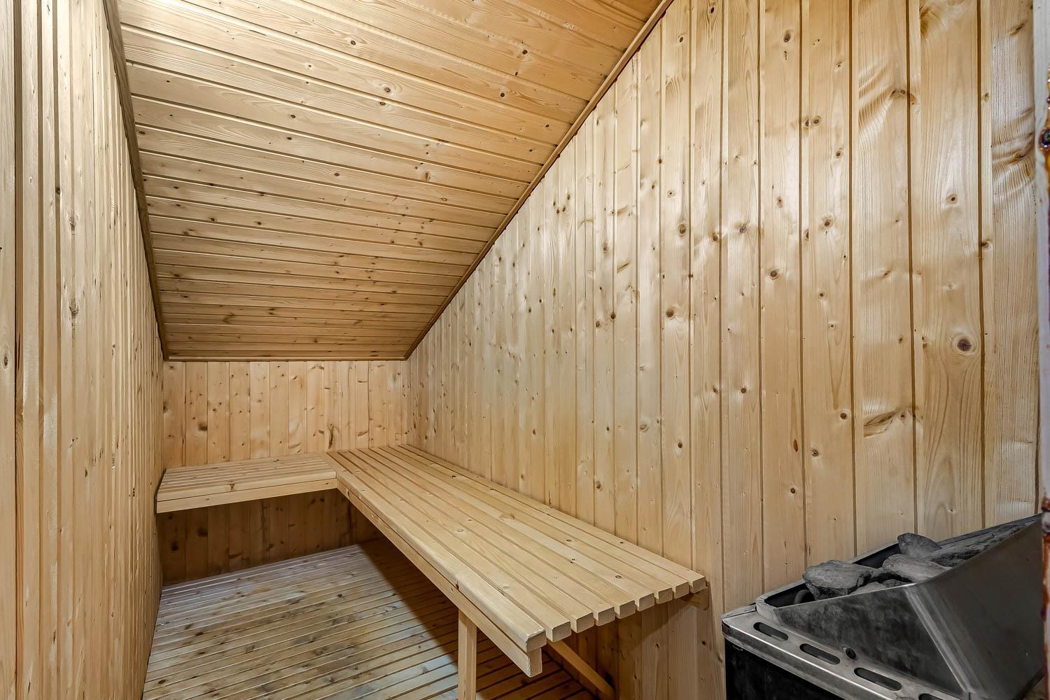 Huset har en dejlig stor lys rummelig stue som er kombineret med køkkenet. Køkkenet har glaskeramisk komfur, køleskab med frostboks, mikrobølgeovn og opvaskemaskine. Der er ligeledes en separat fryser på 85 liter i huset. I stuen er der brændeovn, varmepumpe, CD-afspiller, DVD-afspiller og fjernsyn med DR1, TV2 og parabol med tyske kanaler. Hertil er der i stuen også et spisebord hvor alle husets beboere kan nyde maden. Der hører også en barnestol og barneseng med i huset. Der er 3 soveværelser i huset 1 med dobbeltseng , 2 med hver 2 enkeltsenge og hertil er der 2 liggemuligheder oppe på hemsen. Her skal man dog kravle op af en stige for at kunne benytte denne. Der er to badeværelser og det store badeværelse har både sauna og boblebad i tillæg til bruser, håndvask og toilet. Her befinder også husets tørretumbler og vaskemaskine. Det andet badeværelse har toilet, bruser og håndvask.