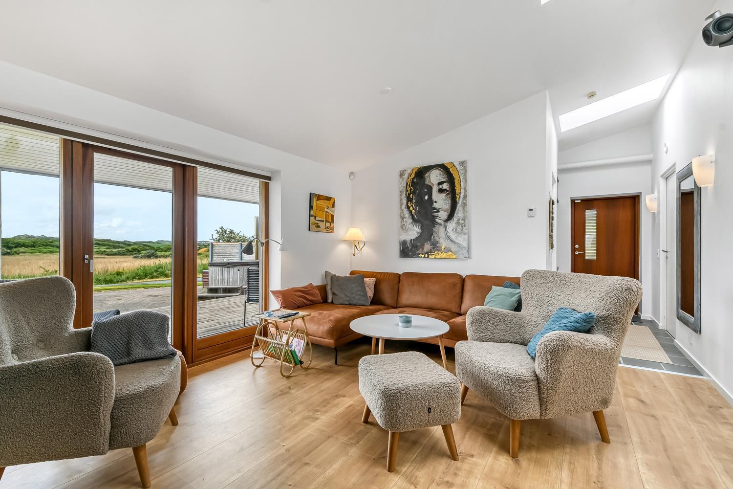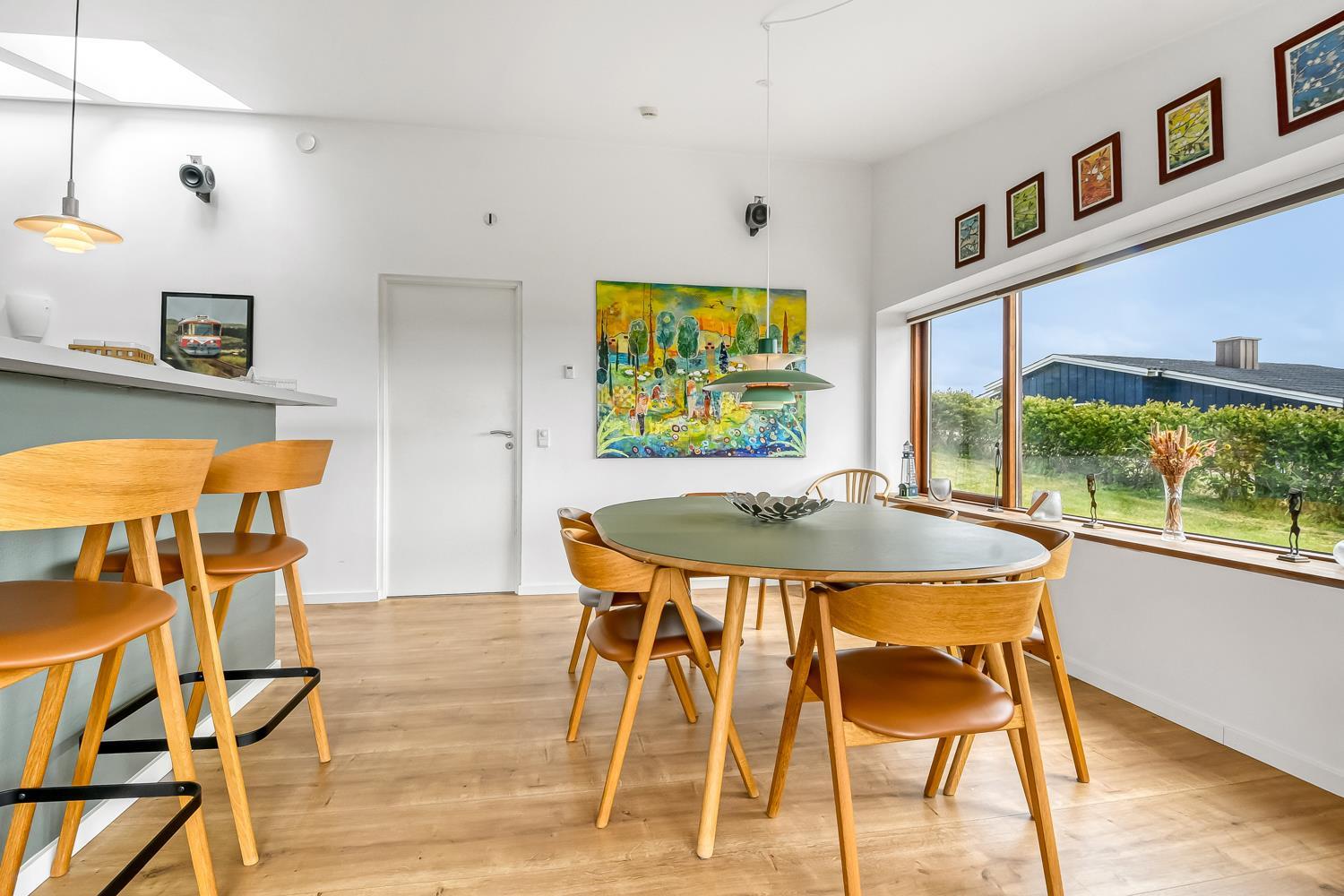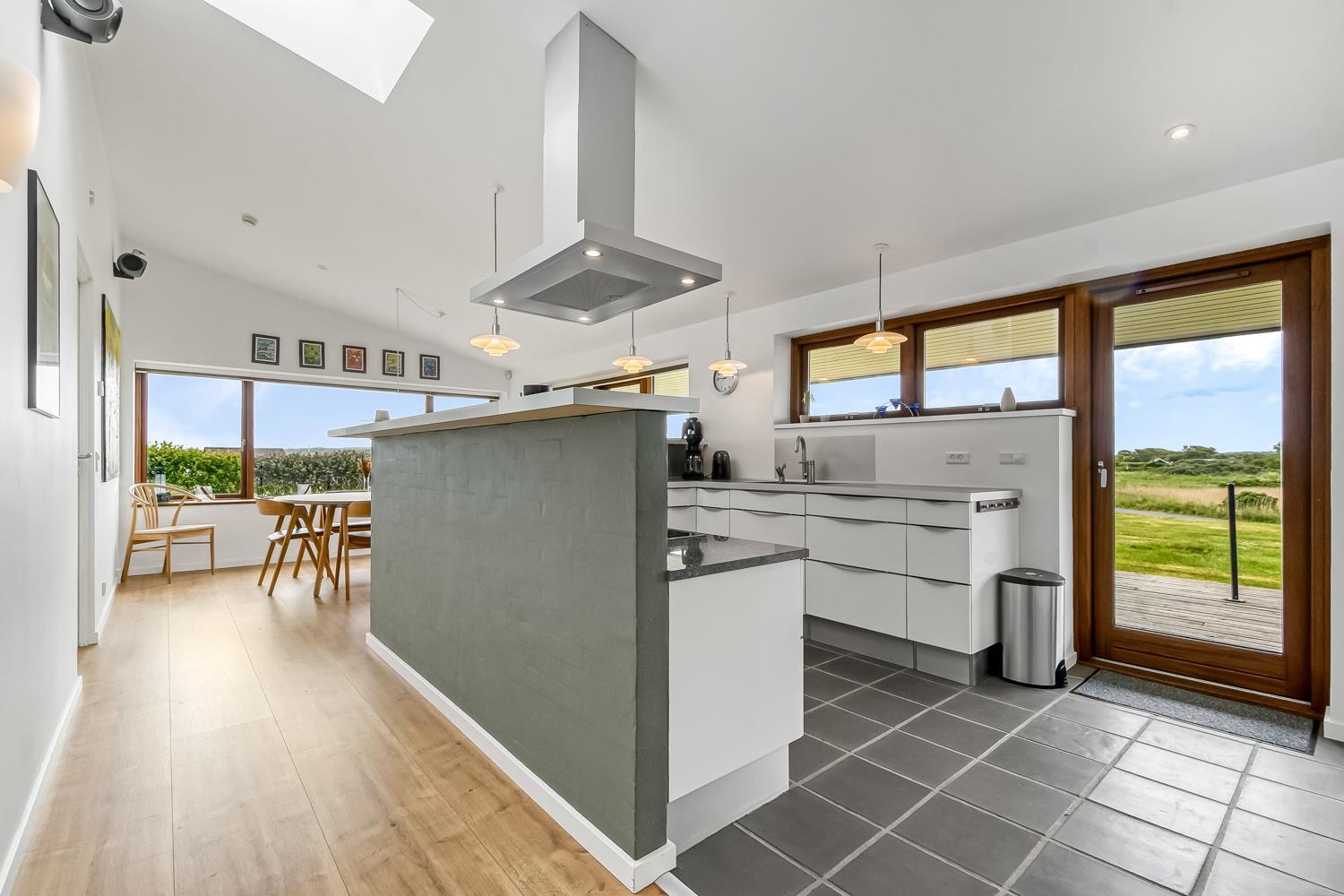 Sommerhuset på 128 m2. Kombineret opholdsstue og køkkenhjørne med loft til kip samt udgang til en fantastisk terrasseanlæg, panoramaudsigt. Godt udstyret køkkenhjørne med alt i service og køkkengrej samt glaskeramiske kogeplader, emhætte, mikrobølgeovn, indbygningsovn, opvaskemaskine og køleskab, gulvvarme. Dejlig opholdsstue med polstermøbler, spisebord, TV danske og tyske kanaler og med Chromecast som giver mulighed for streaming af radio- og TV-programmer - , DVD, CD og radio og indbygget brændeovn og en varmepumpen som begge er med til at begrænse udgiften til forbrug på alle årstider, der er også gulvvarme i stue/alrum. 4 soverum (1DS, 1DS, 1DS, 1DS) der er gulvvarme i alle soverummene. Praktiske hårde gulve stue/alrum og i alle soverum, og klinker i køkkenafdelingen. Stor flot bryggers med vaskemaskine og tørretumbler samt rigelig skabs og skuffeplads til opbevaring og klinkegulv. 2 store og flotte badeværelser med bruser, toilet, håndvask og gulvvarme. På begge toiletter er der klinkegulv med gulvvarme. Har man el-bil eller en Plug-In hybrid, så er der opsat ladeboks ved huset. Ikke-ryger hus. Husdyr ikke tilladt.