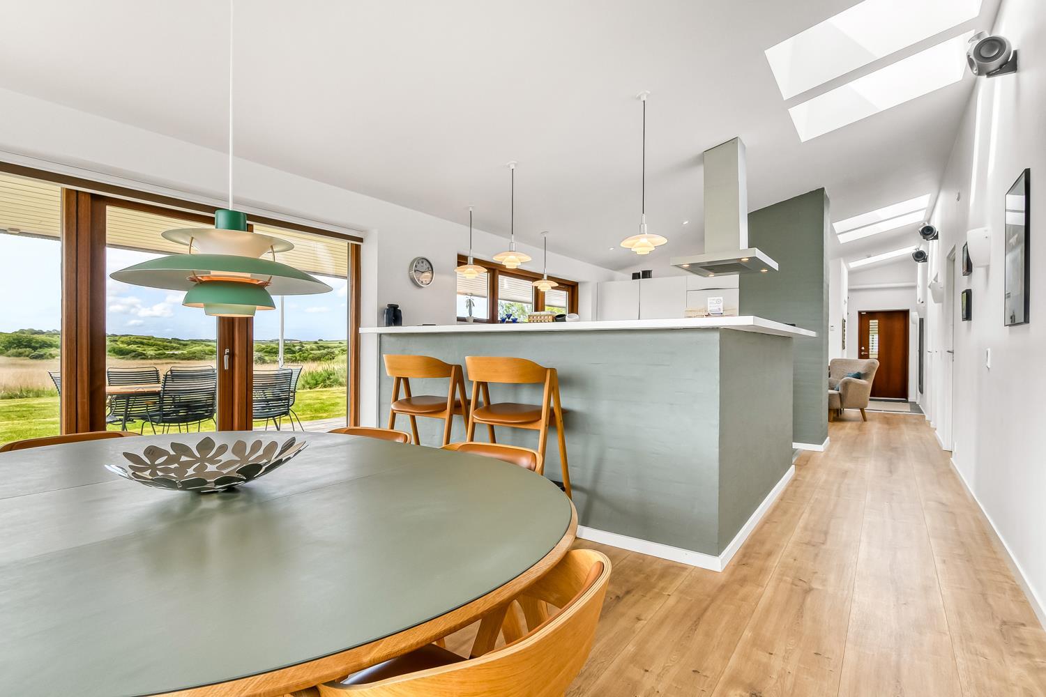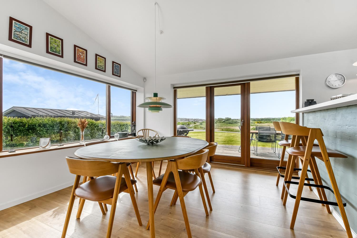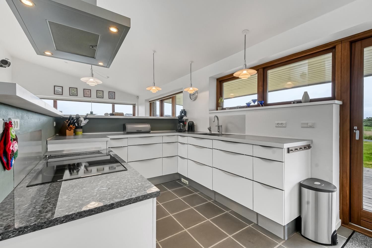 Sommerhuset på 128 m2. Kombineret opholdsstue og køkkenhjørne med loft til kip samt udgang til en fantastisk terrasseanlæg, panoramaudsigt. Godt udstyret køkkenhjørne med alt i service og køkkengrej samt glaskeramiske kogeplader, emhætte, mikrobølgeovn, indbygningsovn, opvaskemaskine og køleskab, gulvvarme. Dejlig opholdsstue med polstermøbler, spisebord, TV danske og tyske kanaler og med Chromecast som giver mulighed for streaming af radio- og TV-programmer - , DVD, CD og radio og indbygget brændeovn og en varmepumpen som begge er med til at begrænse udgiften til forbrug på alle årstider, der er også gulvvarme i stue/alrum. 4 soverum (1DS, 1DS, 1DS, 1DS) der er gulvvarme i alle soverummene. Praktiske hårde gulve stue/alrum og i alle soverum, og klinker i køkkenafdelingen. Stor flot bryggers med vaskemaskine og tørretumbler samt rigelig skabs og skuffeplads til opbevaring og klinkegulv. 2 store og flotte badeværelser med bruser, toilet, håndvask og gulvvarme. På begge toiletter er der klinkegulv med gulvvarme. Har man el-bil eller en Plug-In hybrid, så er der opsat ladeboks ved huset. Ikke-ryger hus. Husdyr ikke tilladt.
