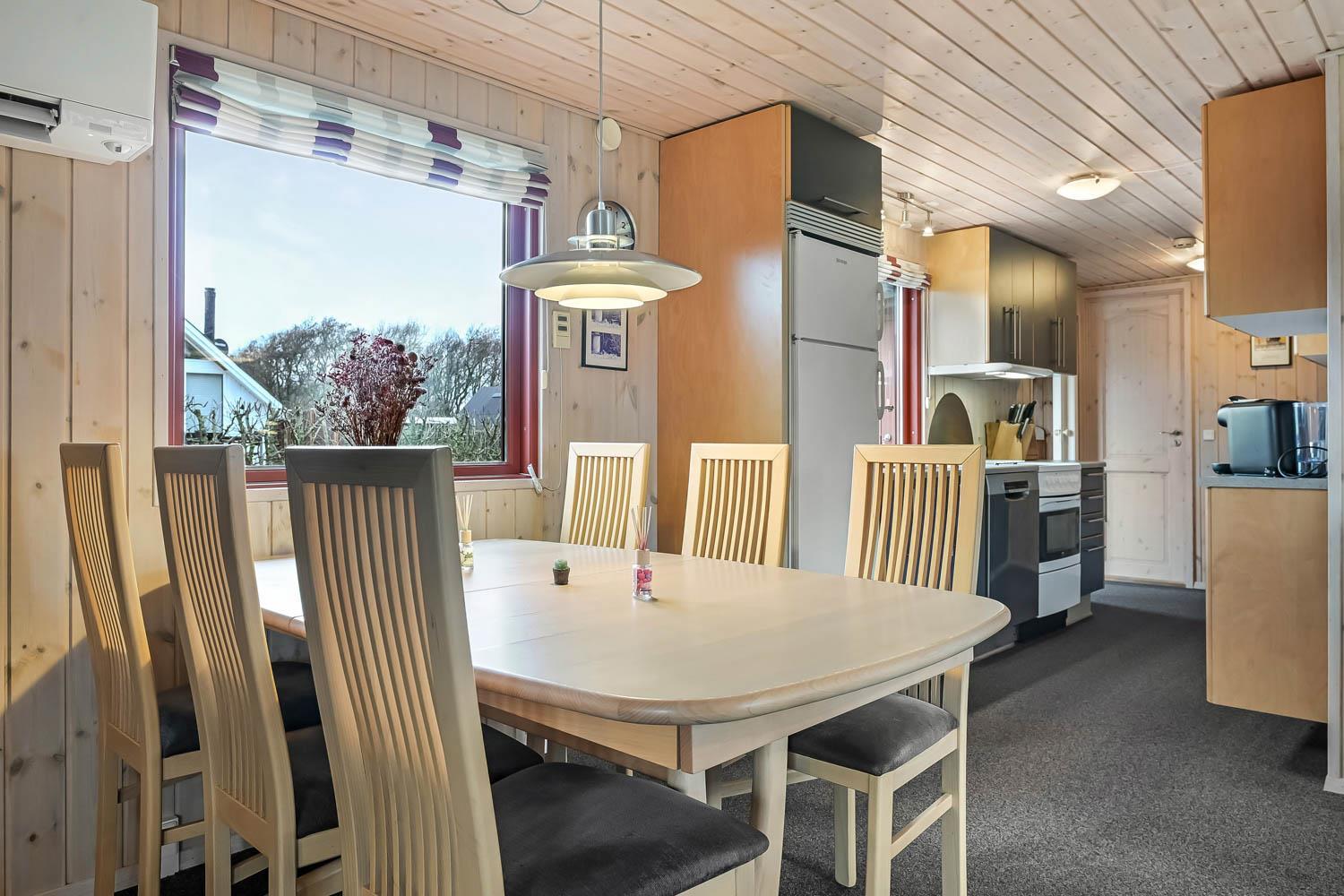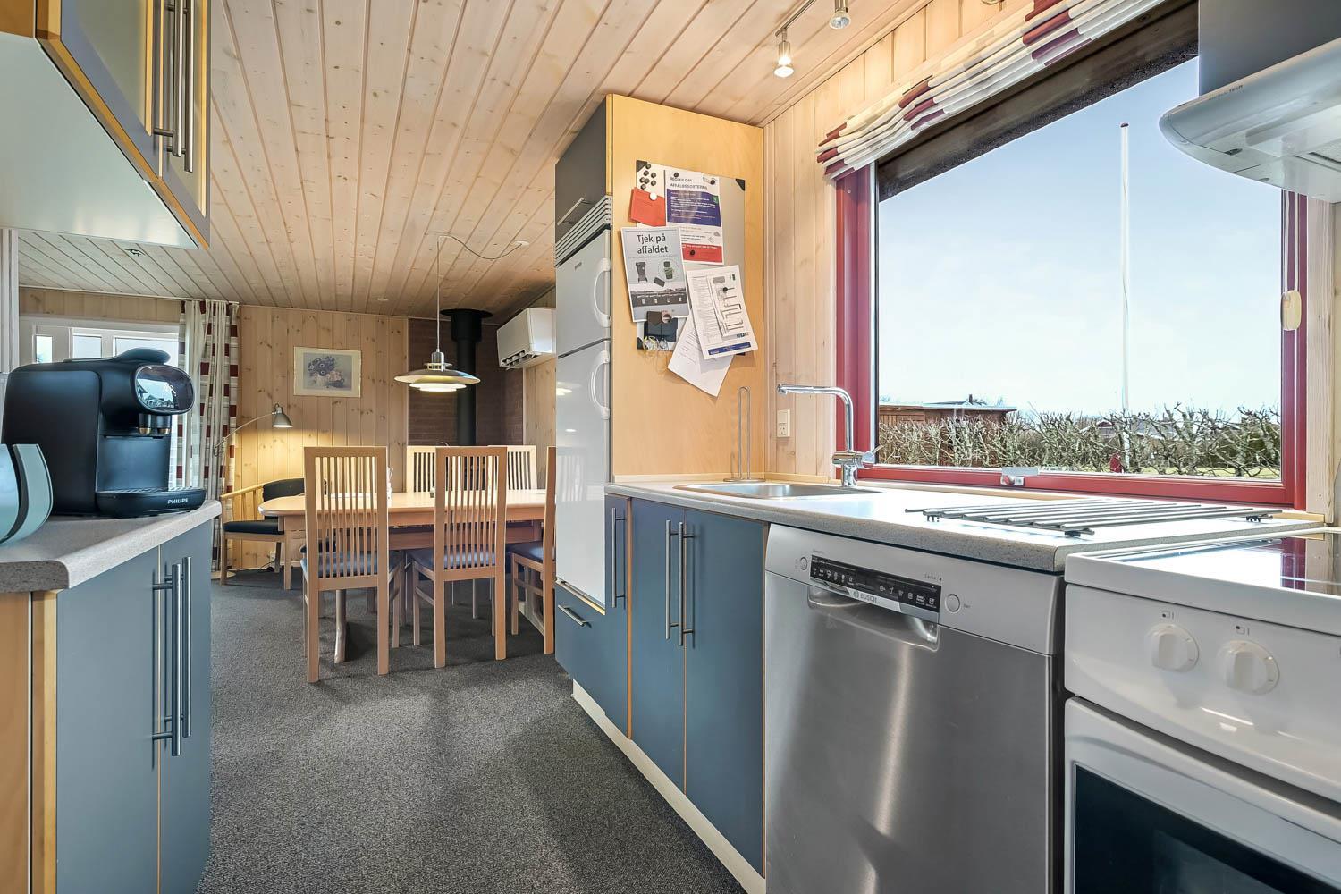 Køkkenet har glaskeramisk komfur, opvaskemaskine, køleskab og en separat fryser på 20 liter.