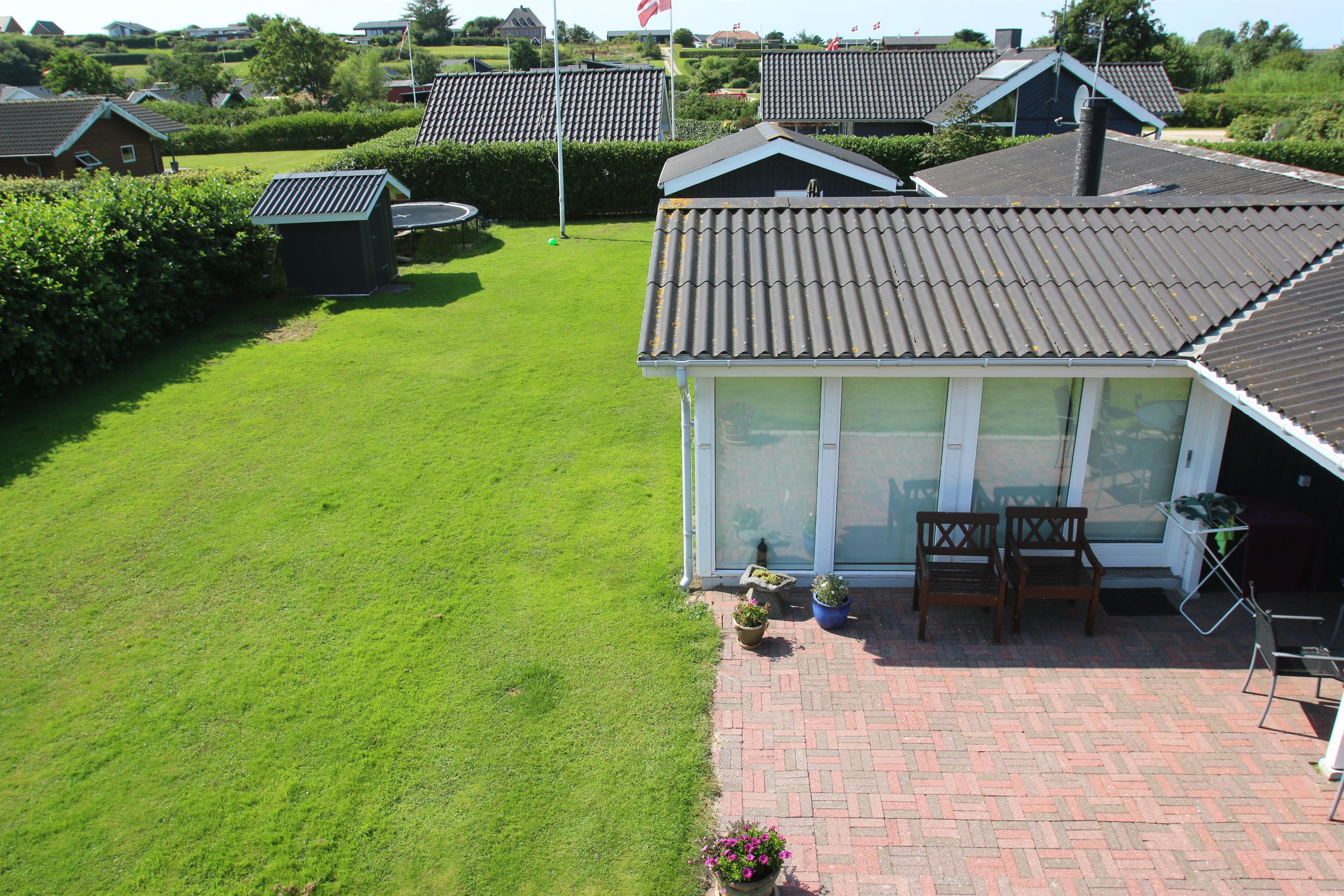 Huset har en dejlig terrasse med havemøbler og grill, hvor man kan nyde solen, læse en bog eller spise udendørs med familien. Grunden byder på masser af plads og grønne områder med træer, som skaber en hyggelig og fredelig atmosfære. Huset er udstyret med varmepumpe, hvilket sikrer en behagelig temperatur året rundt. Huset er et ikke-ryger hus.