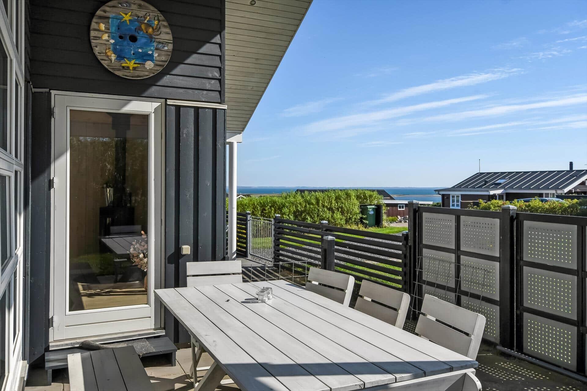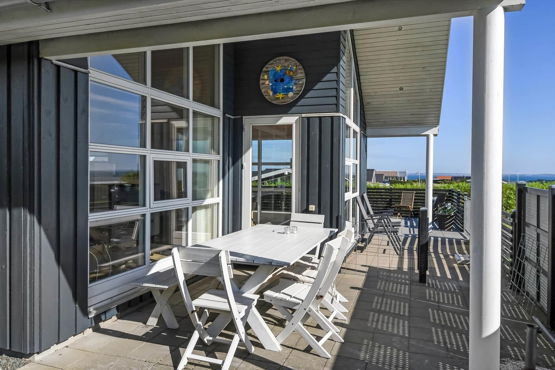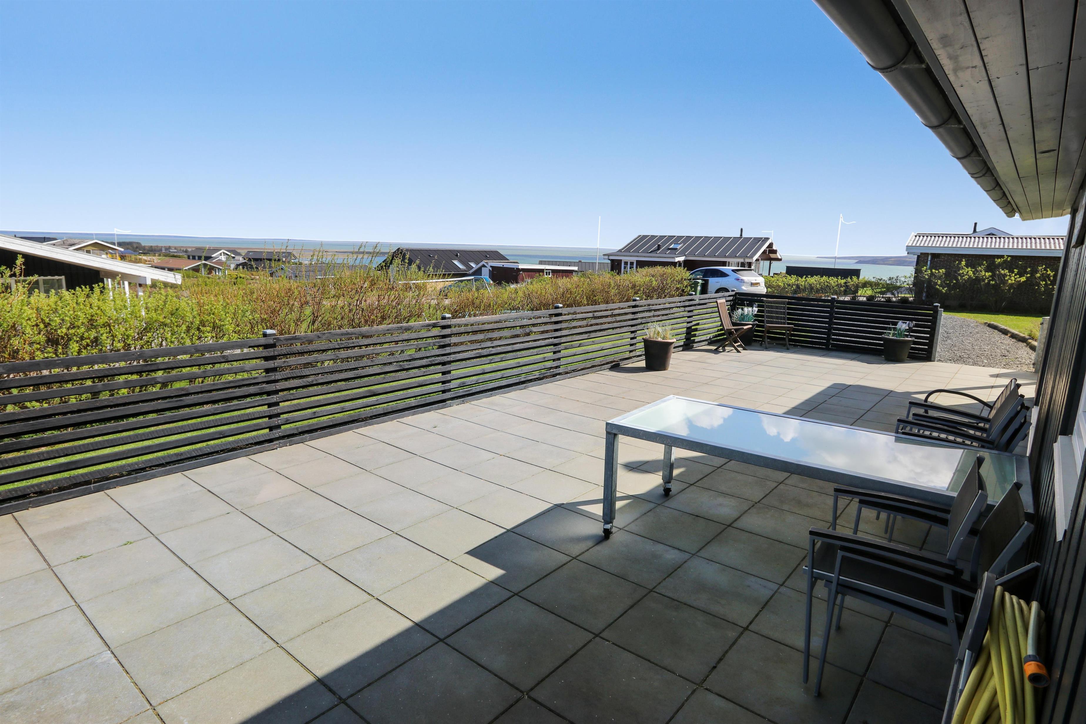 Huset udearealer er noget helt specielt. Huset ligger på en ca. 900 m2 stor indhegnet grund. Fantastisk, delvist overdækket og indhegnet terrasseanlæg med havemøbler, grill og liggestole. Her kan der altid findes en plads i solen samt pragtfuldt kig til Limfjorden. Havemøbler, solvogn og grill kan flyttes rundt på terrassen efter behag. Også på bagsiden af huset er der en dejlig terrasse med havemøbler og udsigt over landskabet. I det praktiske udhus findes der havehynder. gasgrill og kulgrill. Højt, ugeneret beliggende på en rolig stikvej. Velholdt grund med trampolin, gynge og kun 300 m fra stranden. Fra huset findes der stisystemer, som på få minutter fører direkte ned til fjord, badestrand og badebroer. Nær ved huset ligger også den nye flotte naturlegeplads som er lavet i naturmaterialer og hvor der bla. er rutsjebaner, gynger og meget andet. Her findes også iskiosk og restaurant, som har åbnet i sæsonen. Der er i øvrigt kun ca. fire km til Lemvig by, som er en livlig handelsby med mange butikker, fiskerestaurant, biograf, skaterbane, museum mm.
