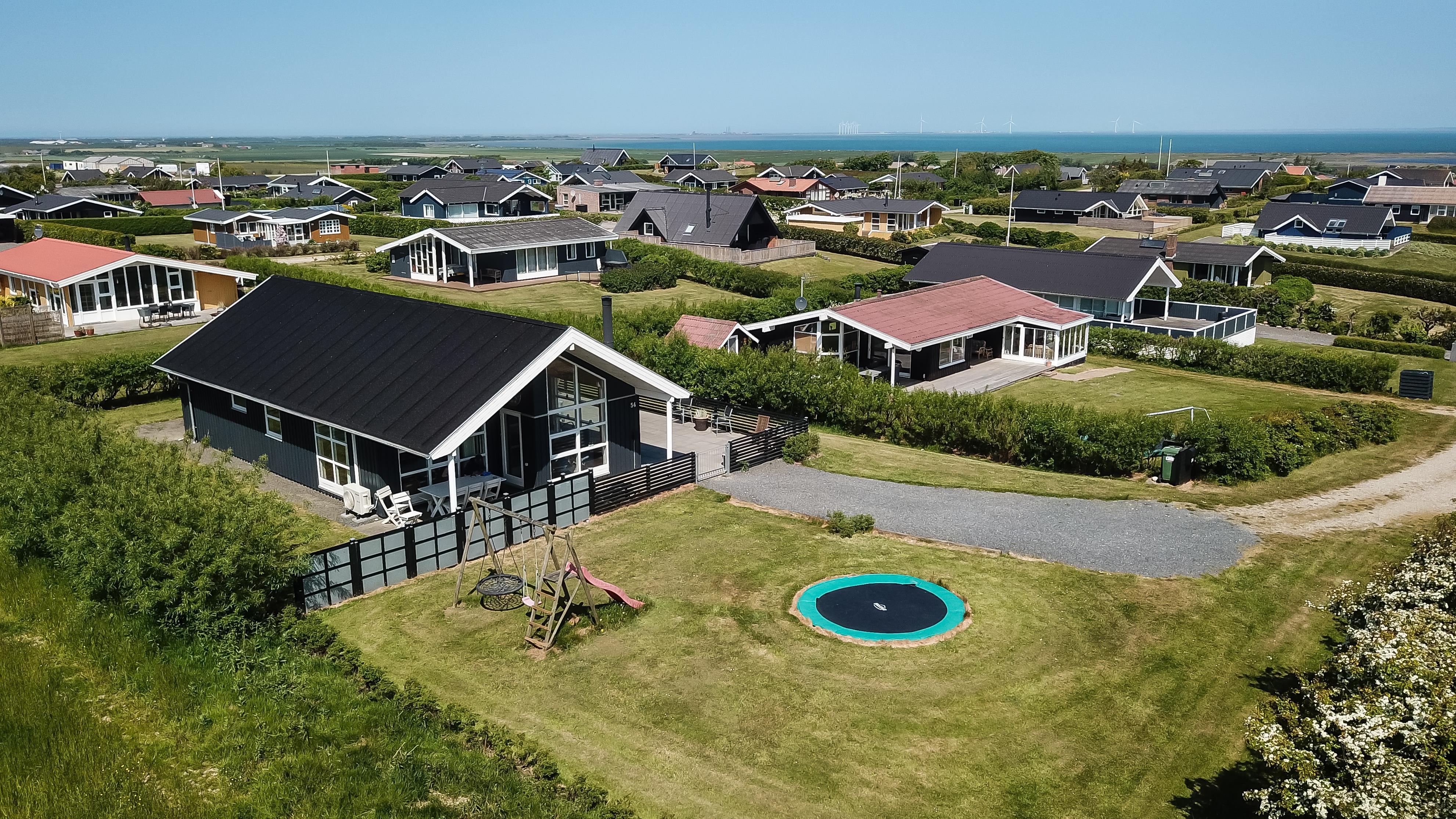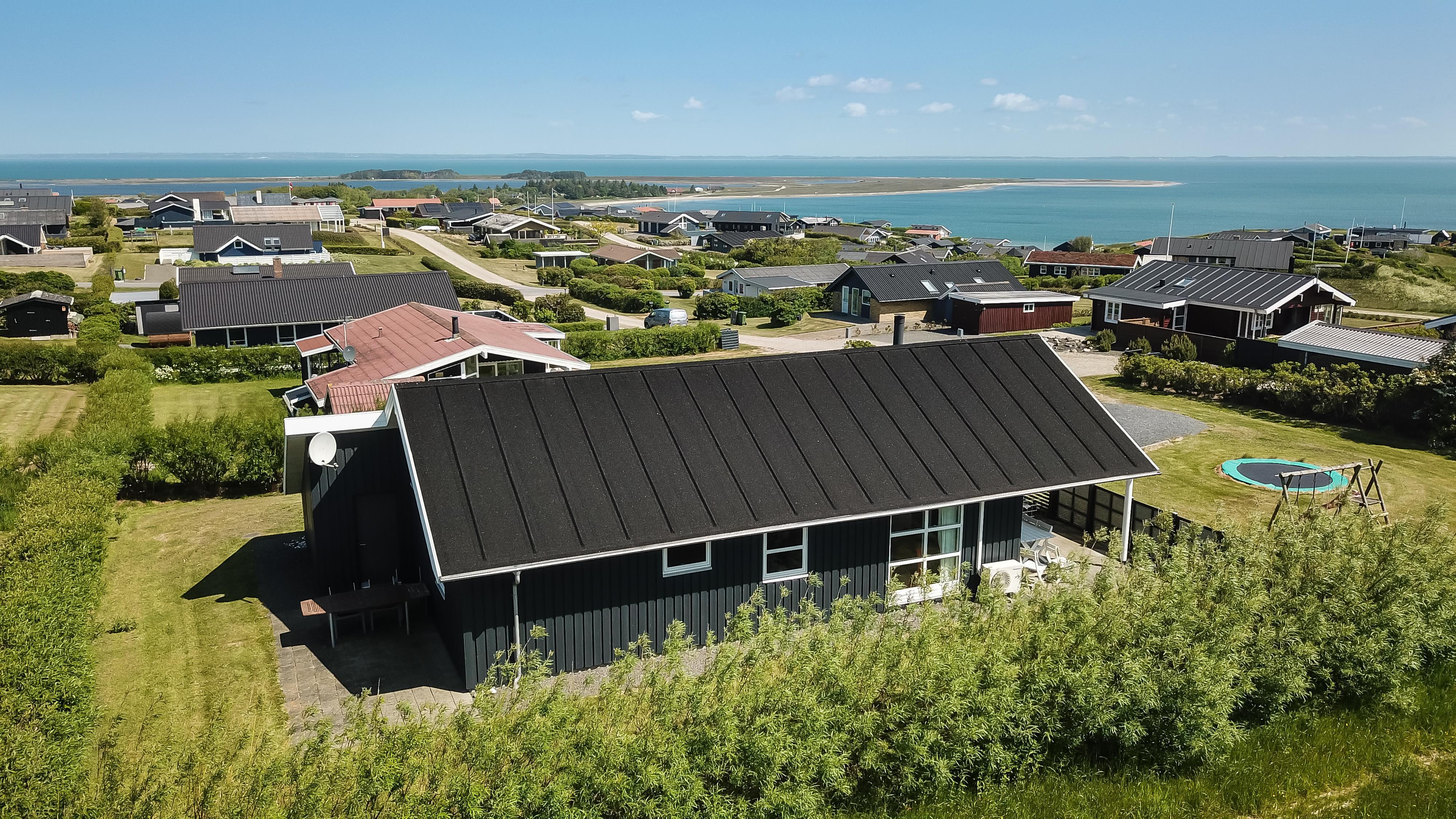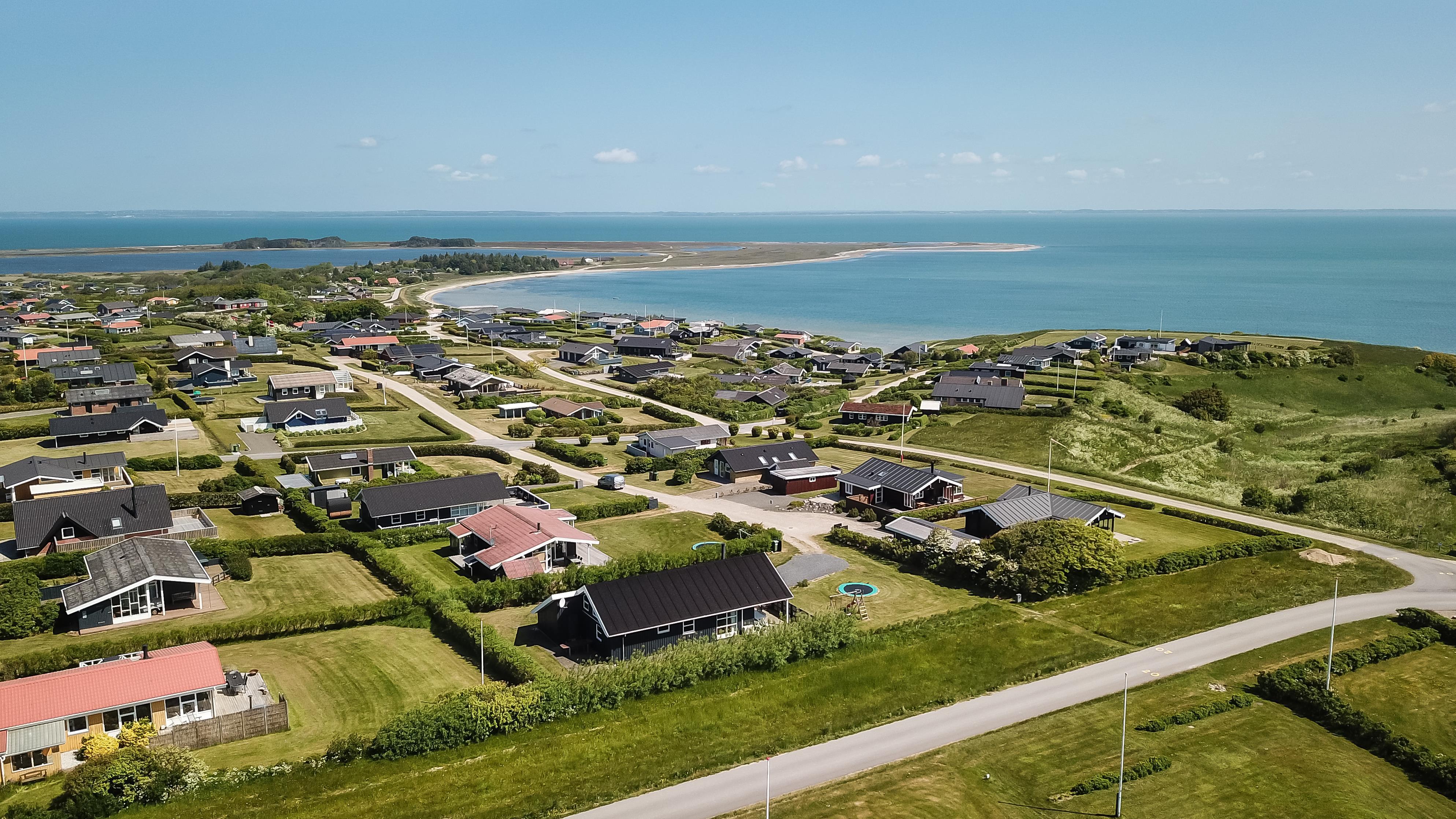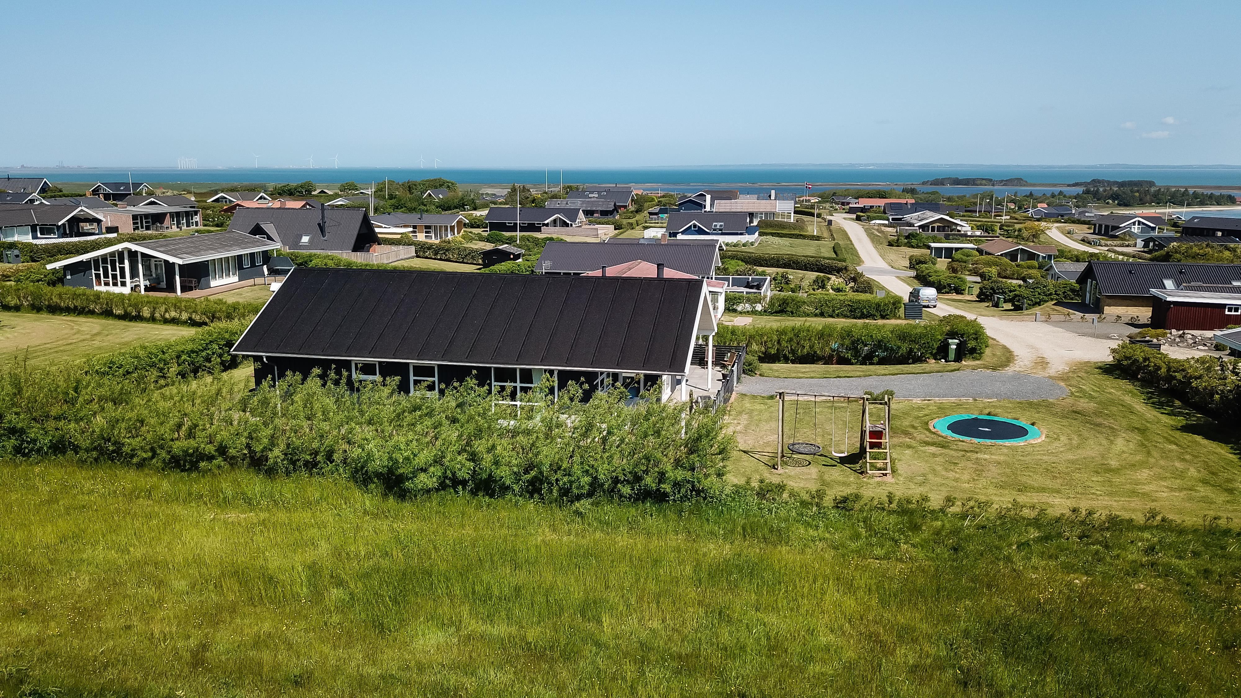 Huset udearealer er noget helt specielt. Huset ligger på en ca. 900 m2 stor indhegnet grund. Fantastisk, delvist overdækket og indhegnet terrasseanlæg med havemøbler, grill og liggestole. Her kan der altid findes en plads i solen samt pragtfuldt kig til Limfjorden. Havemøbler, solvogn og grill kan flyttes rundt på terrassen efter behag. Også på bagsiden af huset er der en dejlig terrasse med havemøbler og udsigt over landskabet. I det praktiske udhus findes der havehynder. gasgrill og kulgrill. Højt, ugeneret beliggende på en rolig stikvej. Velholdt grund med trampolin, gynge og kun 300 m fra stranden. Fra huset findes der stisystemer, som på få minutter fører direkte ned til fjord, badestrand og badebroer. Nær ved huset ligger også den nye flotte naturlegeplads som er lavet i naturmaterialer og hvor der bla. er rutsjebaner, gynger og meget andet. Her findes også iskiosk og restaurant, som har åbnet i sæsonen. Der er i øvrigt kun ca. fire km til Lemvig by, som er en livlig handelsby med mange butikker, fiskerestaurant, biograf, skaterbane, museum mm.