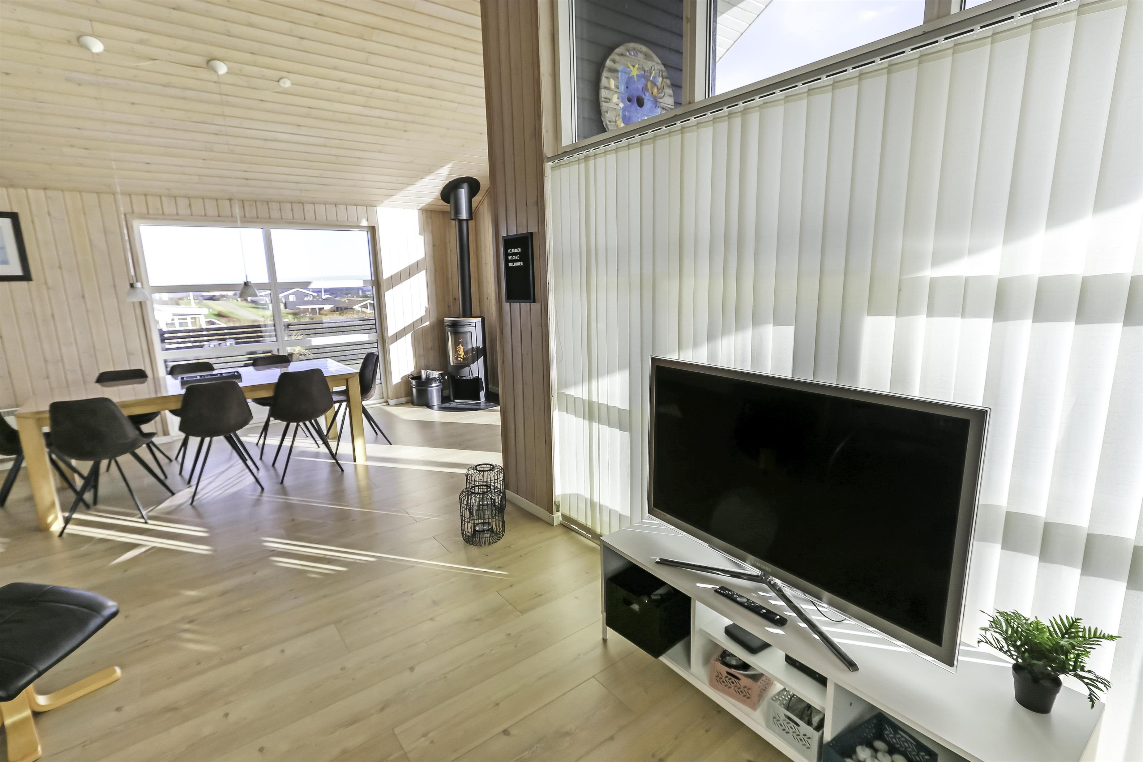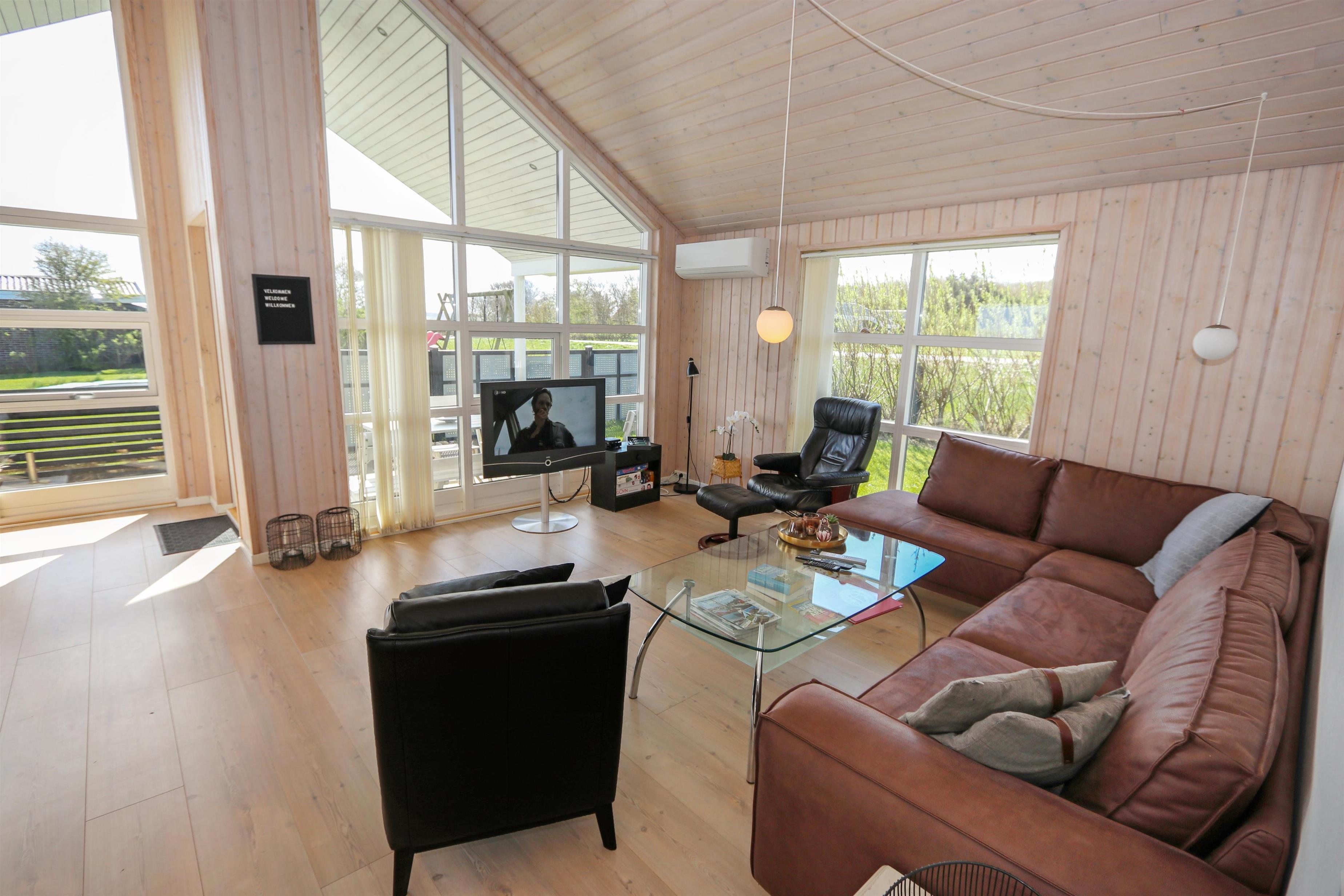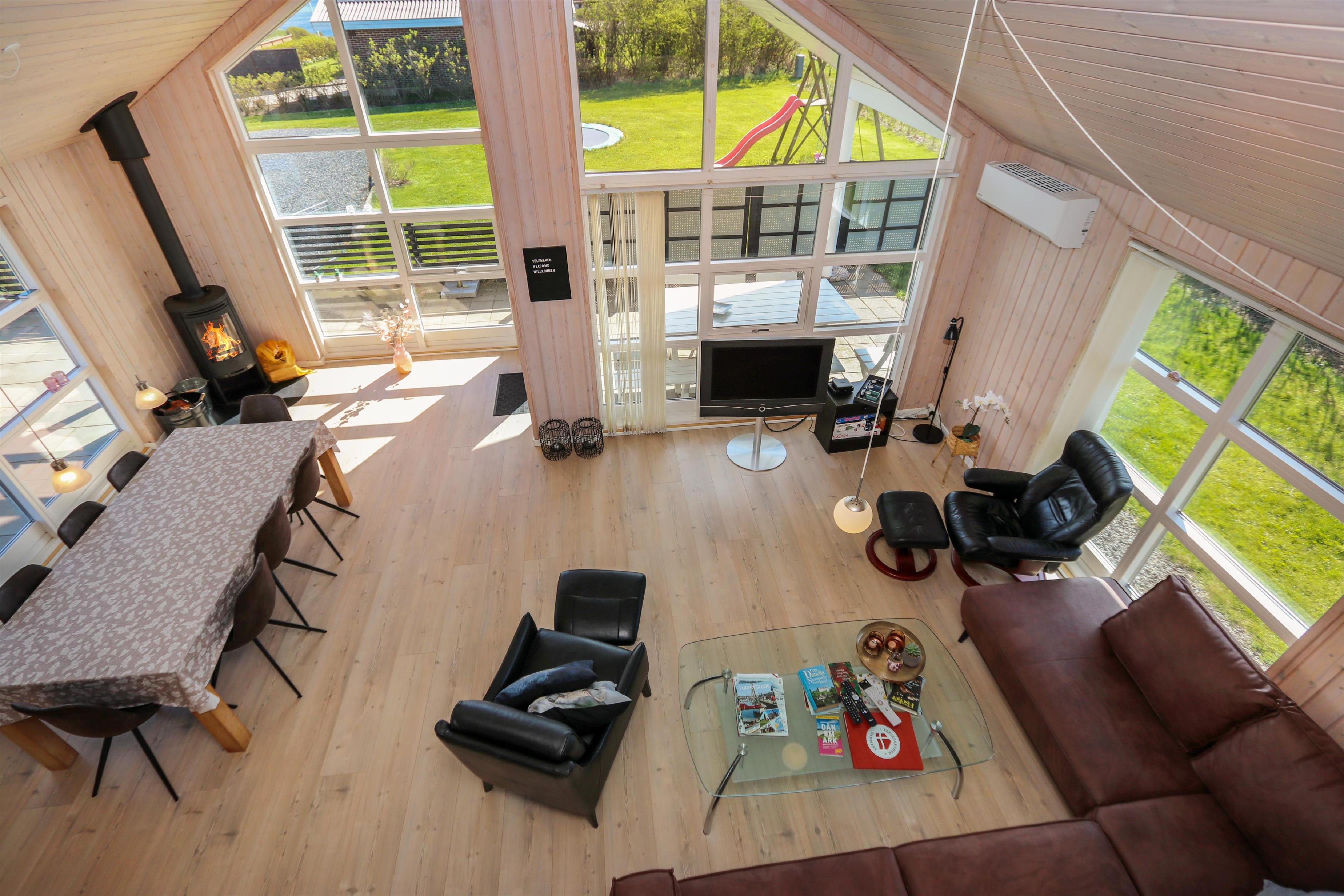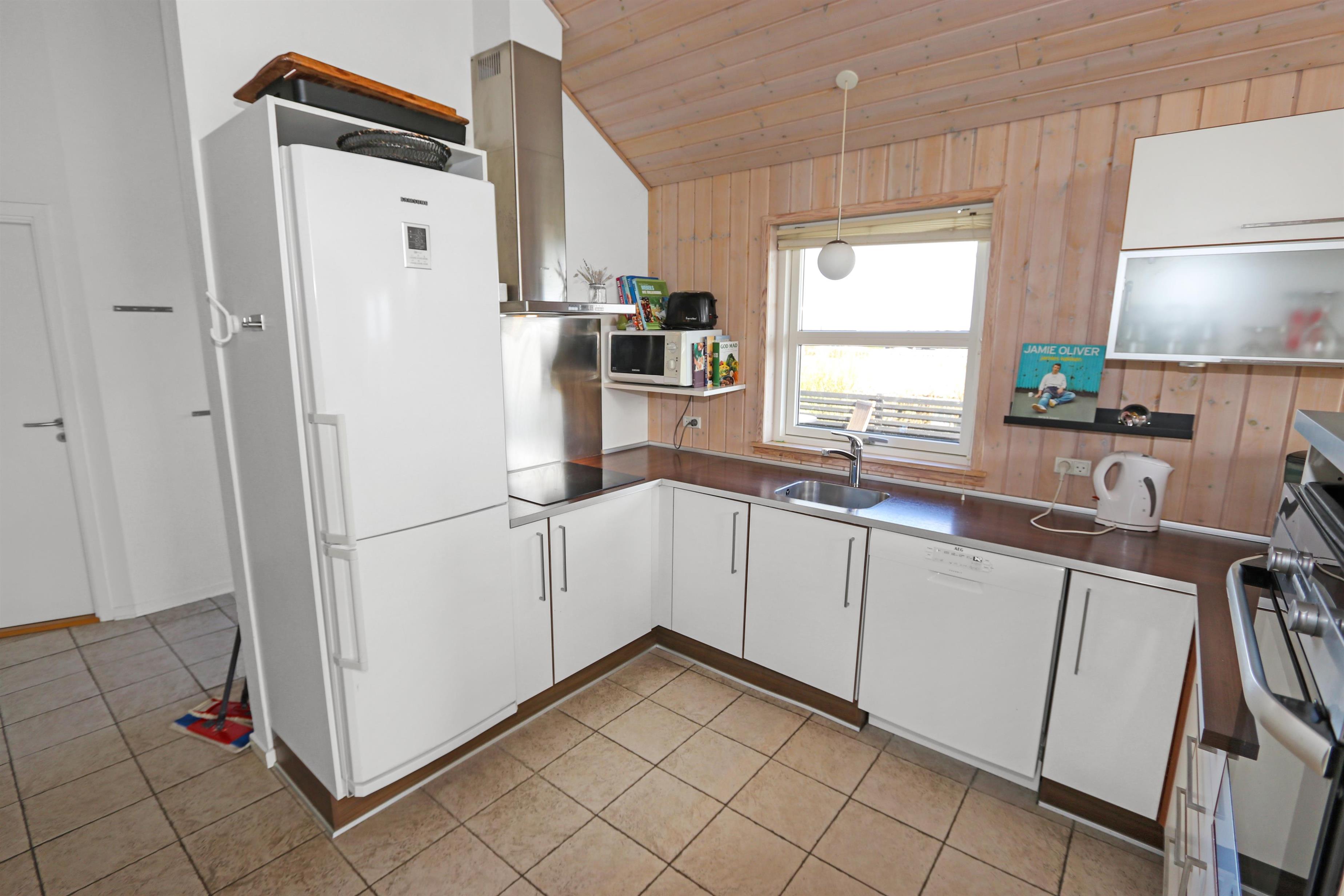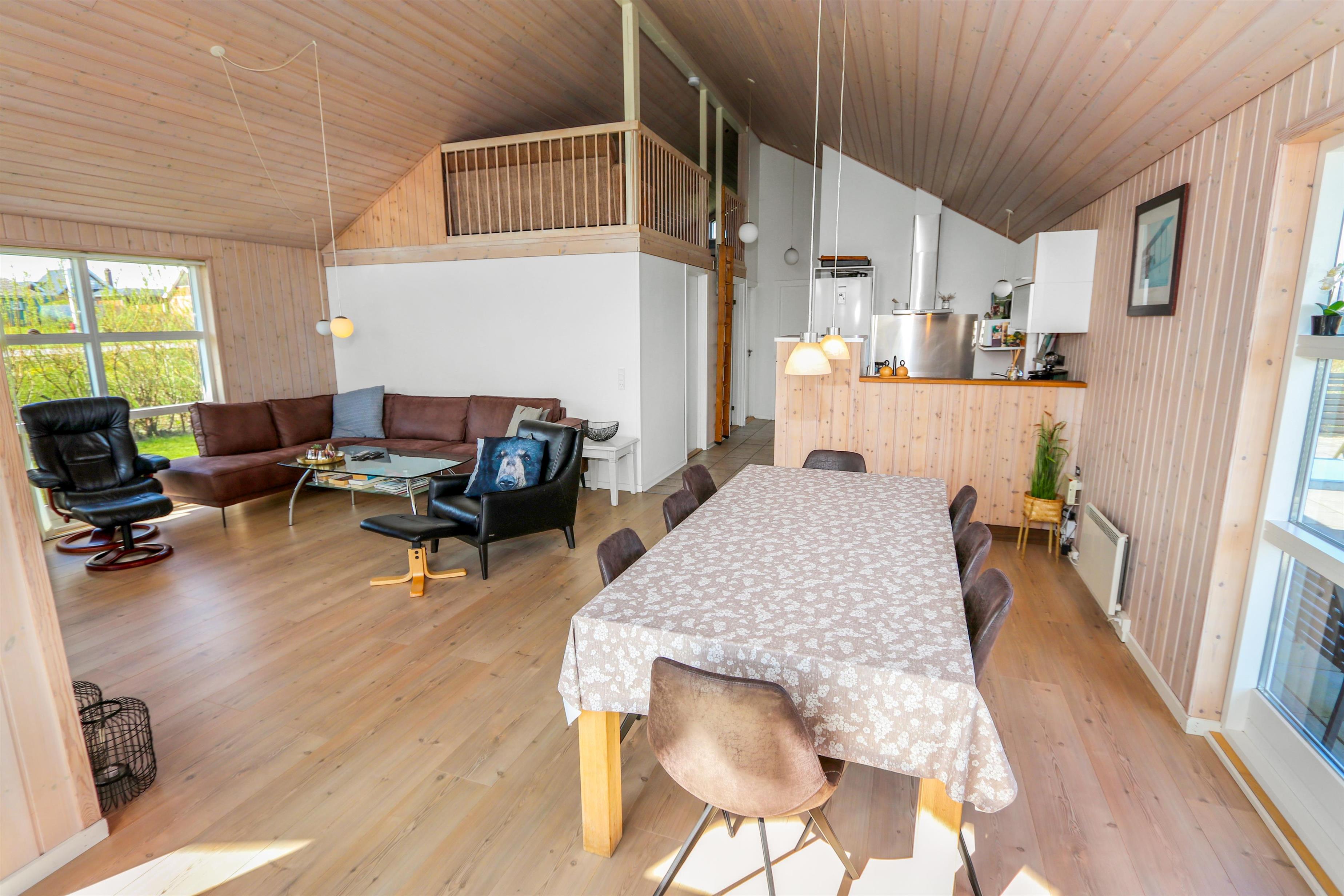 Dette kvalitets feriehus på ca. 98 m2, er bygget i 2009 og er herefter blevet løbende vedligeholdt og renoveret. En rummelig entré med vaskemaskine og tørretumbler byder jer velkommen. En dejlig Kombineret opholdsstue og køkkenhjørne med loft i kip. Opholdsstuen er pænt møblere med bla en hjørnesofa, TV med parabol, som gør at det er muligt at se danske og tyske kanaler samt Chromecast til streaming af abbonnementstjenester. Slap af foran den knitrende brændeovn, som sammen med varmepumpen hjælper med at reducere udgiften til varmeregningen samtidig med I nyder udsigten fra stuen til Limfjorden.