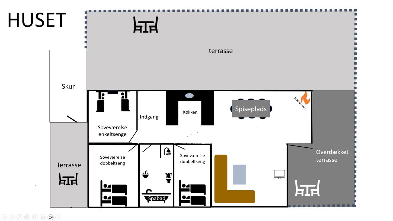 Samtalekøkkenet med keramiske kogeplader, emhætte, indbygningsovn, opvaskemaskine, mikroovn og køleskab med fryseboks. Lækkert Badeværelse med bruser, toilet, håndvask, spabad og klinkegulv med gulvvarme. Der findes 3 soverum i huset (1DS, 1DS, 2ES). Fra køkkenhjørnet er der via en god trappe adgang til en helt unik Hems med 2 ekstra sovepladser (1DS). Hemsen er så stor at man kan stå oprejst og der er også en sofa med bord. Helt unikt lavet. Der er klinkegulv med gulvvarme i køkkenet, entréen og badeværelset og der er praktiske trægulve i resten af huset. Har man el-bil eller en Plug-In hybrid, så er der ved ladeboks til Type 2 ladestik, Rygning er ikke tilladt i huset. Max 3 husdyr tilladt.