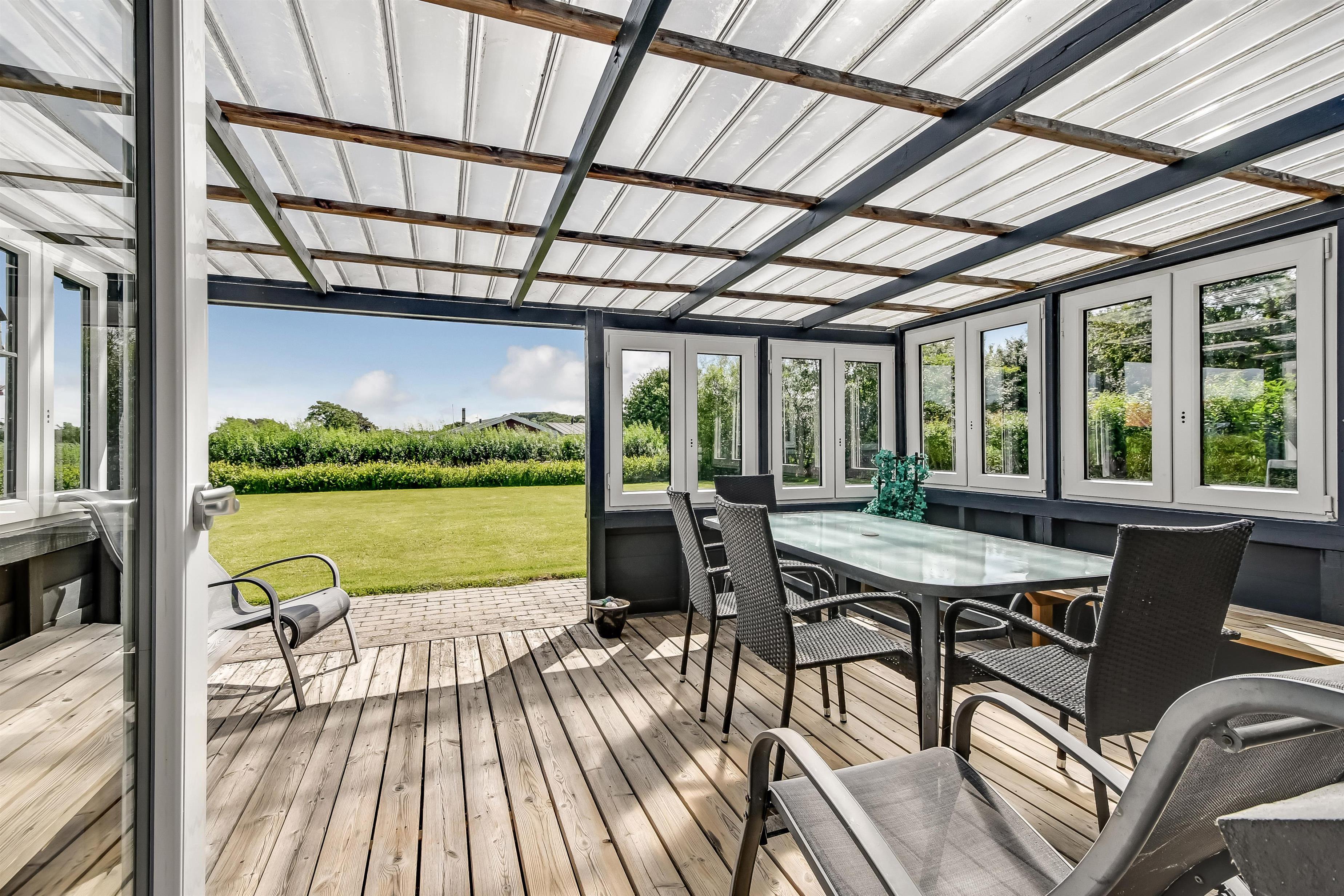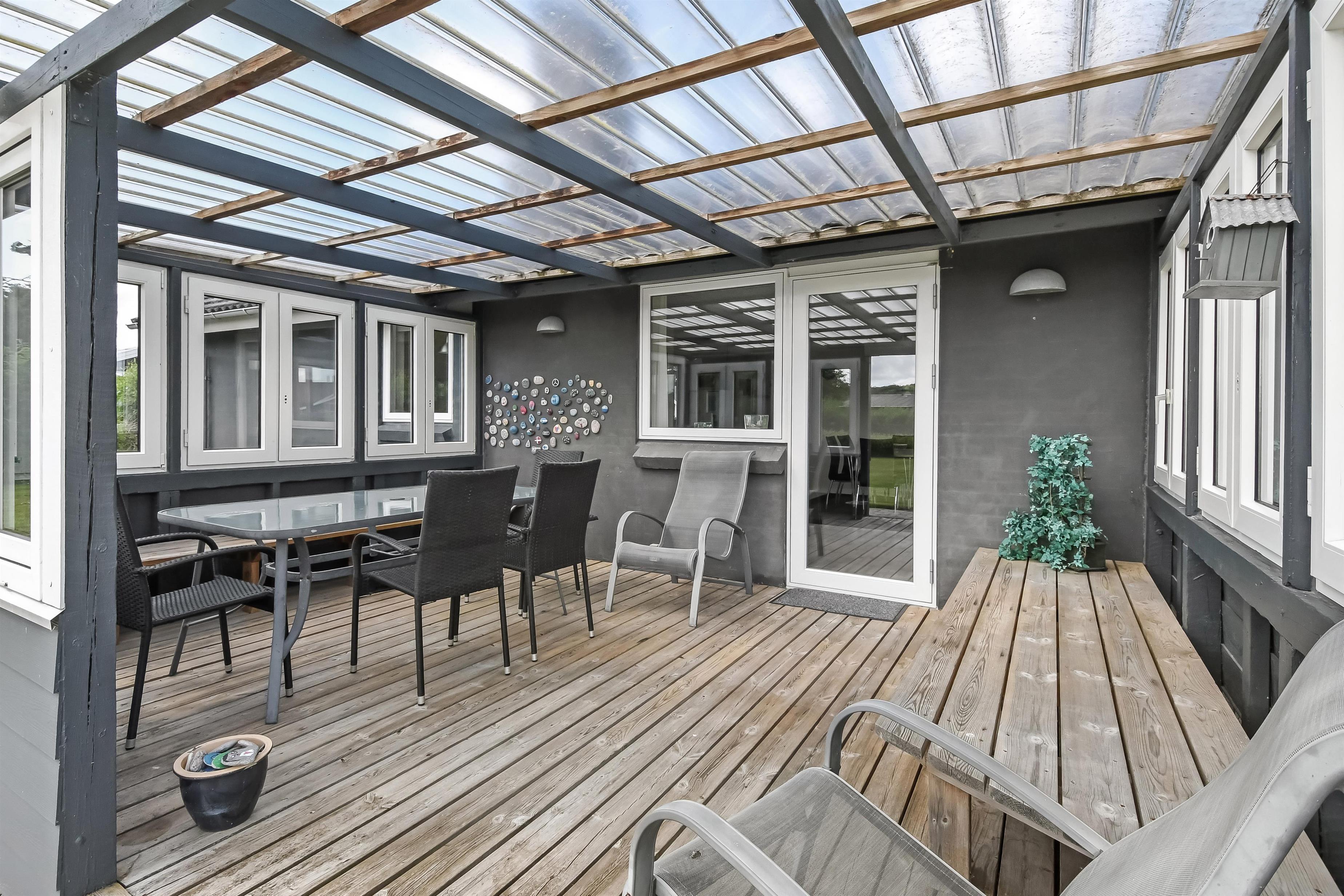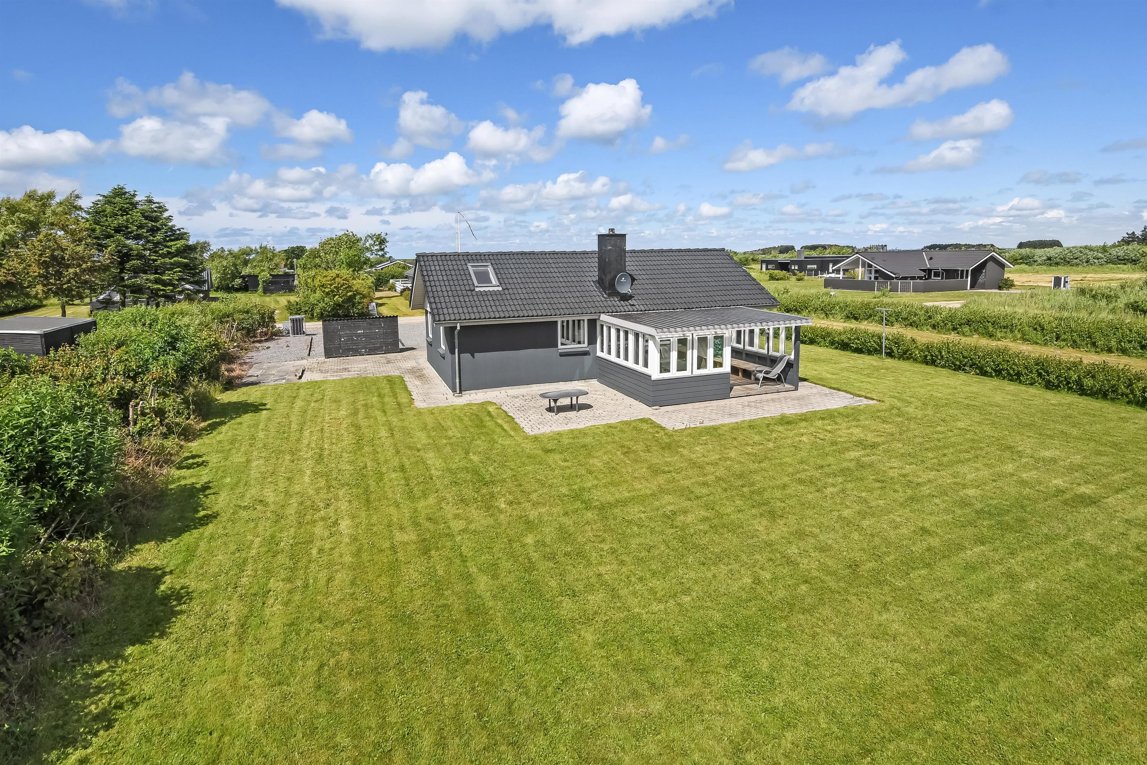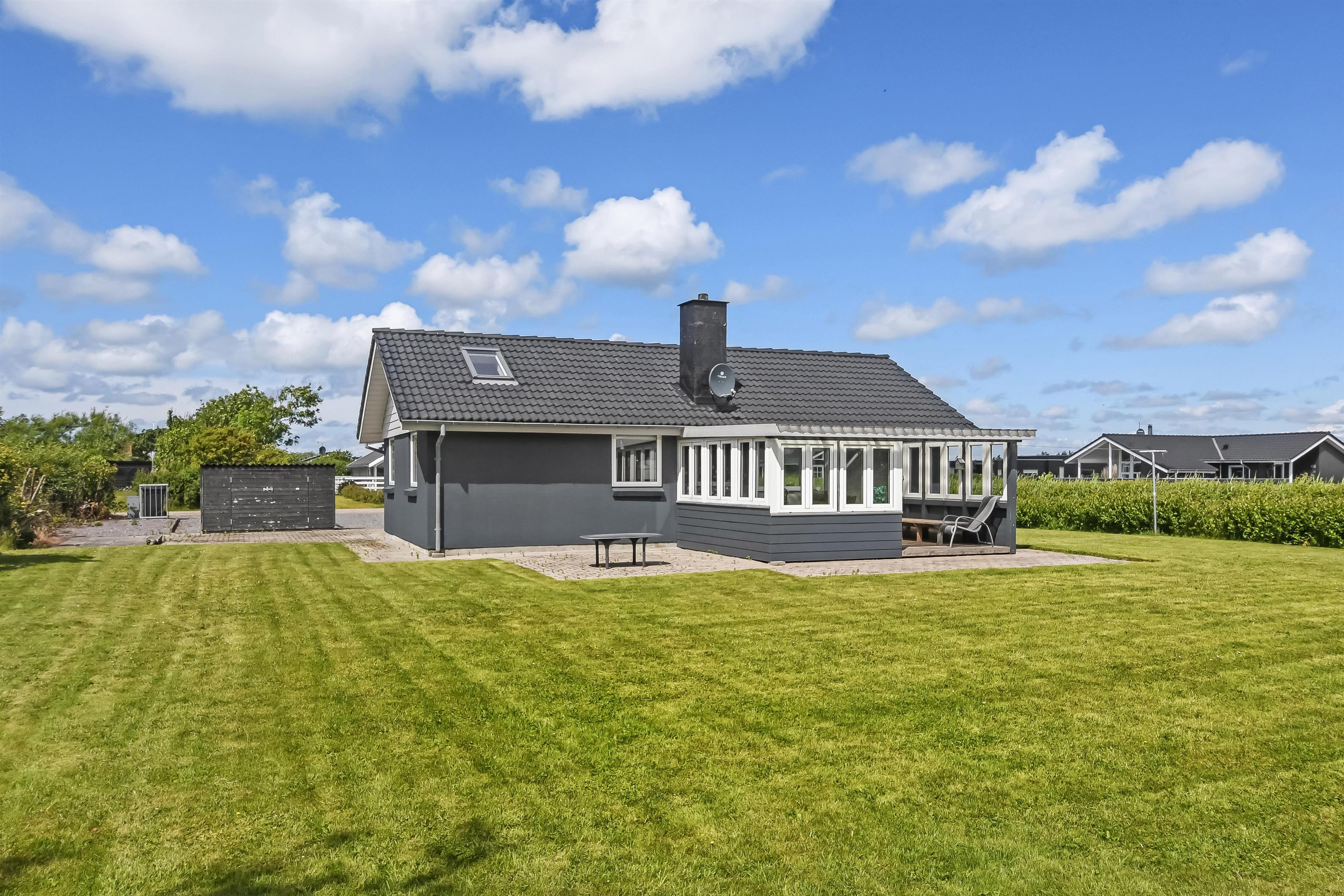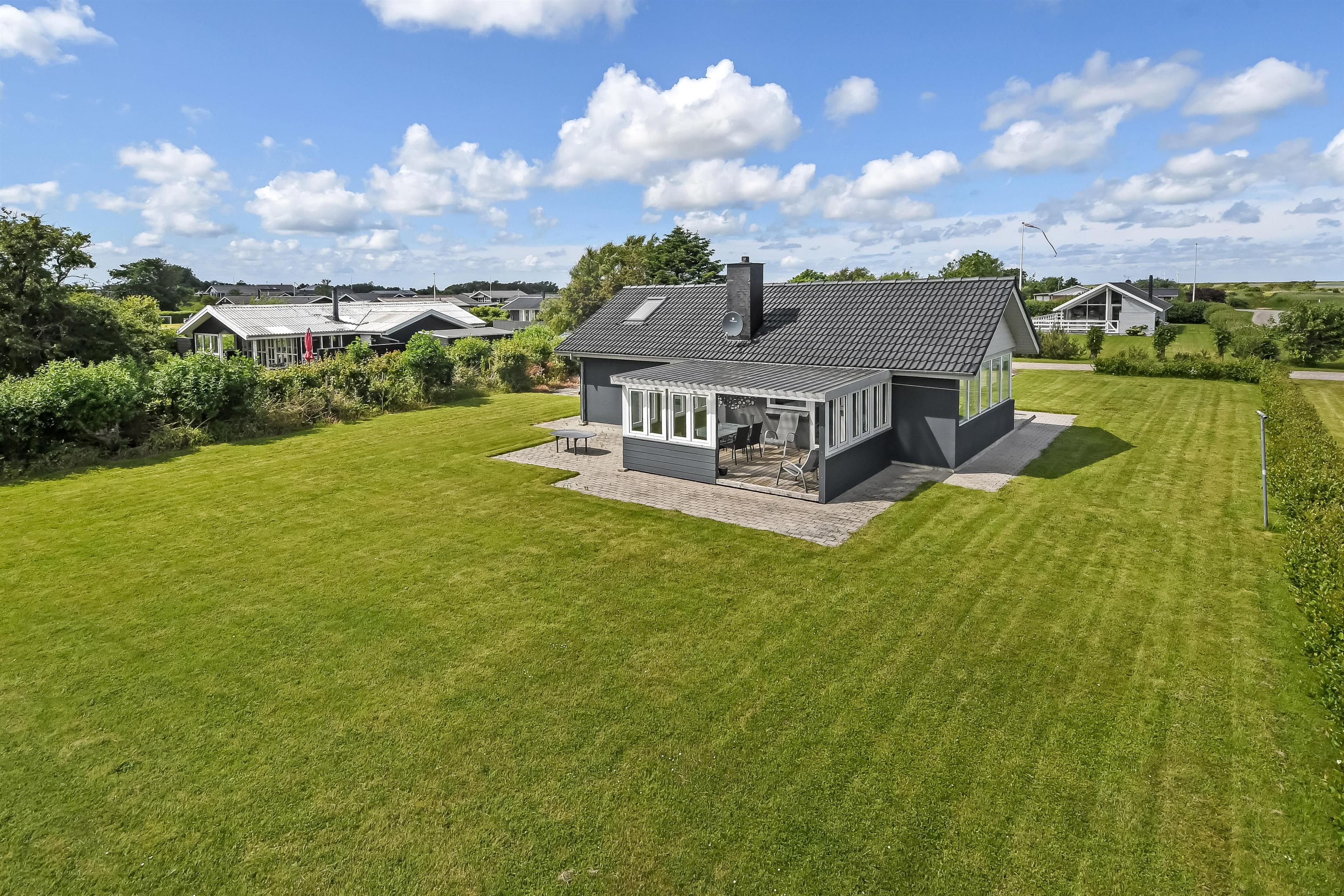 Huset ligger på en ca. 930 m2 stor, velholdt grund. Der er en helt lukket terrasse/havestue, hvorfra der er udgang fra stuen, her er der havebord og stole. Der findes flere terrasse omkring huset og havemøbler, solvogne og grill kan flyttes efter behov. På trods af den forholdsvise afsides og rolige beliggenhed er der om sommeren kun ca. 400 meter til Gjeller Odde cafeteria og kiosk som er et yndet udflugtsmål for de lokale. Her er også den børnevenligste strand i hele Lemvig Kommune og det er altid et hit at tage børnene med hertil sammen med de obligatoriske køb af is i kiosken. Huset ligger i kort afstand til Limfjorden hvor man kan komme tæt på naturen. Således er der flere østers- og muslingebanker helt tæt på land omkring Gjeller Odde, som indikerer at her har man Limfjordens reneste vand. Fra huset er der et fint stisystem, som leder dig rundt i området, ned til vandet eller til områdets nye flotte naturlegeplads i træ med fodboldbane og rutsjebane. Der er i øvrigt kun ca. 6 km til Lemvig by, som er en livlig handelsby med mange butikker, fiskerestaurant, biograf, skaterbane, museum mm.