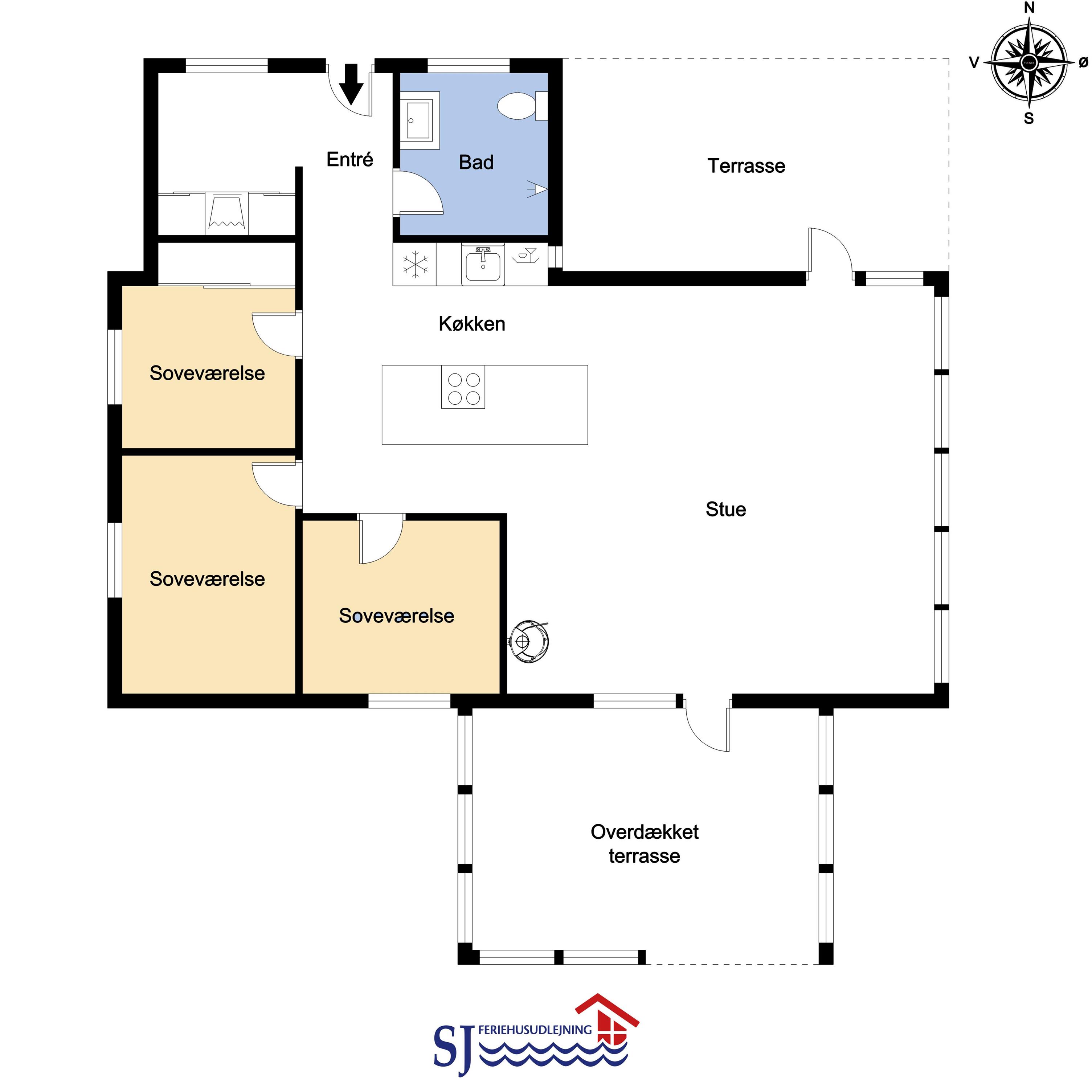 De 86 m2 er rigtigt godt udnyttet. Køkkenhjørne og opholdsstue stue er i samme rum. Stuen er indrettet med lædermøbler, TV med danske og tyske kanaler. Huset råder også over en dejlig brændeovn som sammen med varmepumpen giver en dejlig varme og begge er medvirkende til at spare på forbruget. Fra opholdsstuen er der udgang til overdækket og lukket terrasse/havestue. Det flotte nye køkkenhjørne byder på det man skal bruge. Glaskeramiske kogeplader, indbygningsovn, køle-/fryseskab og opvaskemaskine. 3 soveværelser (1DS, 1S, 1E). Flot badeværelse med toilet, håndvask og bruser. Gangen er indrettet med god skabsplads og her er vaskemaskine. Der er rengøringsvenlige gulve i hele huset. Ikke rygerhus. Max 2 husdyr tilladt.