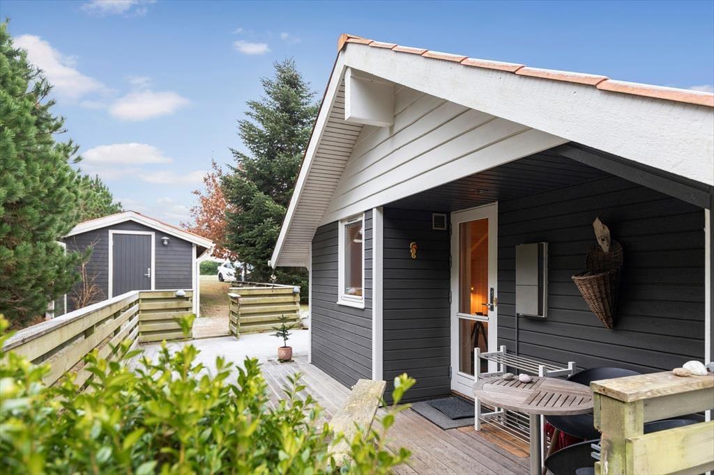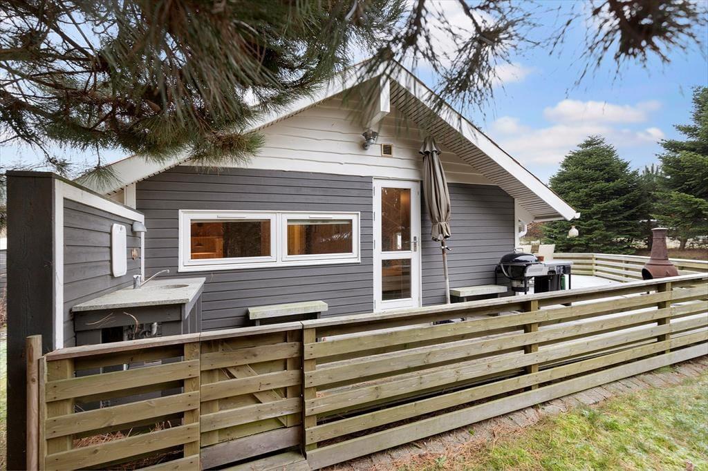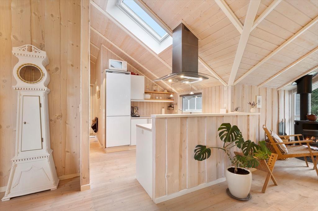 Sommerhus i Grenå Strand, Østjylland, med plads til 6 voksne og 4 børn. Der er en hyggelig indretning med bl.a. brændeovn, og du finder desuden vaskemaskine, opvaskemaskine og tørretumbler i boligen.