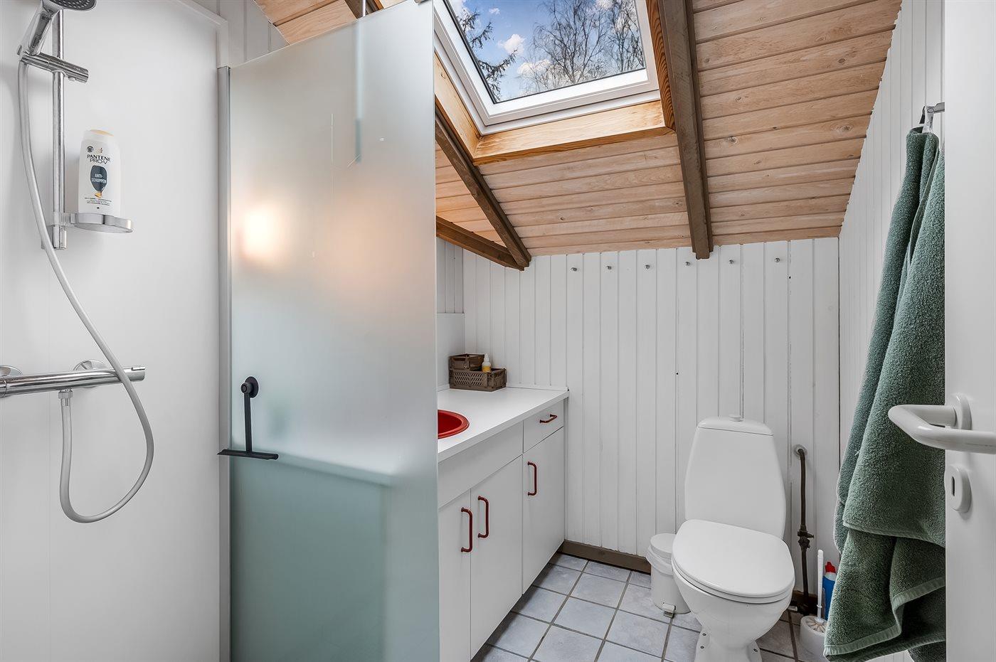 Der er 1 badeværelse med bruseniche og 1 toilet.