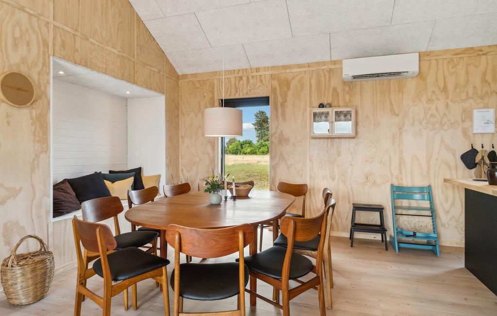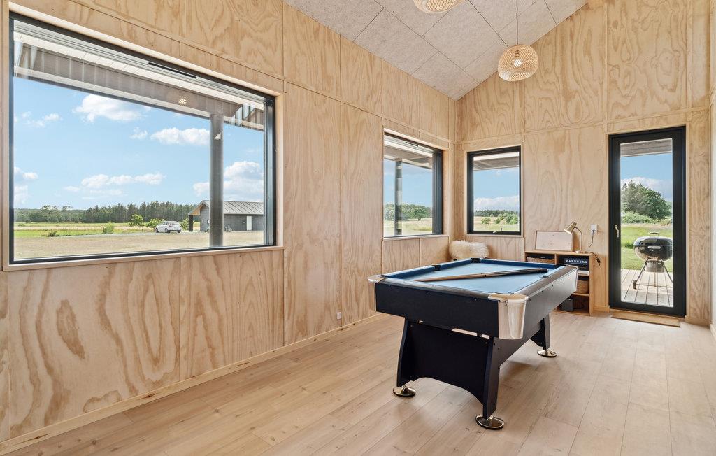 Der er lagt op til en skøn ferie i dette moderne feriehus, som har flotte kvalitetsløsninger og er oplagt til to familier, der holder ferie sammen. Indenfor kan I samles omkring det runde spisebord og nyde hyggeaftener med god mad tilberedt sammen i det store, veludstyrede køkken. Det store åbne opholdsrum med loft til kip fungerer som et centralt samlingspunkt for familien, og mens nogle nyder aftenerne med et glas vin og et spil kort, kan andre udfordre hinanden i aktivitetsrummet med både bordtennis- og billardbord. De fire regulære værelser er godt fordelt rundt i huset, så nogle kan gå til ro, mens andre bliver længe oppe. Den store terrasse snor sig hele vejen rundt om huset, så I kan følge solen eller finde skygge. Her kan I grille, solbade og bare slappe af, mens børnene leger på græsplænen. Gjerrild Nordstrand kan nå til fods eller på cykel og indbyder til skønne badedage.