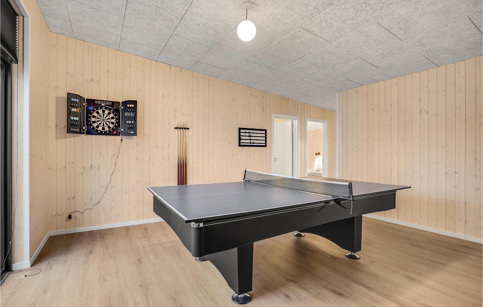 Skal I holde ferie med den udvidede familie eller jeres gode venner og deres børn? Så får I gode rammer i dette store, skønne sommerhus. Her kan I se frem til gode faciliteter og hygge jer med madlavning, brætspil og gode bøger, når I vender hjem efter en dag med masser af oplevelser. Hvis I trænger til at komme op at stå, kan I tage en rask dyst i aktivitetsrummet, hvor der er bordtennis, billard og dart.