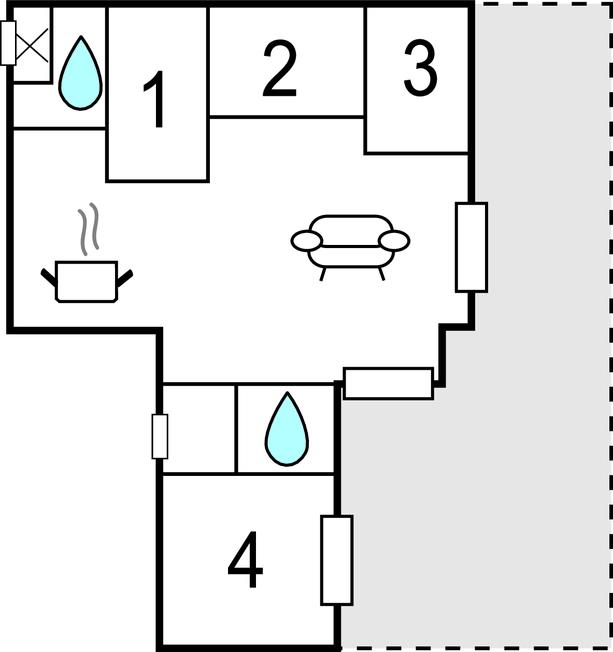 Badeværelse 3m2 (nr. 1) - WC. Varmt og koldt vand. Bruser