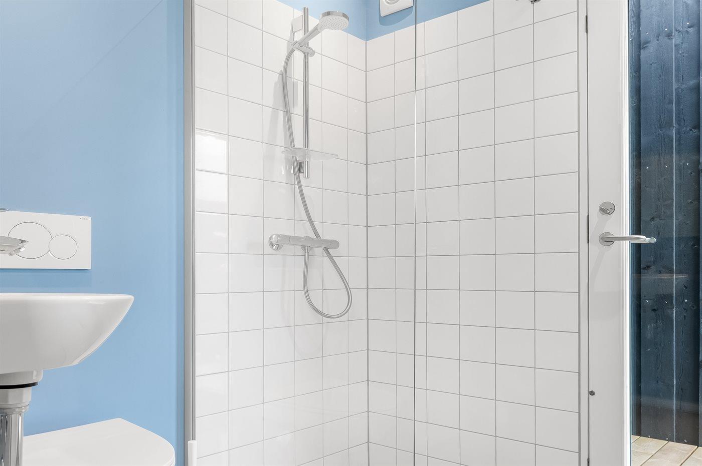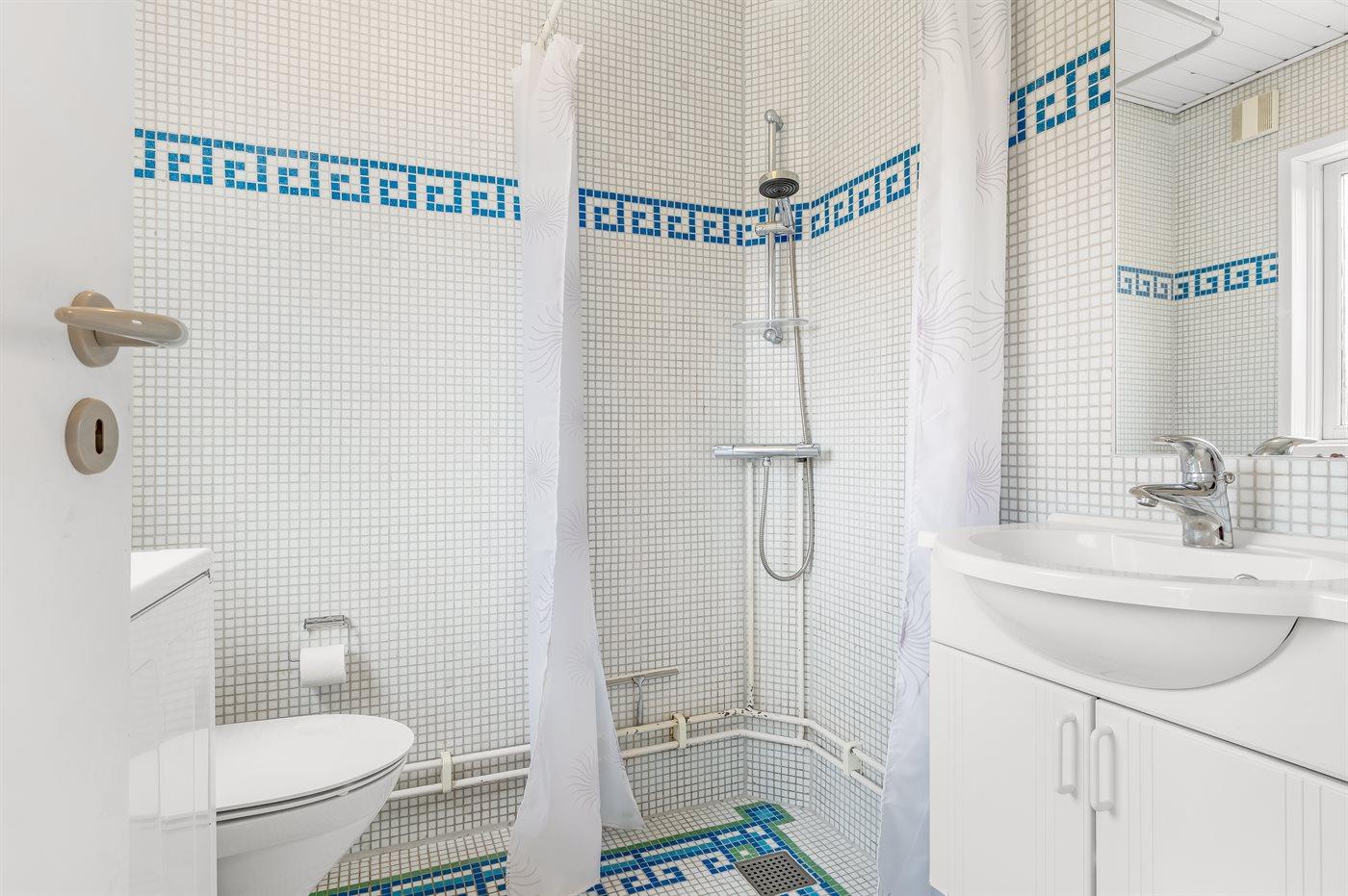 Der er 2 badeværelser med bruseniche og 2 toiletter. Der er gulvvarme på 1 badeværelse.