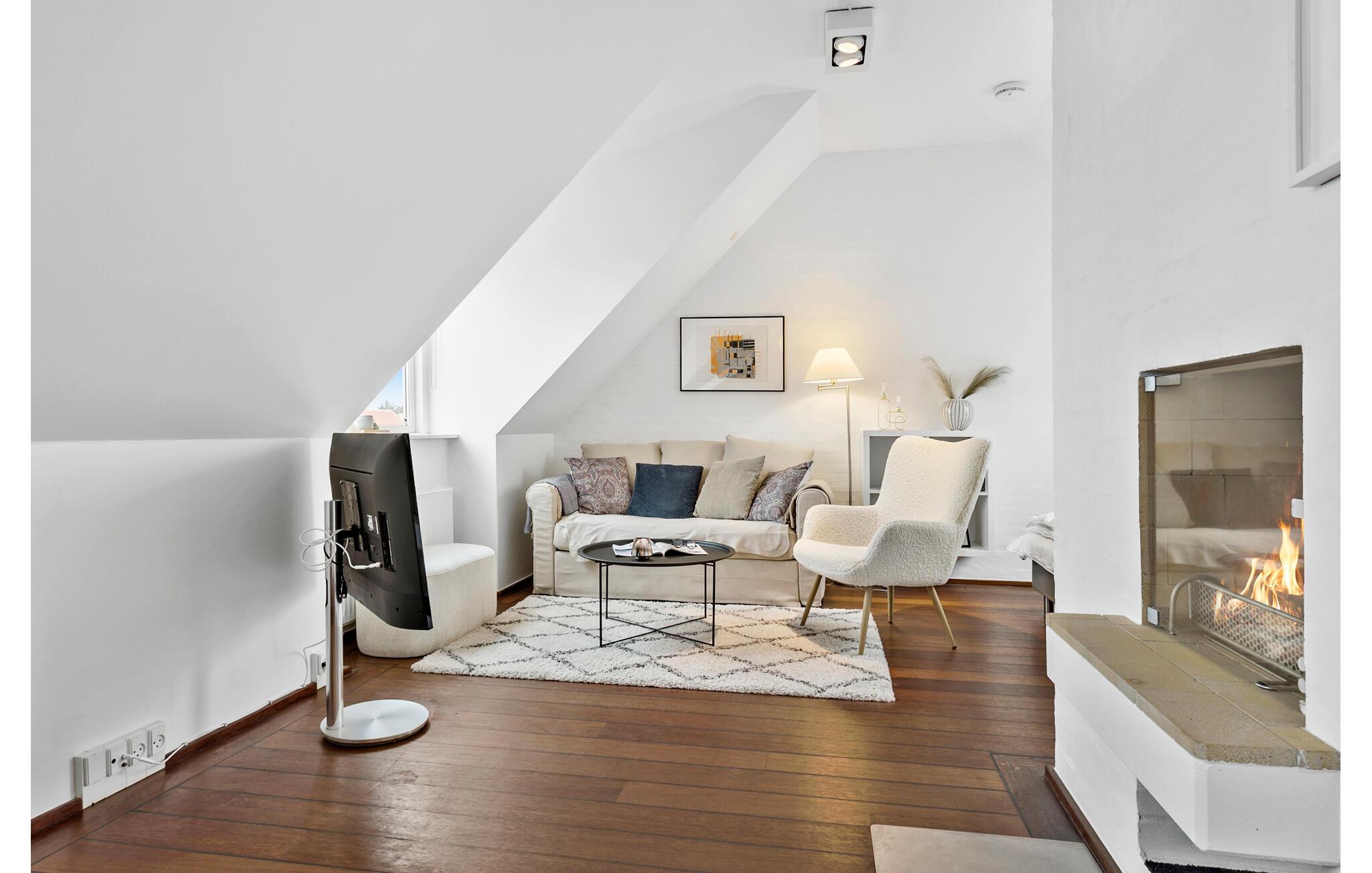 Indretningen fremtræder lyst og lækkert med gode møbler og faciliteter, der giver jer alt, I behøver for at komme ned i tempo. Tag jer god tid til madlavningen i køkkenet med et glas vin, inden I finder jer godt til rette i sofaen med hver jeres bog eller en god film. For en ekstra hyggelig stemning kan I tænde op i brændeovnen og nyde dens varme og knitren, mens I lægger planer for de kommende dage. Soveafdelingen er forbundet med stuen.