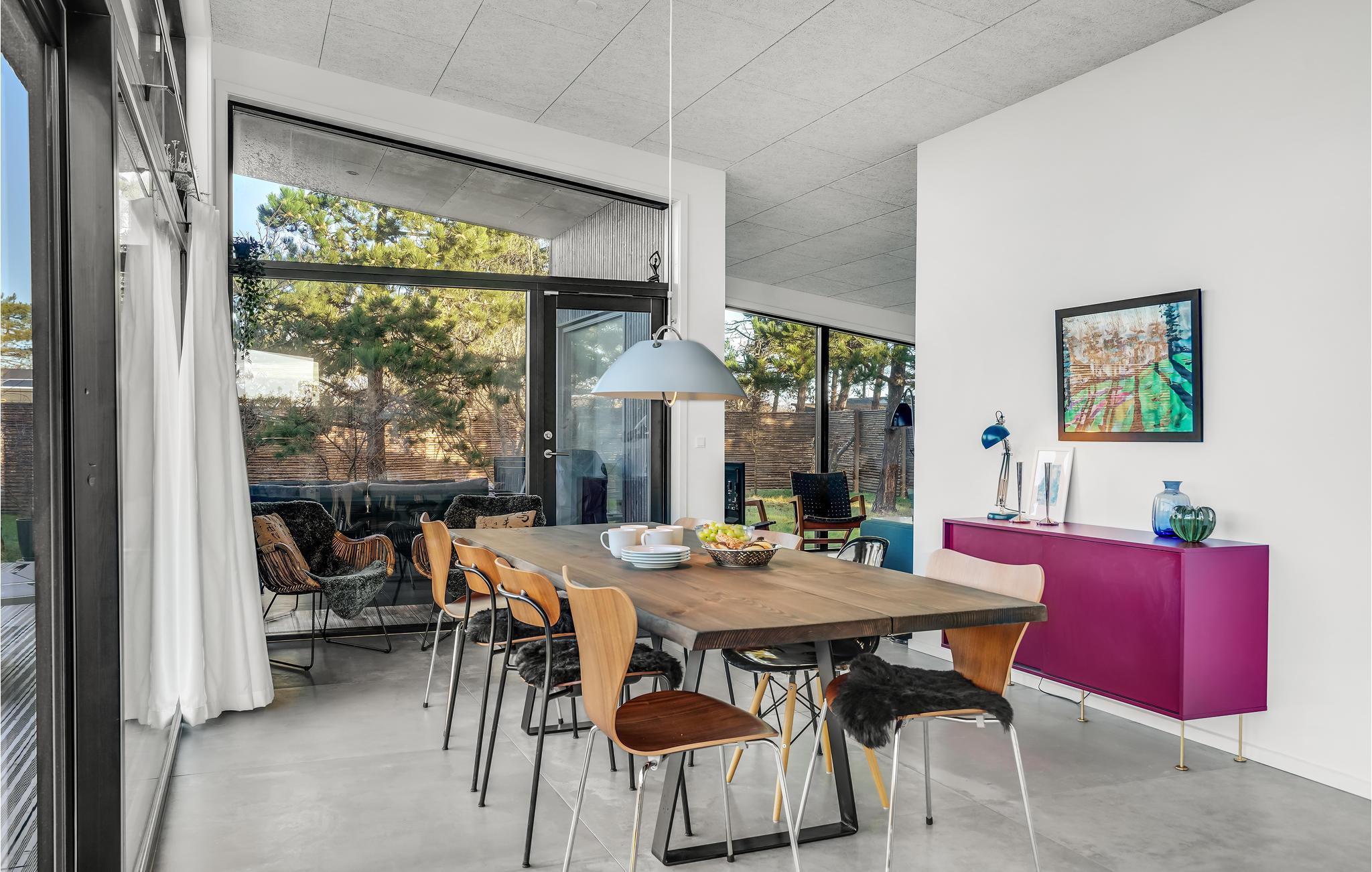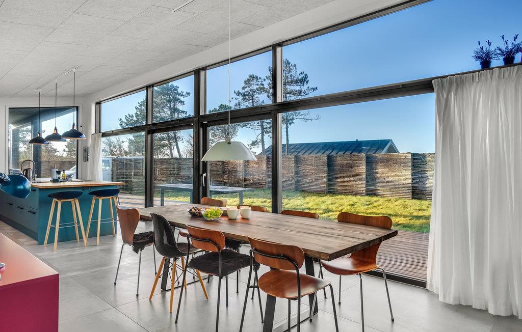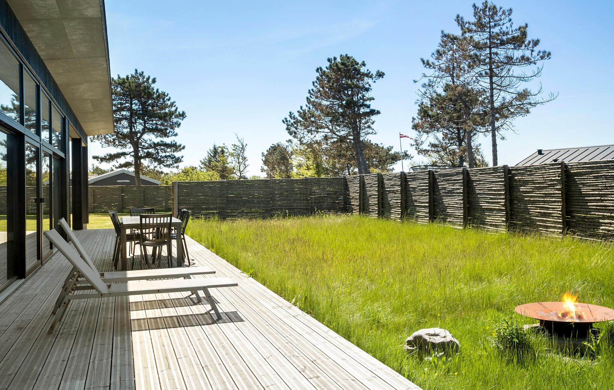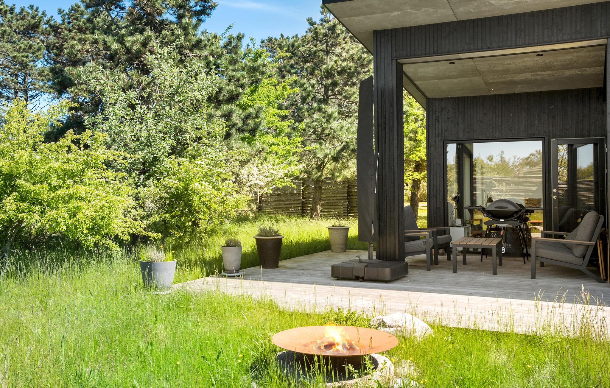 Glæd jer til en fantastisk ferie i dette velindrettede og rummelige feriehus, hvor I straks vil føle jer godt tilpas med hele familien. Føl jer hjemme og nyd det åbne opholdsrum, hvor sofaerne indbyder til hygge og afslapning. Det attraktive og stilfulde køkken er det ideelle sted at lave mad om aftenen med udsigt over haven. Start dagen med at træde direkte fra køkkenet ud på terrassen med en dampende kop kaffe. Terrassen er også et oplagt sted at samles om feriens måltider, når vejret tillader det. Glæd jer til mange skønne timer med grillmiddage i den friske luft. I kan også slappe af på liggestolene eller ved bålfadet om aftenen. Jeres børn vil elske at bage snobrød og riste skumfiduser, når de er færdige med at lege i haven og hoppe på trampolinen.