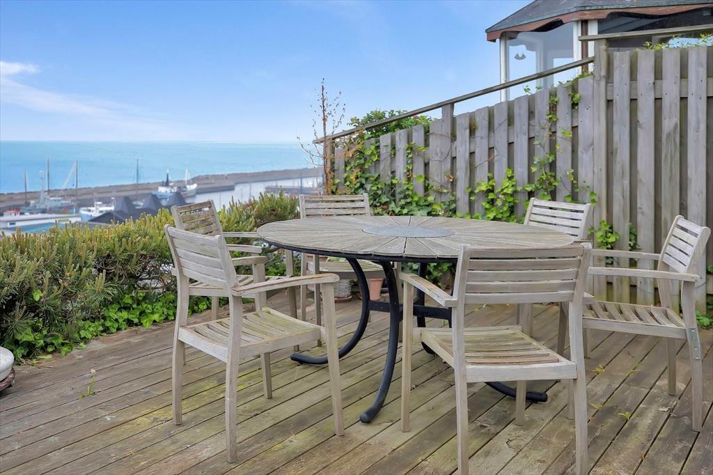 Her kan du nyde sommerferien i et lyst og indbydende byhus. Du alle muligheder for bare at slappe af og nyde livet. Beliggenheden er perfekt med direkte udsigt til den lille havn og havet.