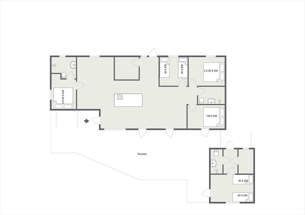 Indendørs mødes du af den særdeles gode stemning, der hurtigt vil få dig ned i gear, så du bare kan nyde, at nu er det blevet tid til ferie.I den skønne stue er der mulighed for at dase i sofaarrangementet eller hygge med et brætspil ved spisebordet. Her er et stort og dejligt åbent køkken, hvor I kan hjælpes med at tilberede en god frokost. I selve huset er der to skønne badeværelser med brus og fire soveværelser, alle med god skabsplads. I det tilhørende anneks er der også et badeværelse med brus, en lækker sauna og et dejligt soveværelse. Alt er nyt og særdeles indbydende.