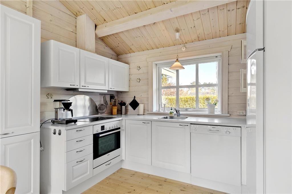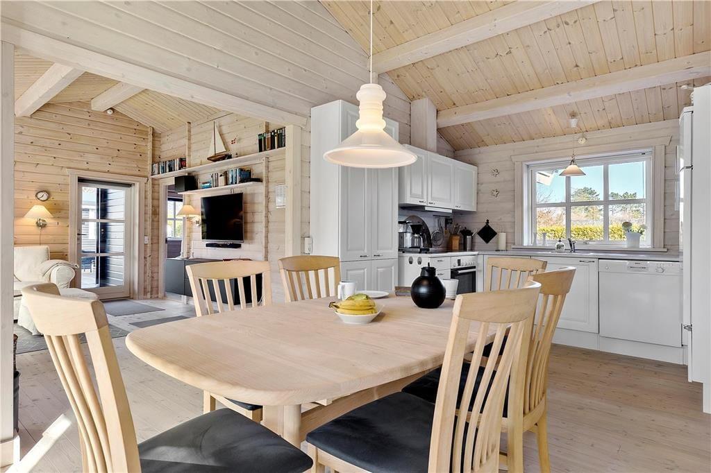 Lyst og lækkert feriehus, her føler du dig straks hjemme. Dejlig stue med brændeovn. Fra stuen er der adgang ud til den overdækkede terrasse. Hyggeligt køkken med god arbejdsplads, fra køkkenet er der adgang til den åbne del af terrassen. 3 dejlige værelser med god skabsplads. Velindrettet badeværelse med brus. Samt anneks med to sovepladser. På den store terrasse opdelt i 3 afdelinger er der masser af hyggelige kroge hvor du altid kan finde læ og en plads i solen.