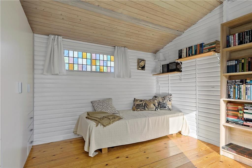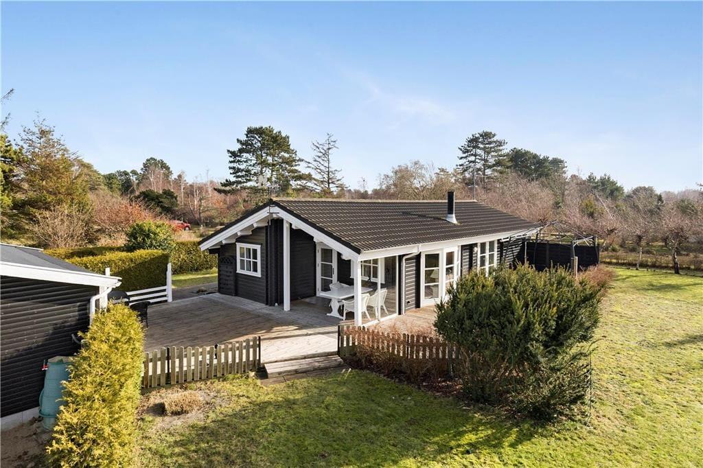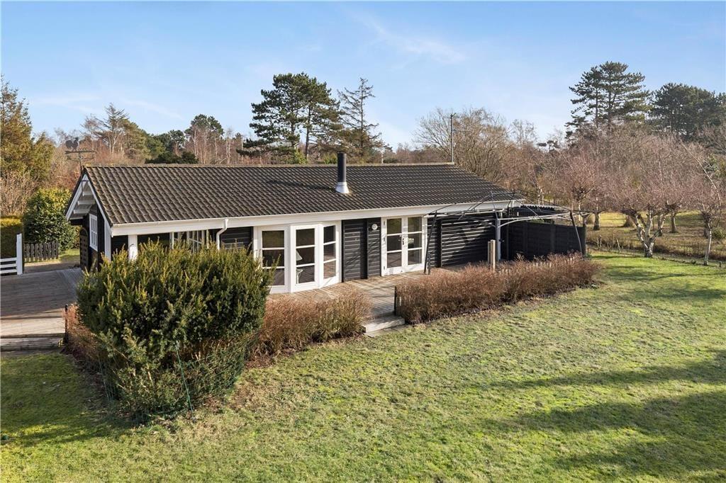 Skønt sommerhus beliggende på en ugenert grund i et roligt område. Kun 300 m fra stranden.