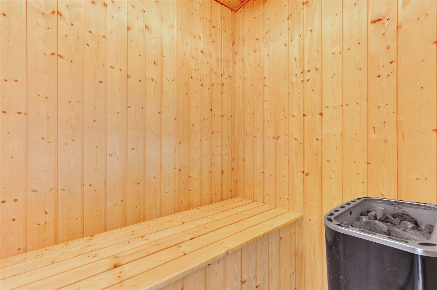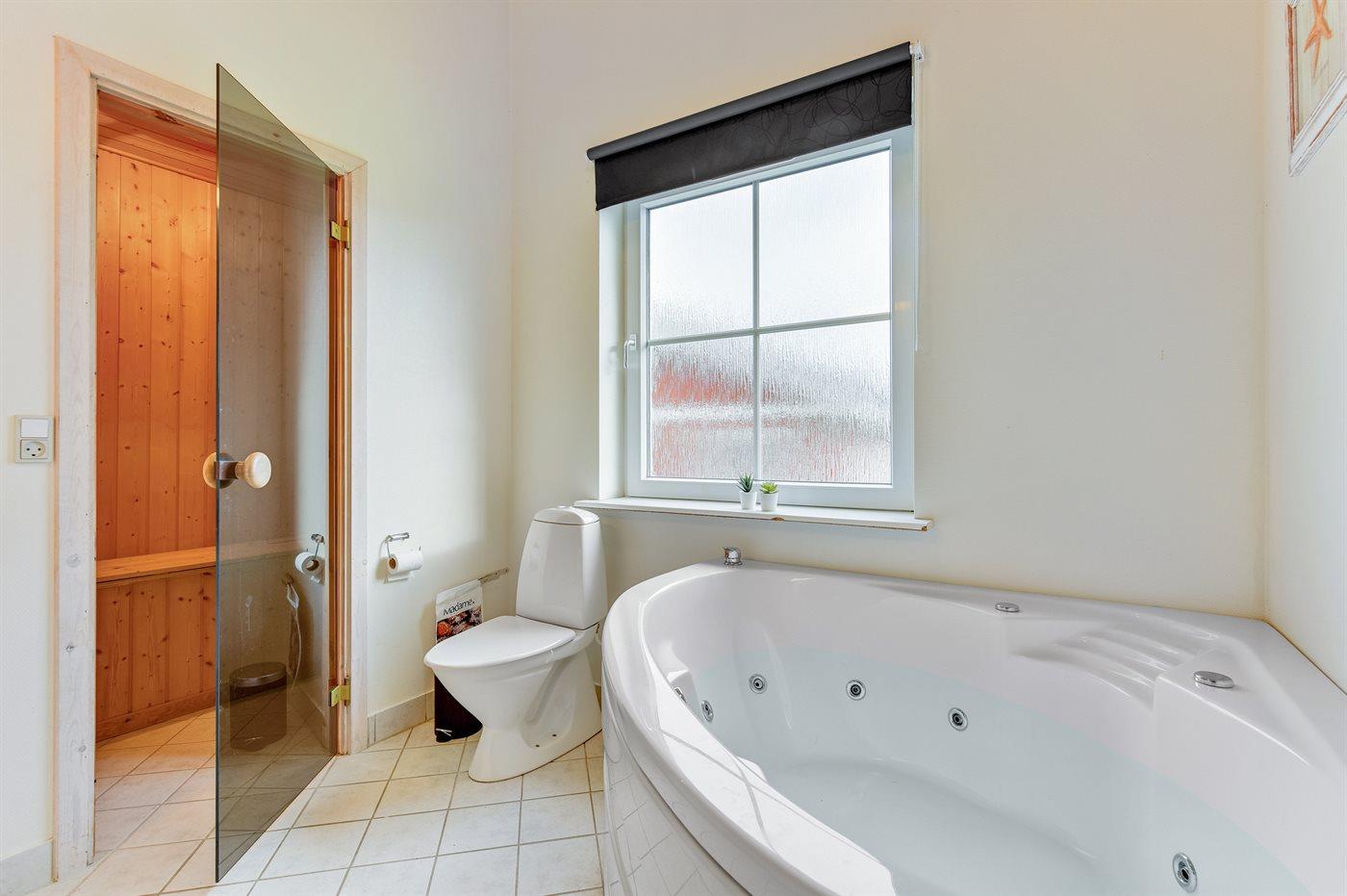 Der er 1 badeværelse med bruseniche og 2 toiletter, heraf 1 gæstetoilet. Der er gulvvarme på 1 badeværelse. Der er gulvvarme på gæstetoilettet. I saunaen er der mulighed for afslapning.
