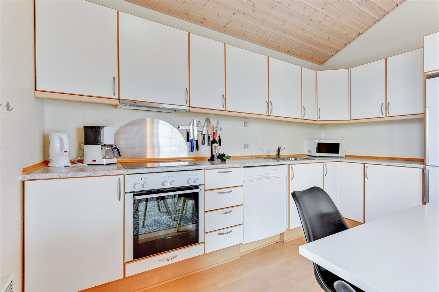 Køkkenet er udstyret med 1 køleskab. Der er 4 keramiske kogeplader, varmluftovn, mikrobølgeovn samt opvaskemaskine.