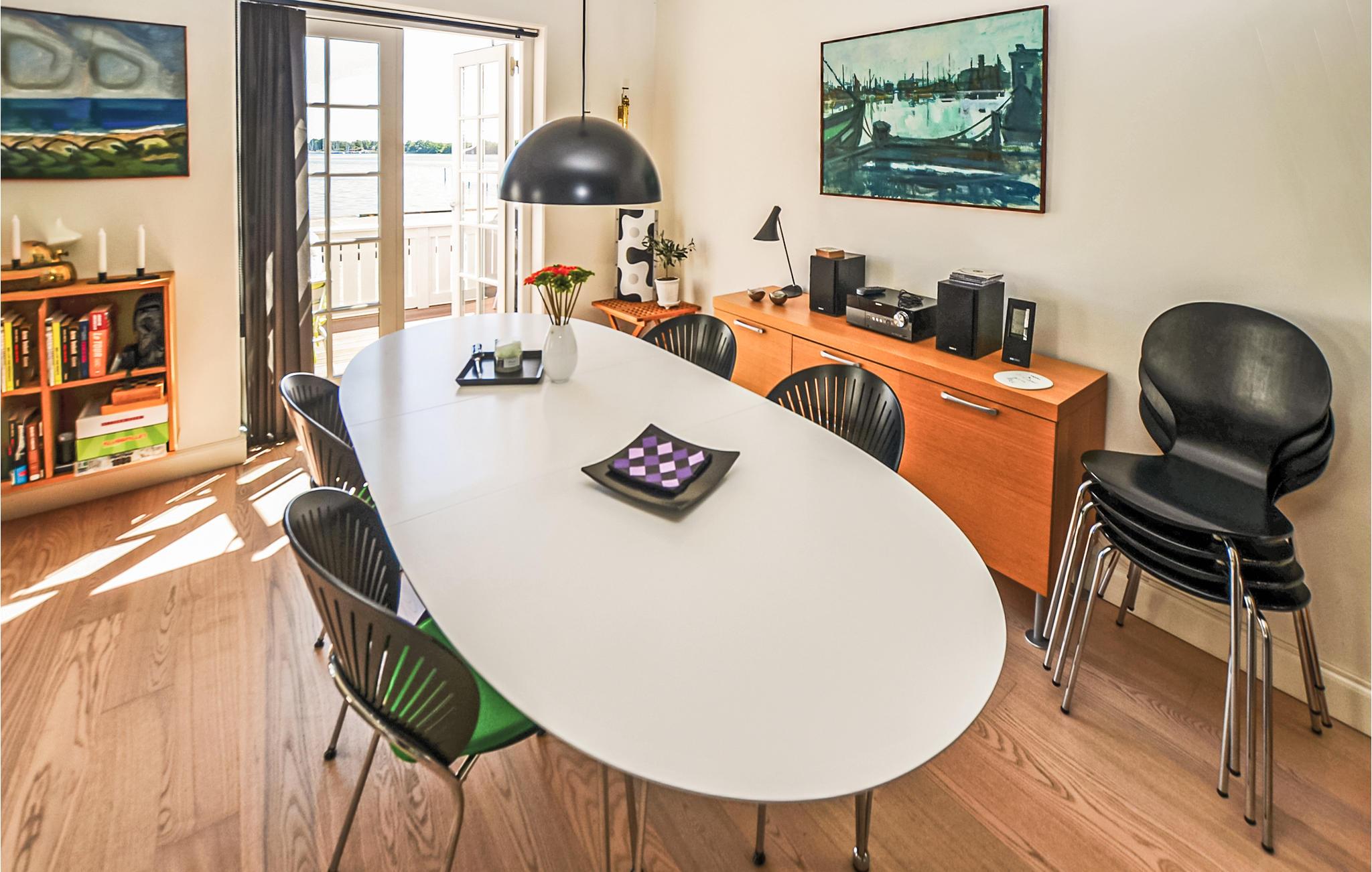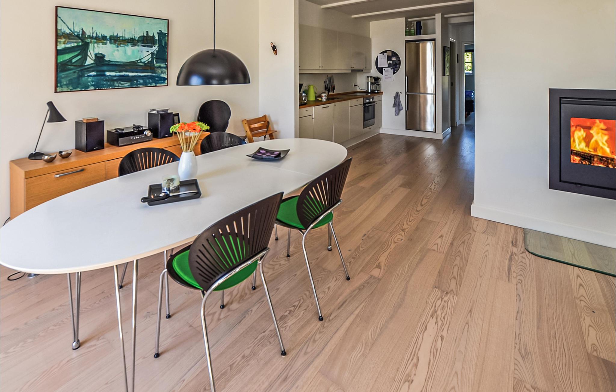 Denne lejlighed er beliggende i stueetagen af et spændende byggeri på Gråsten Havn. Fra lejligheden er der en fantastisk udsigt over fjorden og den lille vig med badestrand. Det åbne og veludstyrede køkken ligger i forbindelse med spiseafdelingen og opholdsstuen. I stuen er der en brændeovn, som I kan benytte på de kølige dage og aftener. I det store badeværelse er der både spabad og sauna. Overalt i lejligheden kan I benytte den trådløse internetforbindelse.