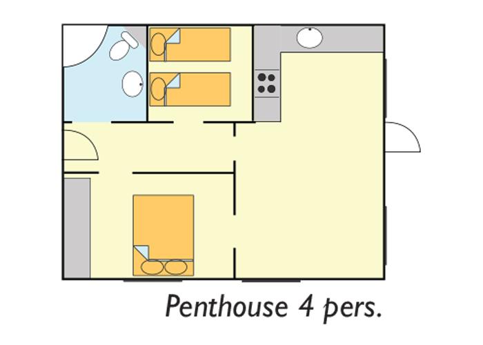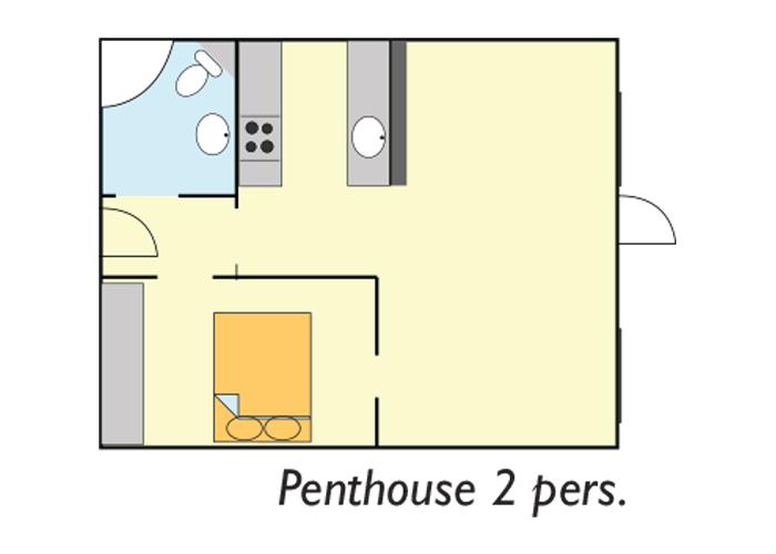 I centerbygningen har vi elegante penthouselejligheder på ca. 68 m² til 2–4 personer. Lejlighederne har stor møbleret træterrasse med udsigt til Enjoys marina og det smukke Nybøl Nor.