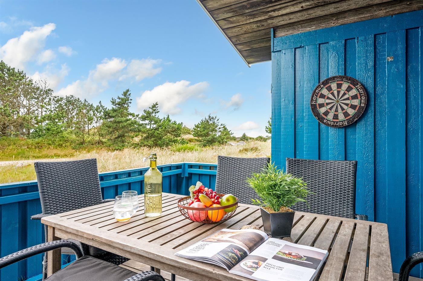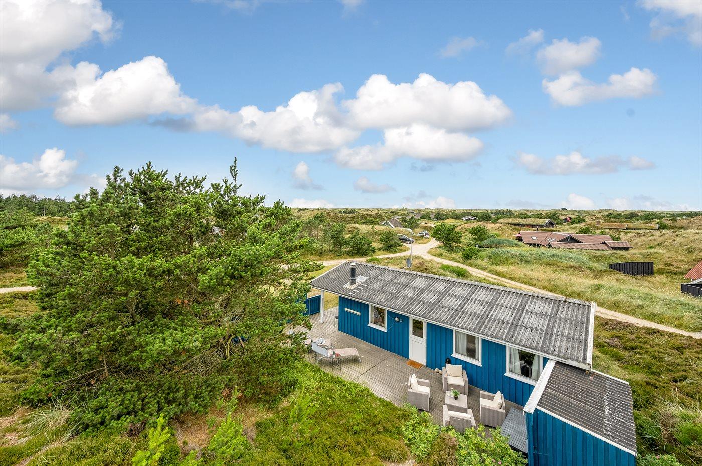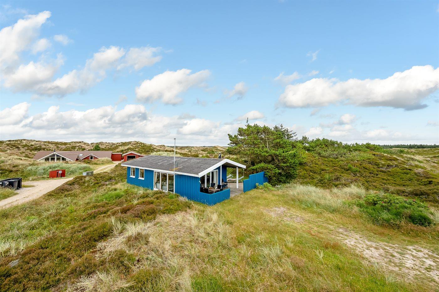 Hyggeligt feriehus i sommerhusområdet som ligger i klitterne på typisk naturgrund med højt græs. Der findes grill og havemøbler til de varme sommerdage. Fra stuen, som er hyggelig indrettet er der adgang til den overdækket terrasse.