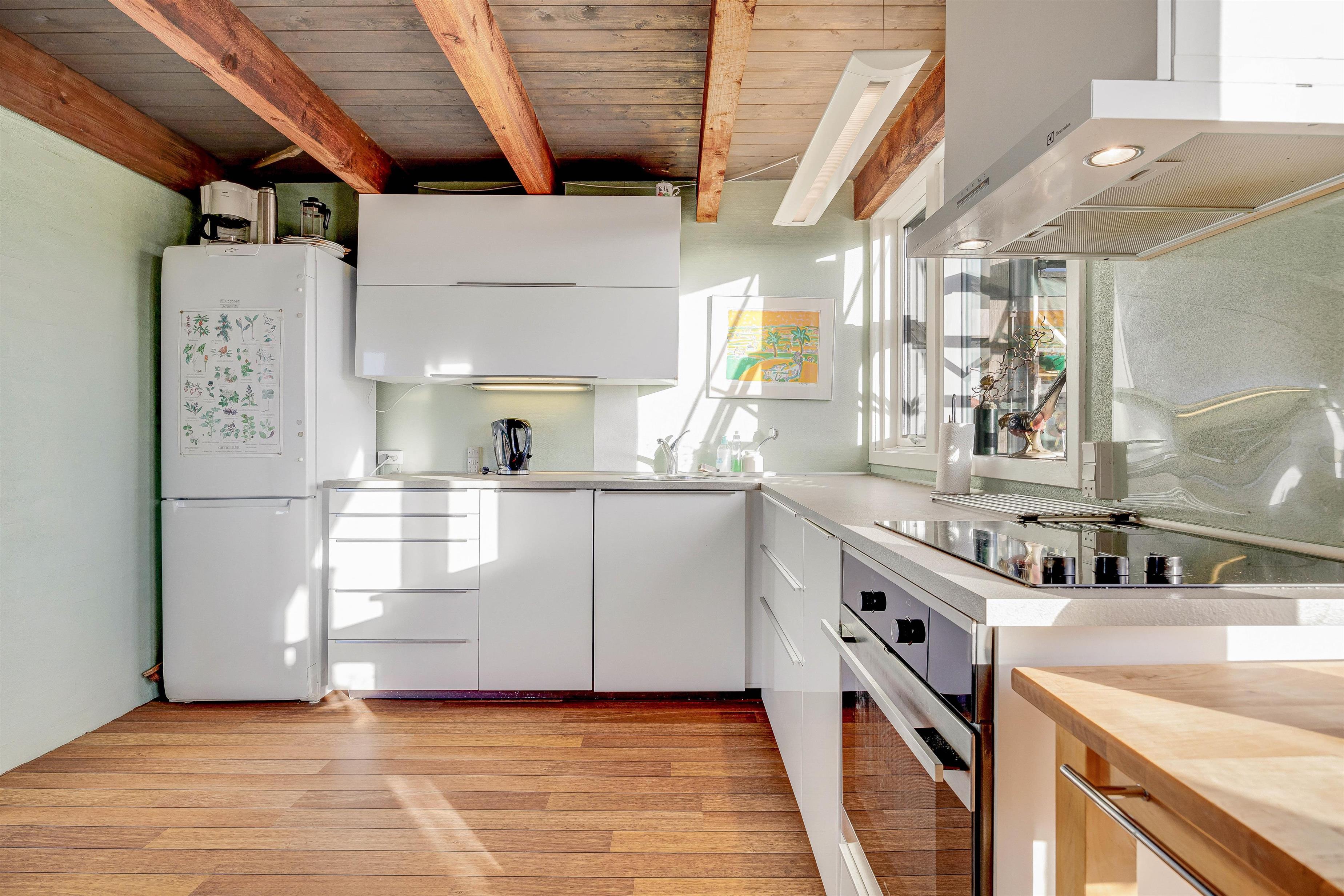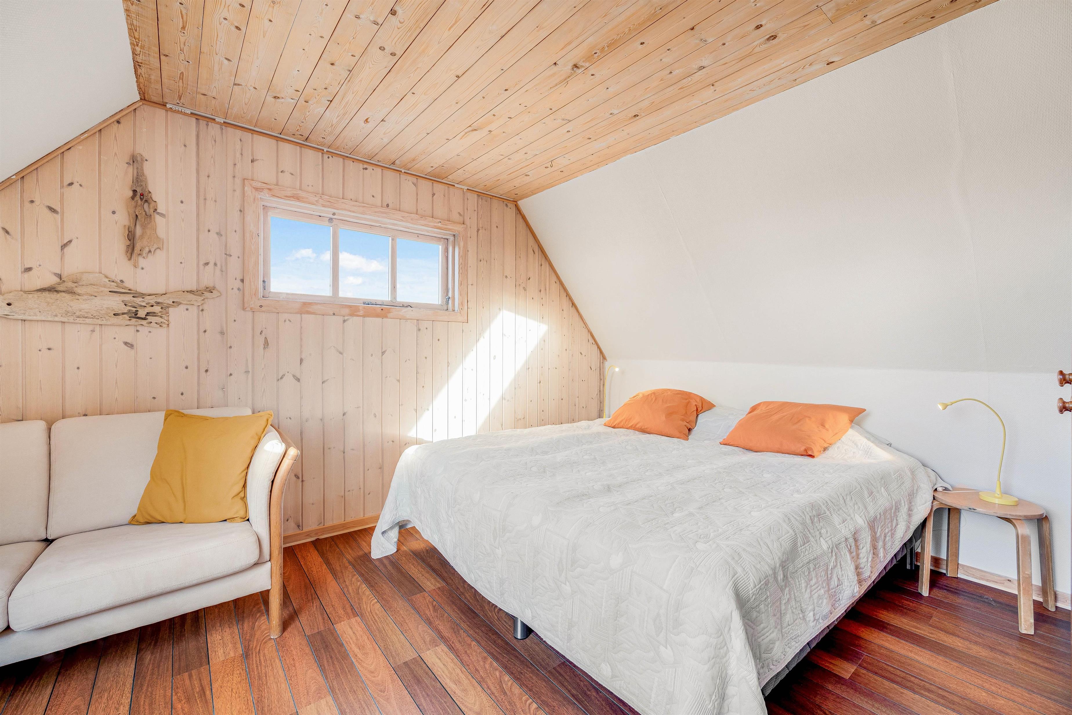 Det lille 2 personers-sommerhus med træpaneler og synlige bjælker har i 2022 har gennemgået en let renovering, og indretningen kombinerer moderne komfort med klassisk sommerhusstil. ”Hygge” er det helt rigtige ord at bruge, og der er ingen tvivl om, at sommerhusets omgivelser skaber rammerne for en hyggelig ferie langt væk fra den travle hverdag – hvor du kan tilbringe kvalitetstid med den, du har mest kær.
