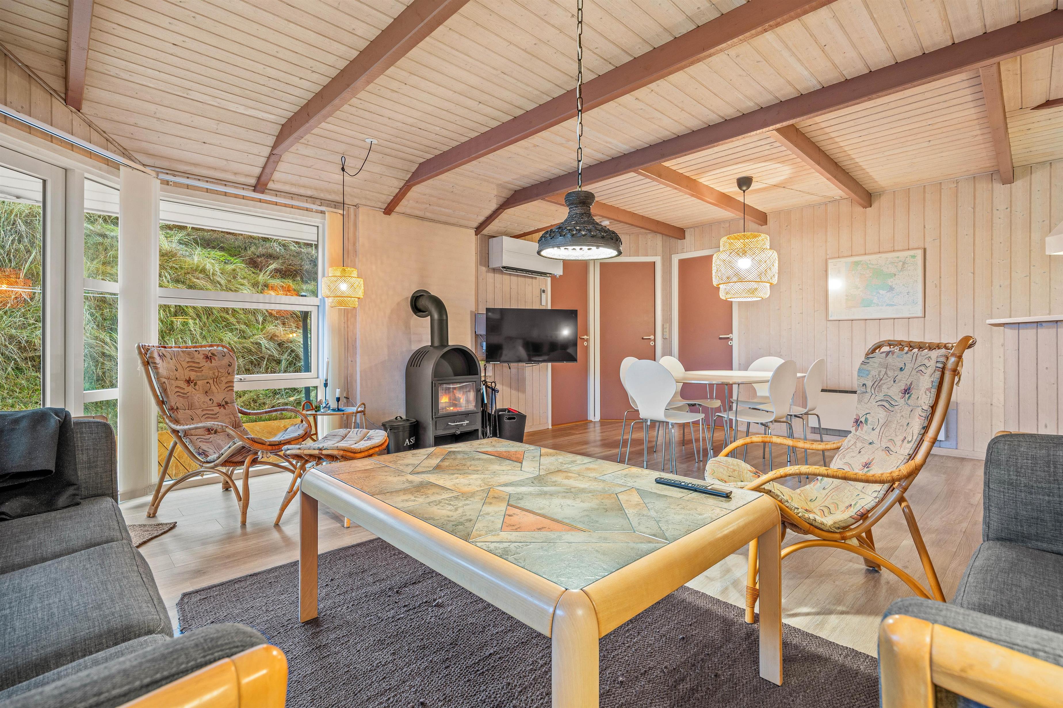 I alrummet er der også en brændeovn, der med sin knitren i baggrunden og varme er med til at fuldende feriestemningen. Udover brændeovnen er der også en energivenlig varmepumpe i sommerhuset, der sørger for, at I har et godt indeklima på ferien.
