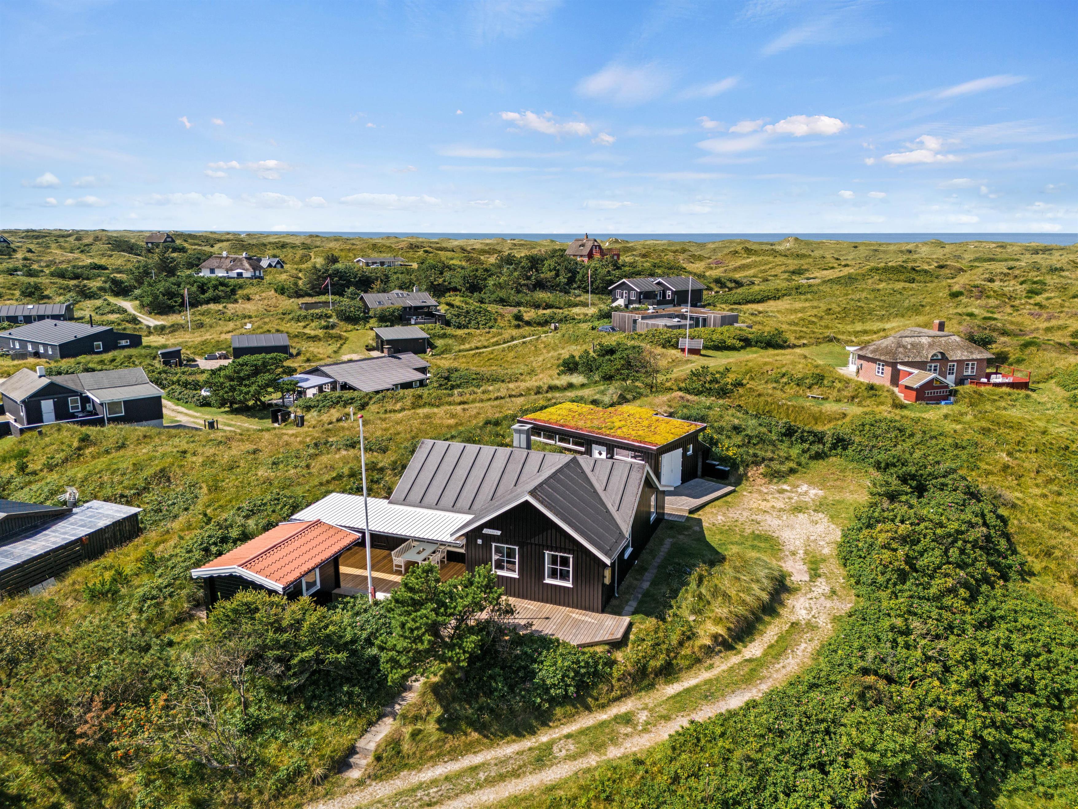 På det rummelige, overdækkede terrasseområde kan I kan nyde opholdet i naturen i al slags vejr. De kuperede klitter giver god afskærmning, og her kan I ugenert nyde jeres ferie.