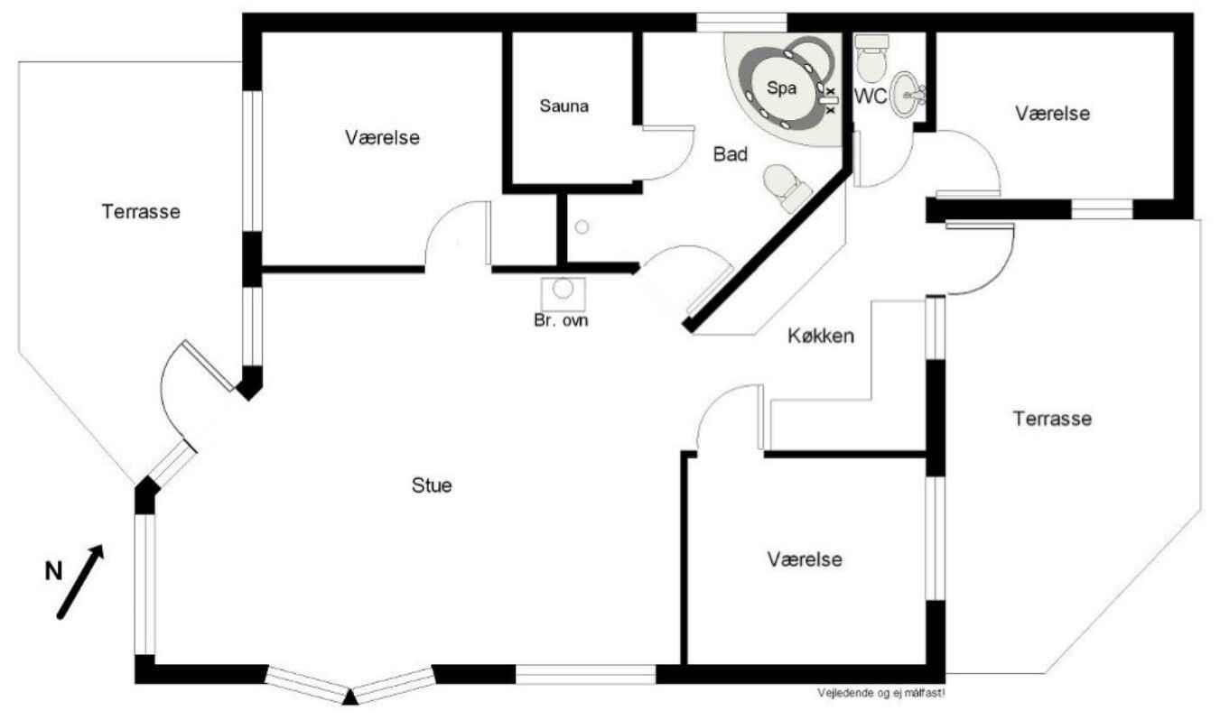 Dette lyse, stilrene og velindrettede fritidshus fra 2006 på 80 m² er perfekt til både afslapning og samvær hele året grundet helårsisolering. Huset har en stor, højloftet opholdsstue med imponerende vinduespartier, der giver et rigt naturligt lysindfald. Det åbne køkken skaber en hyggelig forbindelse til stuen, og indretningen med hvidtonede trævægge, lyse lofter og trægulve giver en klassisk sommerhusstemning. Der er tre soveværelser, alle adskilt af et eller flere rum/vægge, et badeværelse med både spa og sauna samt et ekstra gæstetoilet – ideelt for både familie og gæster. Til de aktive er der fodboldmål og cykler til rådighed, så ferien kan kombineres med ture og leg. Udenfor finder du både en sydvendt, en øst- og en vestvendt terrasse på en solrig og ugeneret grund, anlagt med nem græsplæne, hvor du kan nyde solen fra morgen til aften. Her er perfekte rammer for alt fra stille morgenkaffe til hyggelige grillmiddage. Et fritidshus med komfort og charme – klar til at danne rammen om mange gode ferieminder. Bemærk: Kæledyr og fester er ikke tilladt, og huset udlejes ikke til håndværkere. Obs, udlejes ikke til erhversmæssigt brug.