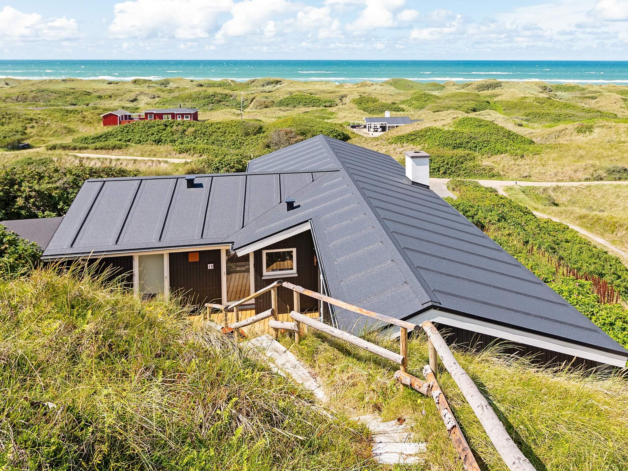 Sommerhus med spabad beliggende på toppen af stor, kuperet klitgrund med flot panorama havudsigt ved Grønhøj i et yderst attraktivt område, der indbyder til traveture i klitterne med et utal af strandstier samt strandaktivitet ved Vesterhavet. Sommerhuset indeholder åbent køkken, spisestue samt stue med brændeovn. Der er to badeværelser, hvoraf det ene er med spabad. Tre værelser med dobbeltsenge Udenfor findes dejlig terrasse med grill. Selvom huset ligger højtplaceret, ligger parkeringspladsen ovenfor huset med trapper ned til huset. Huset er derfor ikke velegnet til kørestolsbrugere. Udlejes ikke til ungdomsgrupper.