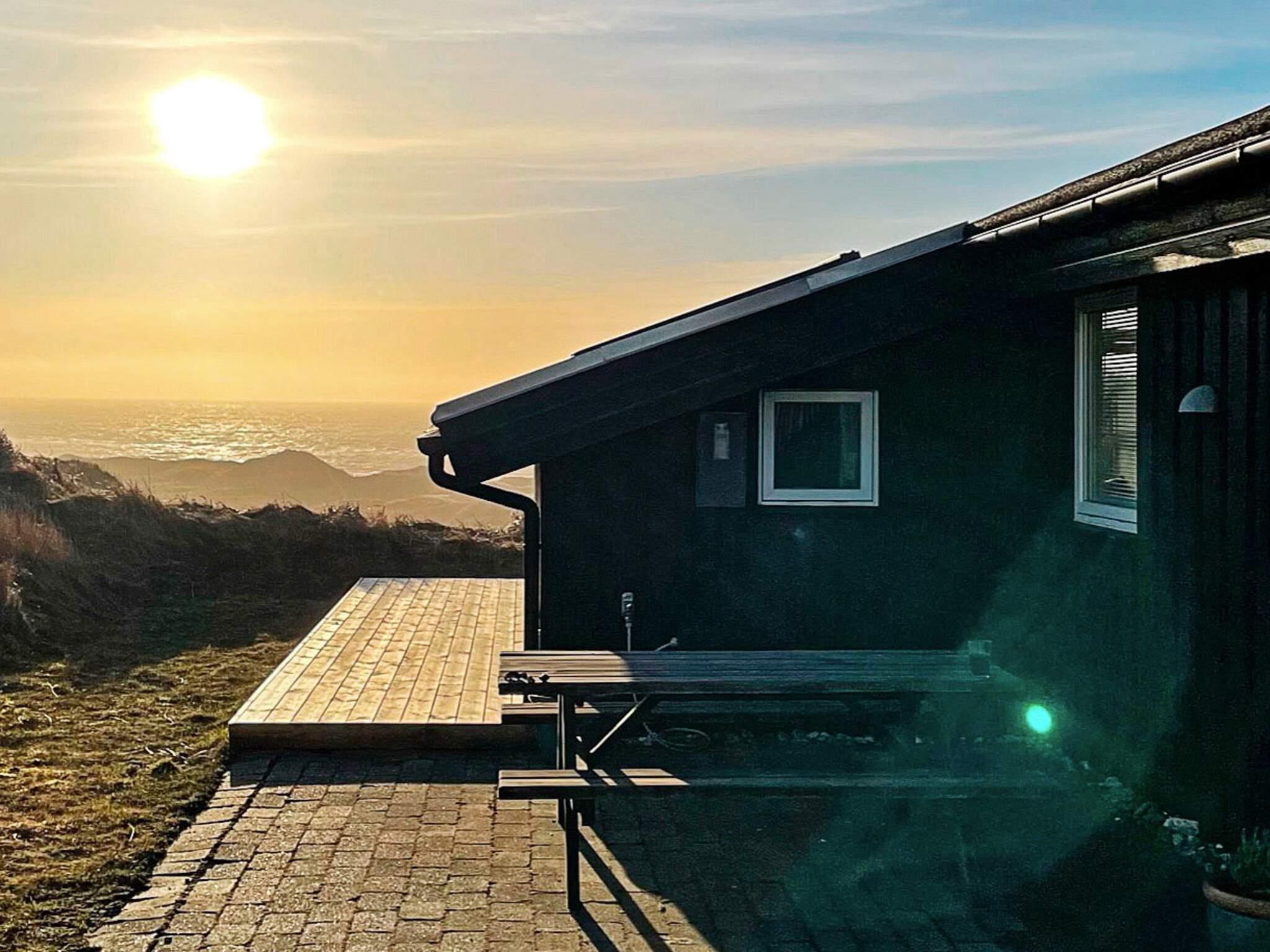 Dette skønne sommerhus, beliggende i Kettrup Bjerge, 38 meter over havets overflade, ligger ugeneret fra naboer og med en fantastisk 180 graders udsigt ud over klitterne og Vesterhavet.