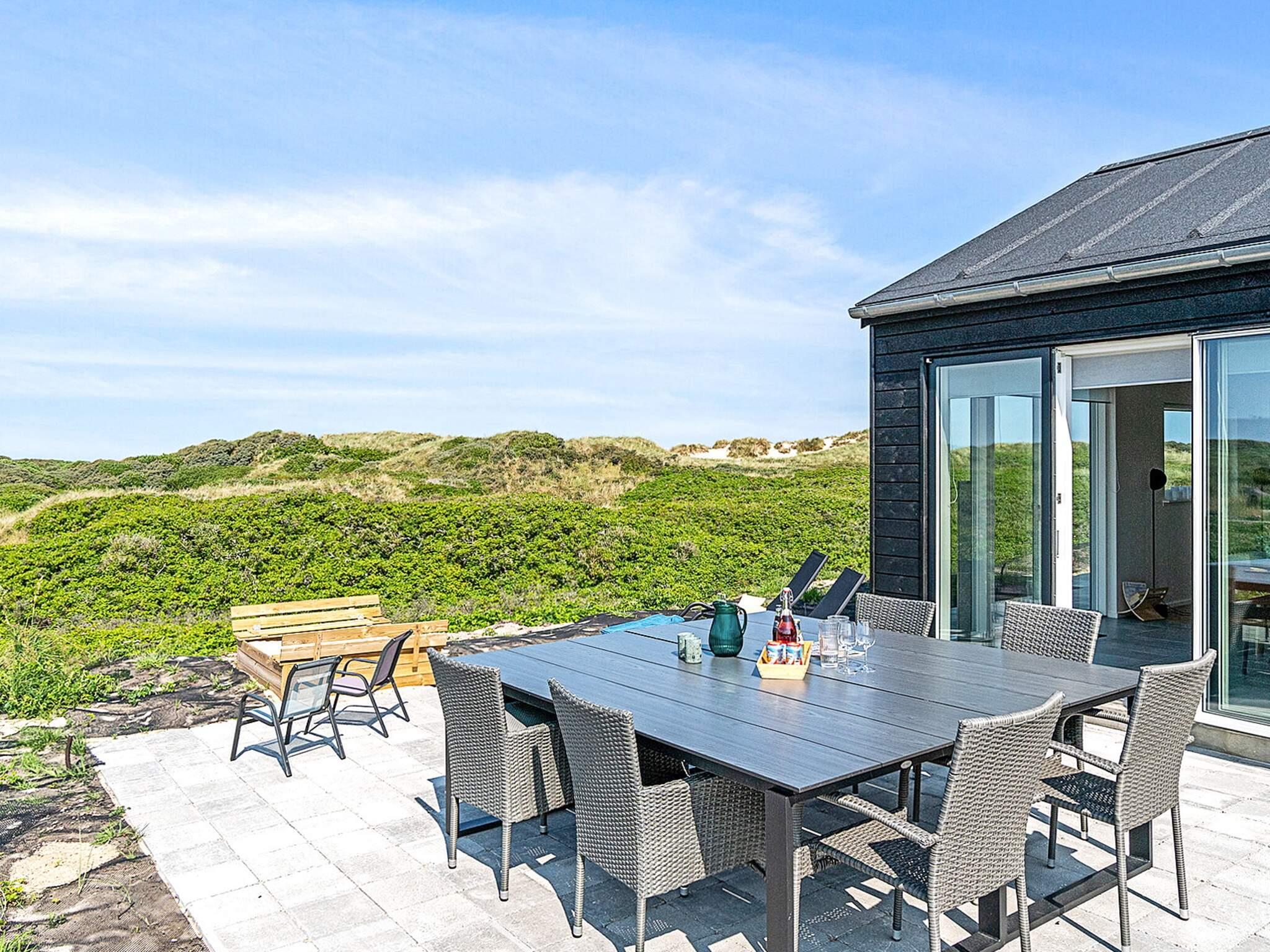 Med til dette luksus sommerhus hører en fantastisk delvis lukket terrasse. Her finder I alle nemt en plads i solen i de gode havemøbler, og om aftenen står grillen klar, så feriekokkene kan slippe madkundskaberne løs.