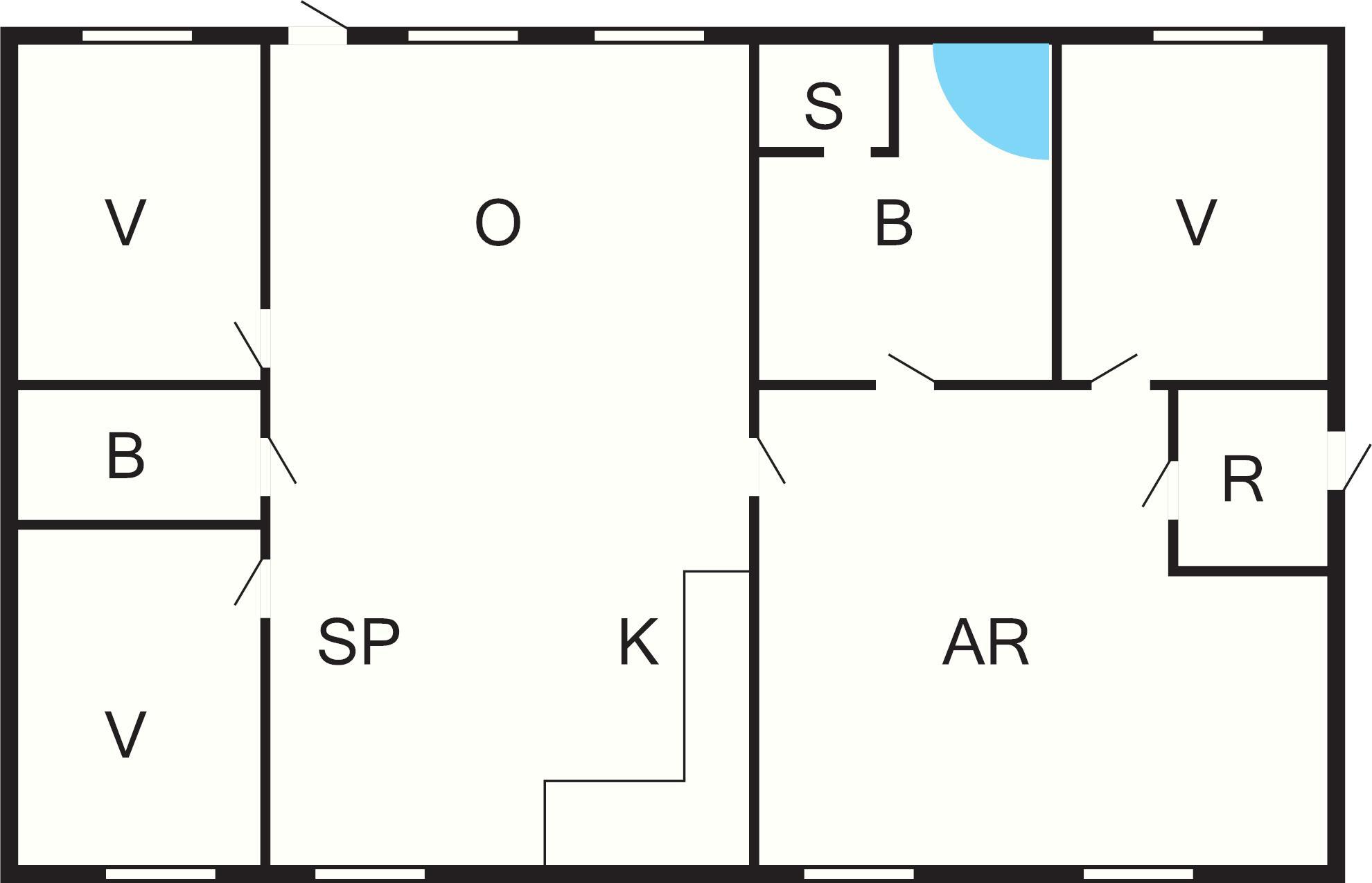 1 Opholdsstue: Brændeovn, radio, tv, høj stol