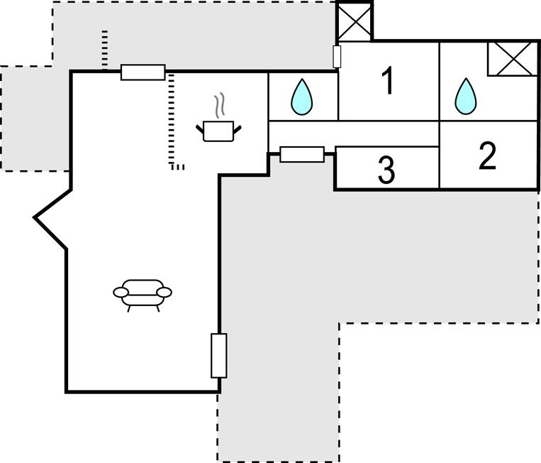 Badeværelse 6m2 (nr. 1) - WC. Varmt og koldt vand. Bruser