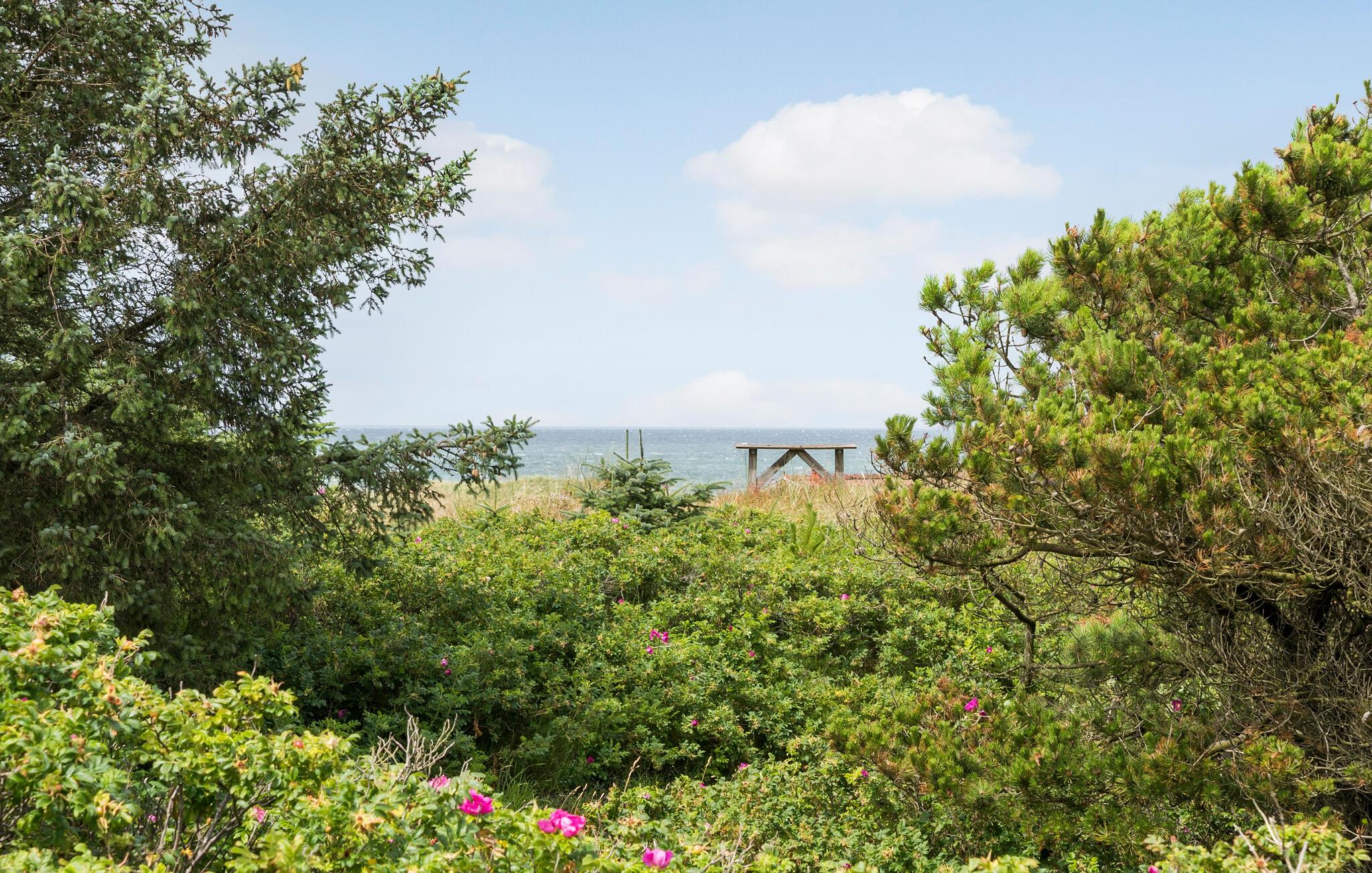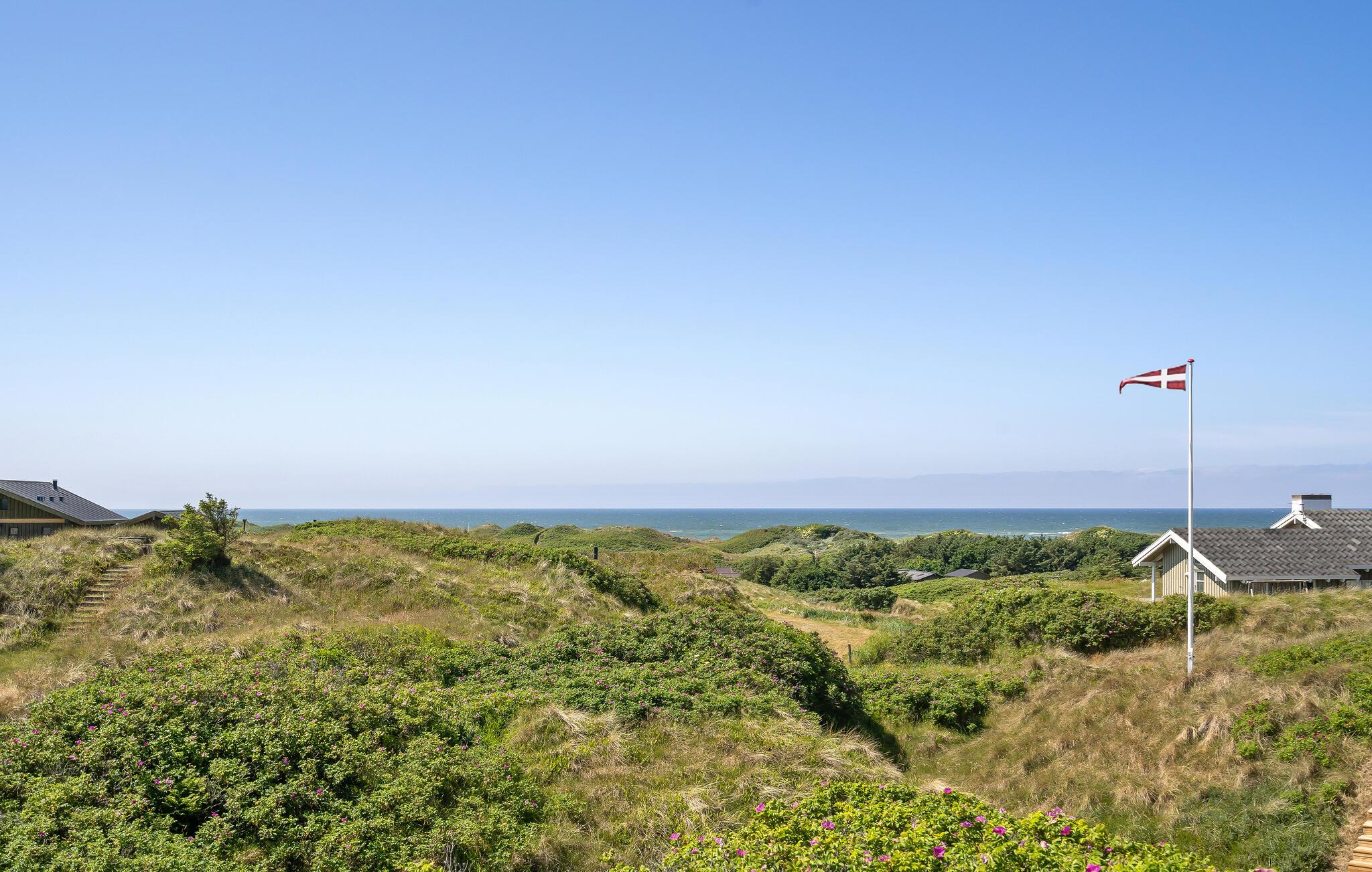 Udendørs finder I store, lækre terrasser mod både øst og vest, så der altid er mulighed for at vælge mellem læ, sol og skygge, når I er udenfor. Nyd morgenkaffen sammen med en fantastisk klit- og havudsigt. En anden terrasse mod nord byder på en udendørs bruser med koldt og varmt vand, så I kan vaske sandet af efter en skøn tur ved stranden.