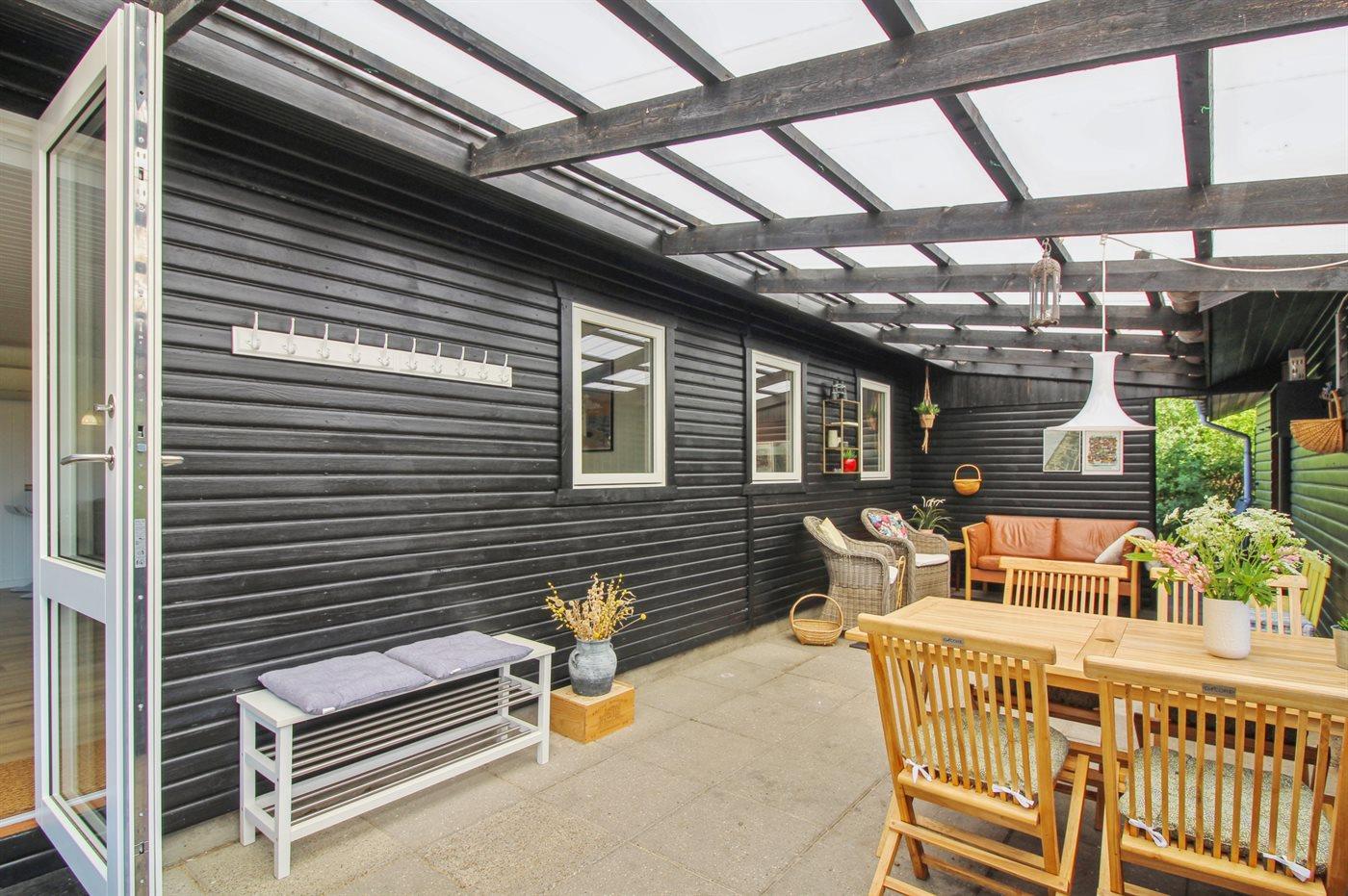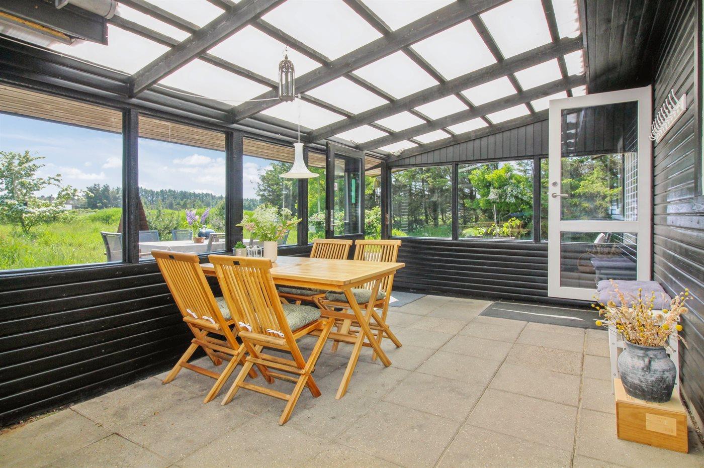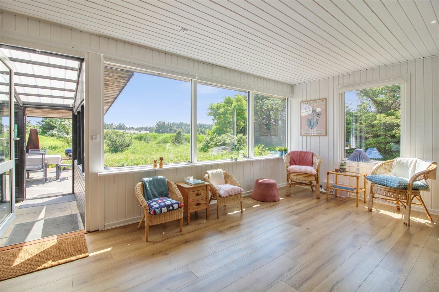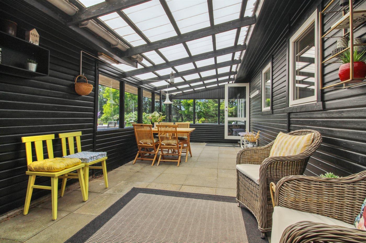 Forlæng sæsonen i den fantastiske udestue eller brug den til at krybe i ly på de lidt koldere dage. Rundt om huset findes der flere skønne terrasser, hvor der er ro og læ - i hvert fald på én af dem.