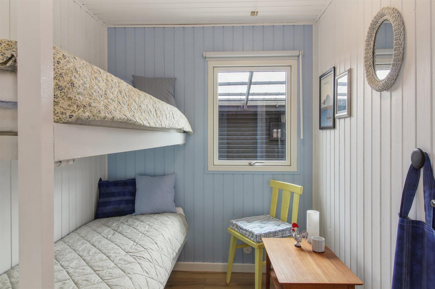 Der er i alt 4 soveværelser. Sovepladserne fordeler sig på: 4 sovepladser i dobbeltsenge. 4 sovepladser i køjesenge. 2 af disse sovepladser befinder sig i anneks.