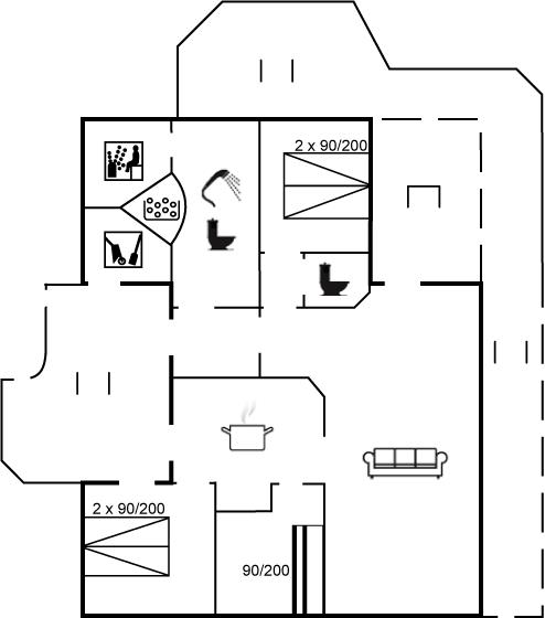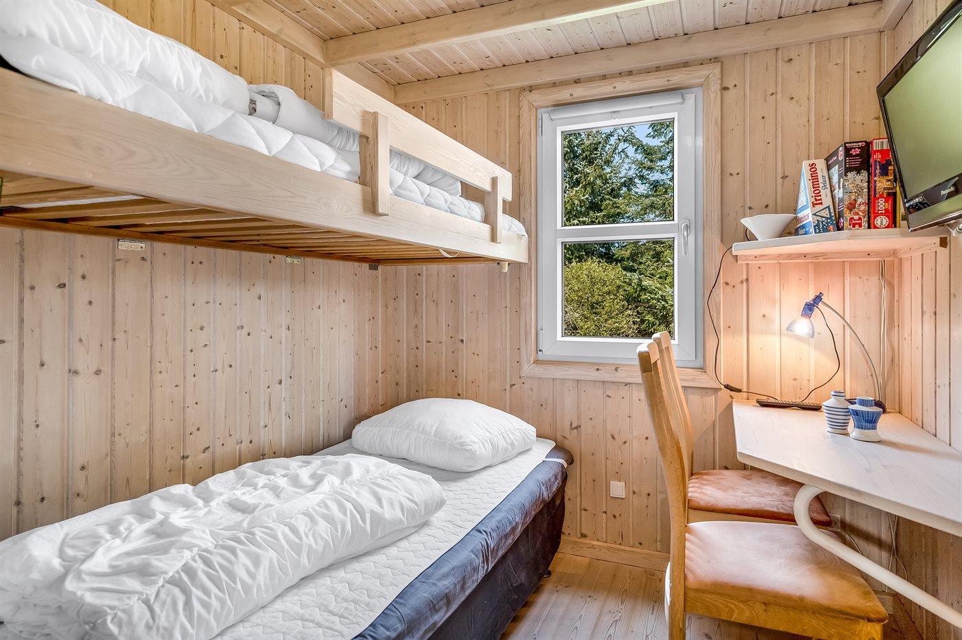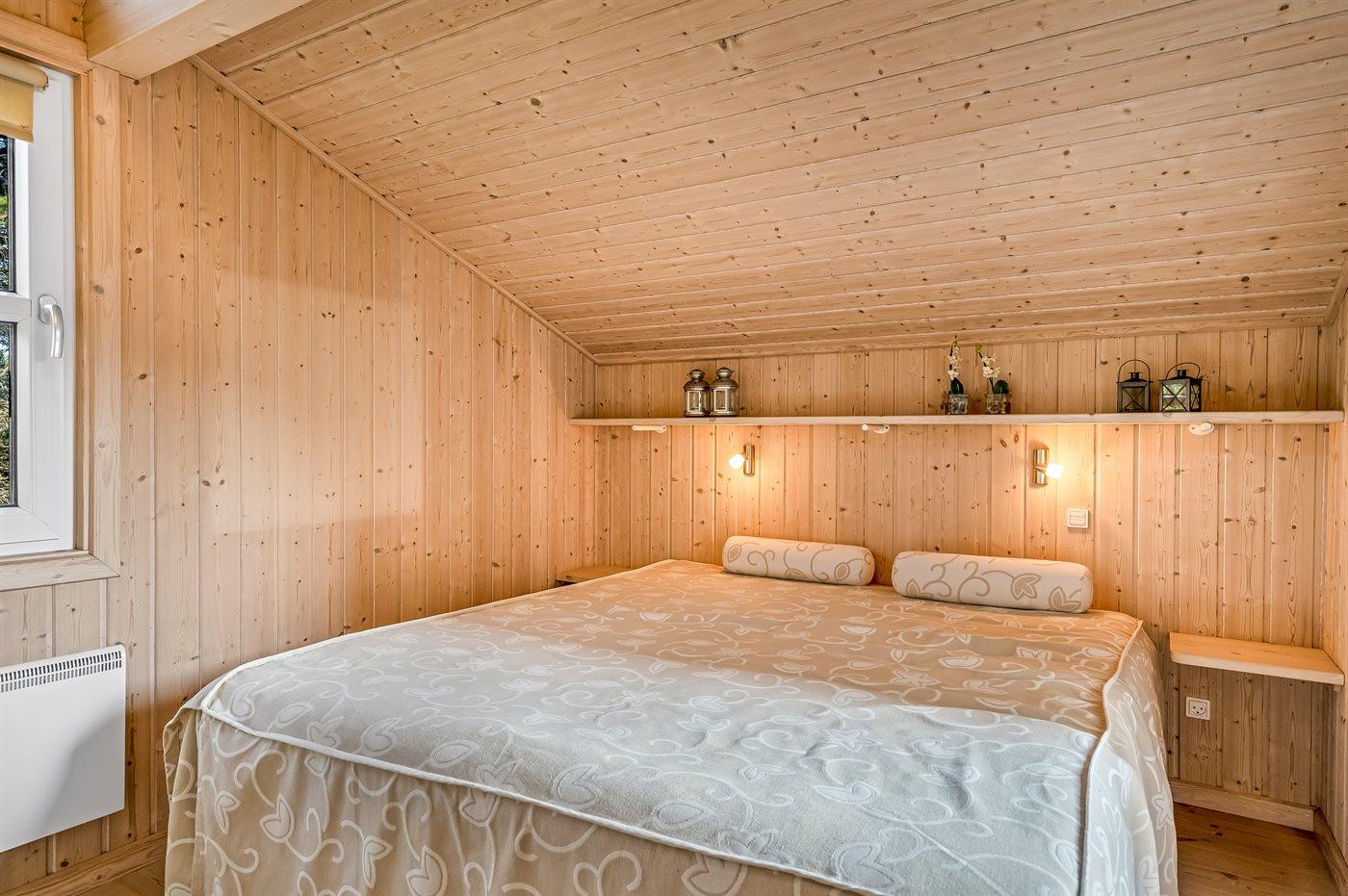 Der er i alt 3 soveværelser. Sovepladserne fordeler sig på: 4 sovepladser i dobbeltsenge. 2 sovepladser i køjeseng. Derudover er der 1 stk. barneseng.