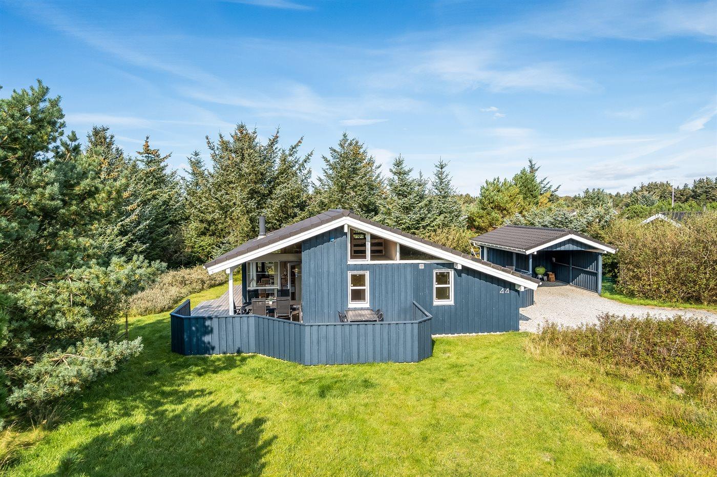 Ferieboligen er beliggende på en 1980 m² stor naturgrund. Der er 1000 m til havet. Nærmeste forretning er beliggende i en afstand af 1000 m. Til ferieboligen hører 40 m² terrasseareal. Desuden er der 10 m² overdækket terrasse. Der er redskabsrum. Gynge. Sandkasse. Der er carport til rådighed. Parkering ved ferieboligen.